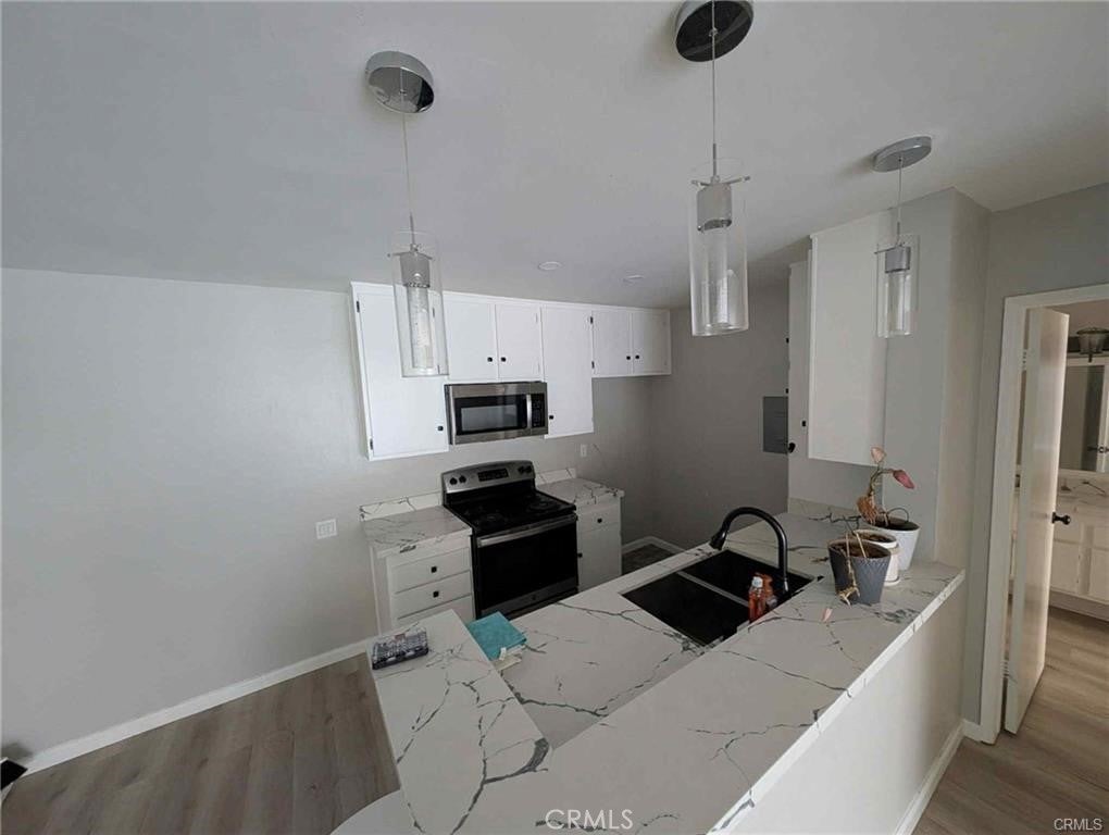 This beautifully updated top-floor residence sits in the desirable, resort-style Encino Oaks community in the heart of Encino. The bright, open layout features two spacious primary suites positioned on opposite sides of the unit, each with its own en-suite bath and generous closet space. The remodeled kitchen includes modern Quartz counters, stainless steel appliances, a deep sink, abundant cabinetry, a pantry, and contemporary fixtures. Enjoy your morning coffee on the private balcony overlooking the peaceful courtyard. The home features laminate and porcelain tile flooring throughout—no carpet anywhere. Its prime location near the elevator and an end parking space adds extra convenience, and the community laundry room is just steps away. Both bathrooms have been tastefully upgraded with new tub enclosures, stylish vanities, updated lighting, and modern fixtures. This gated community provides an impressive list of amenities, including a large pool and spa, vending machines, three tennis courts, a fitness center, sauna, recreation room, banquet space, and outdoor BBQ areas. HOA dues cover water, trash, insurance, and on-site security. Ideally situated near vibrant Ventura Blvd., you’ll have easy access to dining, shopping, and entertainment—all within walking distance. Commuters will appreciate the quick access to the 101 and 405 freeways. Come home and unwind in the welcoming Encino Oaks community.