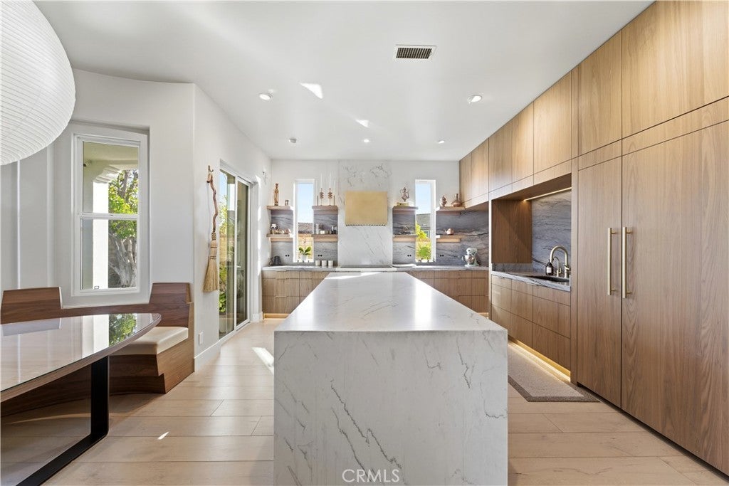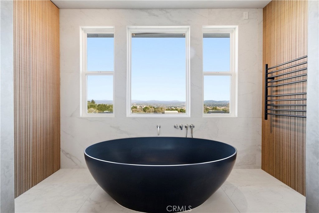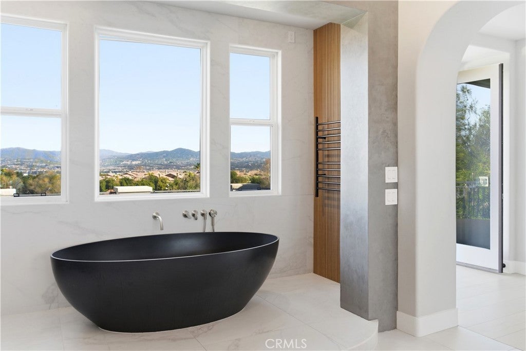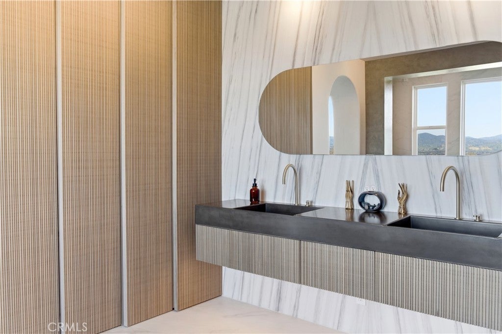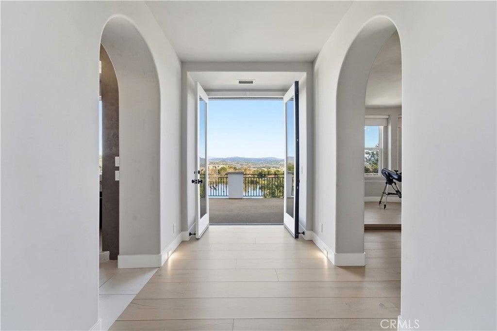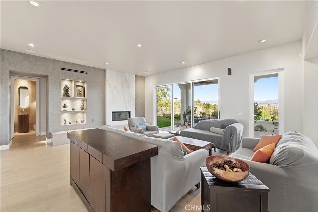 Welcome to one of the most luxurious residences in Valencia’s prestigious Westridge Estates—a rare, fully reimagined estate offering unparalleled privacy and sweeping 180-degree views of the golf course, lake, and surrounding mountains. This exceptional 5-bedroom, 5.5-bathroom home has undergone a meticulous head-to-toe renovation completed within the past two years, with no expense spared. Every bedroom features its own private en-suite bathroom. The home was architecturally redesigned by Jan Chiatas, a highly regarded architect known for refined, modern luxury and functional elegance. Expansive sliding glass windows throughout flood the interior with natural light and create seamless indoor-outdoor living. The renovation encompassed structural, mechanical, and aesthetic upgrades, delivering a truly turnkey residence. Interior finishes include quartzite kitchen countertops, marble fireplaces and master bathroom walls, a statement sandstone accent wall in the powder bathroom, handcrafted Roman clay interior wall finishes, and wide-plank hardwood flooring throughout. Designer lighting, custom millwork, and precision detailing reflect the level of craftsmanship expected in premier luxury homes. The chef’s kitchen is outfitted with Wolf and Sub-Zero appliances, bespoke high-end cabinetry, and a thoughtfully designed layout ideal for both entertaining and daily living. A finished garage with additional Sub-Zero refrigeration further underscores the home’s elevated functionality. Behind the walls, the renovation extended to new full-house copper plumbing, integrated smart home automation, and a Tesla Powerwall and solar energy system designed to support most of the home’s electrical demand—offering efficiency, reliability, and future-forward living. Gardener service is included. Situated within a secure guard-gated community, the property offers privacy and peace of mind while remaining within walking distance to top-rated 10/10 public schools (UPK–12). Ideal for professionals working from home, families establishing long-term roots, or those in the entertainment industry, the home is located just 25 minutes from major studios with direct access to the 5 Freeway. A truly rare luxury offering, this residence combines architectural pedigree, a substantial renovation, panoramic views of the lake, golf course, and mountains, and genuine privacy—making it one of the most compelling properties currently available in Valencia. CALL TODAY THIS WILL NOT LAST!
