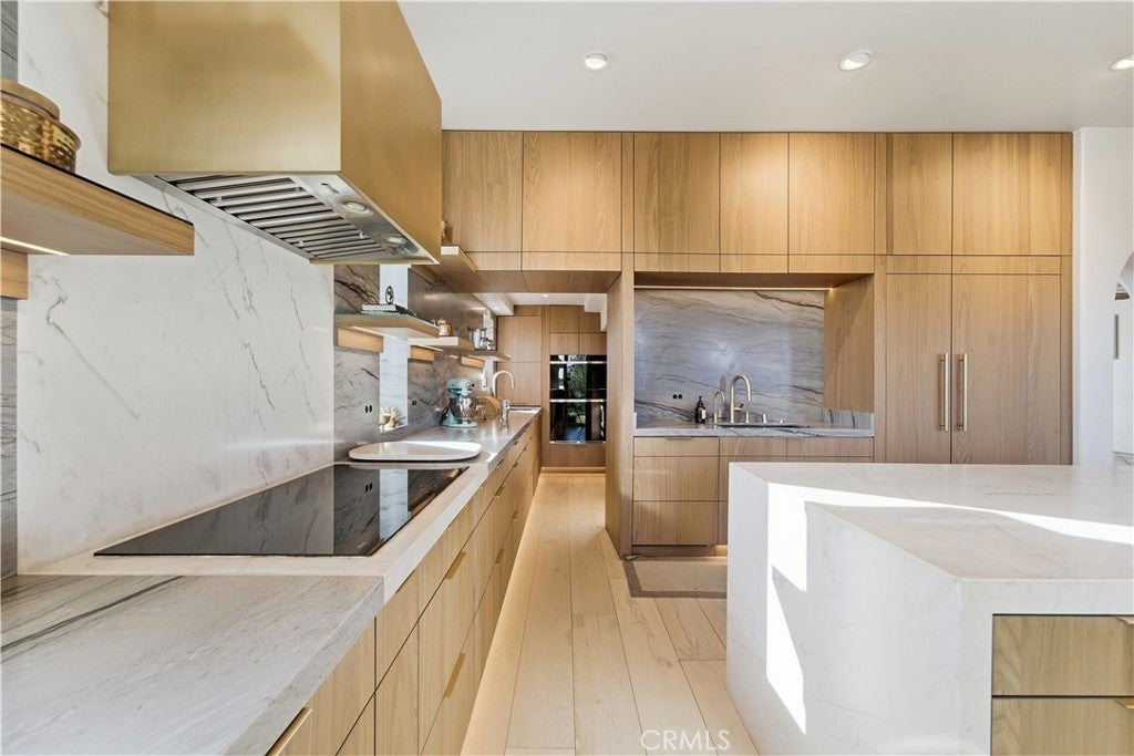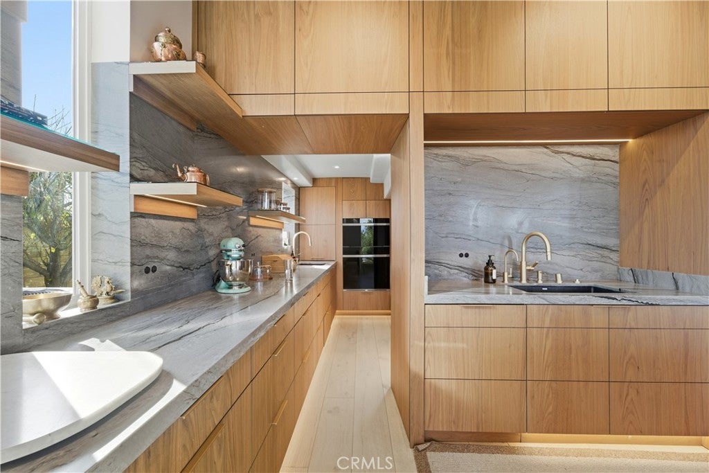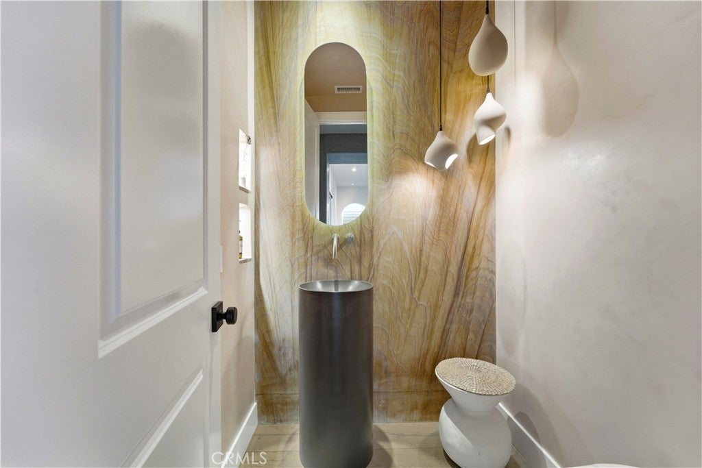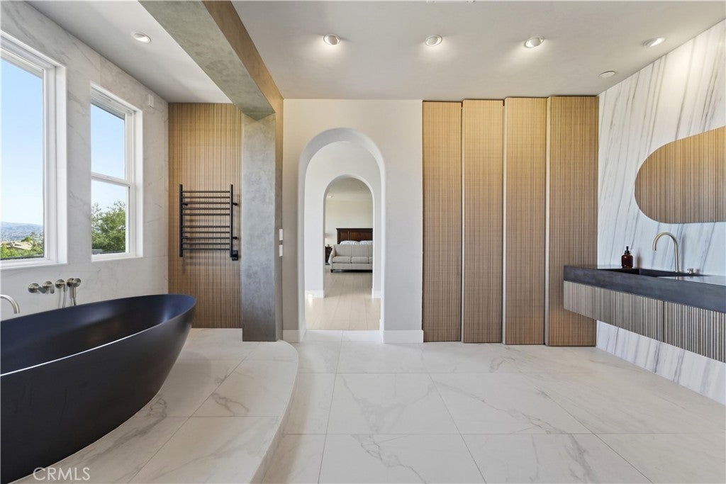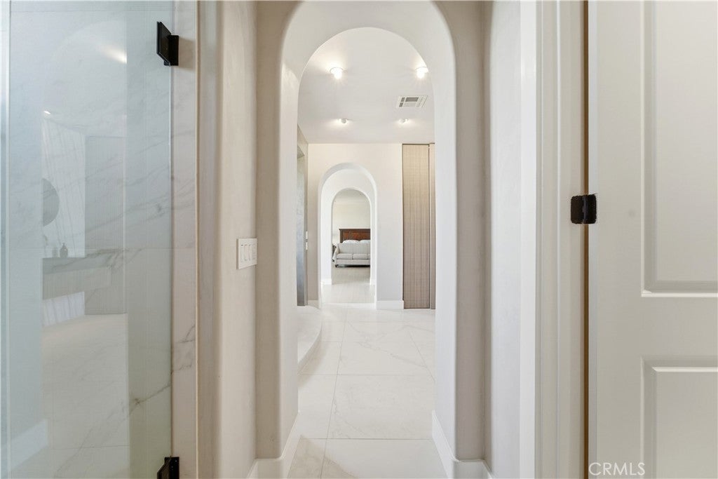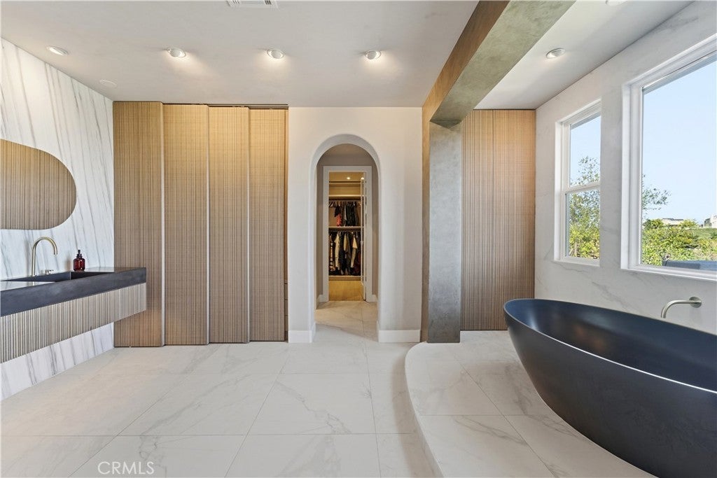 Welcome to one of the most luxurious residences in Valencia’s prestigious Westridge Estates—a rare, fully reimagined estate offering unparalleled privacy and sweeping 180-degree views of the golf course, lake, and surrounding mountains. This exceptional 5-bedroom, 5.5-bathroom home has undergone a meticulous head-to-toe renovation completed within the past two years, with no expense spared. Every bedroom features its own private en-suite bathroom. The home was architecturally redesigned by Jan Chiatas, a highly regarded architect known for refined, modern luxury and functional elegance. Expansive sliding glass windows throughout flood the interior with natural light and create seamless indoor-outdoor living. The renovation encompassed structural, mechanical, and aesthetic upgrades, delivering a truly turnkey residence. Interior finishes include quartzite kitchen countertops, marble fireplaces and master bathroom walls, a statement sandstone accent wall in the powder bathroom, handcrafted Roman clay interior wall finishes, and wide-plank hardwood flooring throughout. Designer lighting, custom millwork, and precision detailing reflect the level of craftsmanship expected in premier luxury homes. The chef’s kitchen is outfitted with Wolf and Sub-Zero appliances, bespoke high-end cabinetry, and a thoughtfully designed layout ideal for both entertaining and daily living. A finished garage with additional Sub-Zero refrigeration further underscores the home’s elevated functionality. Behind the walls, the renovation extended to new full-house copper plumbing, integrated smart home automation, and a Tesla Powerwall and solar energy system designed to support most of the home’s electrical demand—offering efficiency, reliability, and future-forward living. Gardener service is included. Situated within a secure guard-gated community, the property offers privacy and peace of mind while remaining within walking distance to top-rated 10/10 public schools (UPK–12). Ideal for professionals working from home, families establishing long-term roots, or those in the entertainment industry, the home is located just 25 minutes from major studios with direct access to the 5 Freeway. A truly rare luxury offering, this residence combines architectural pedigree, a substantial renovation, panoramic views of the lake, golf course, and mountains, and genuine privacy—making it one of the most compelling properties currently available in Valencia. CALL TODAY THIS WILL NOT LAST!