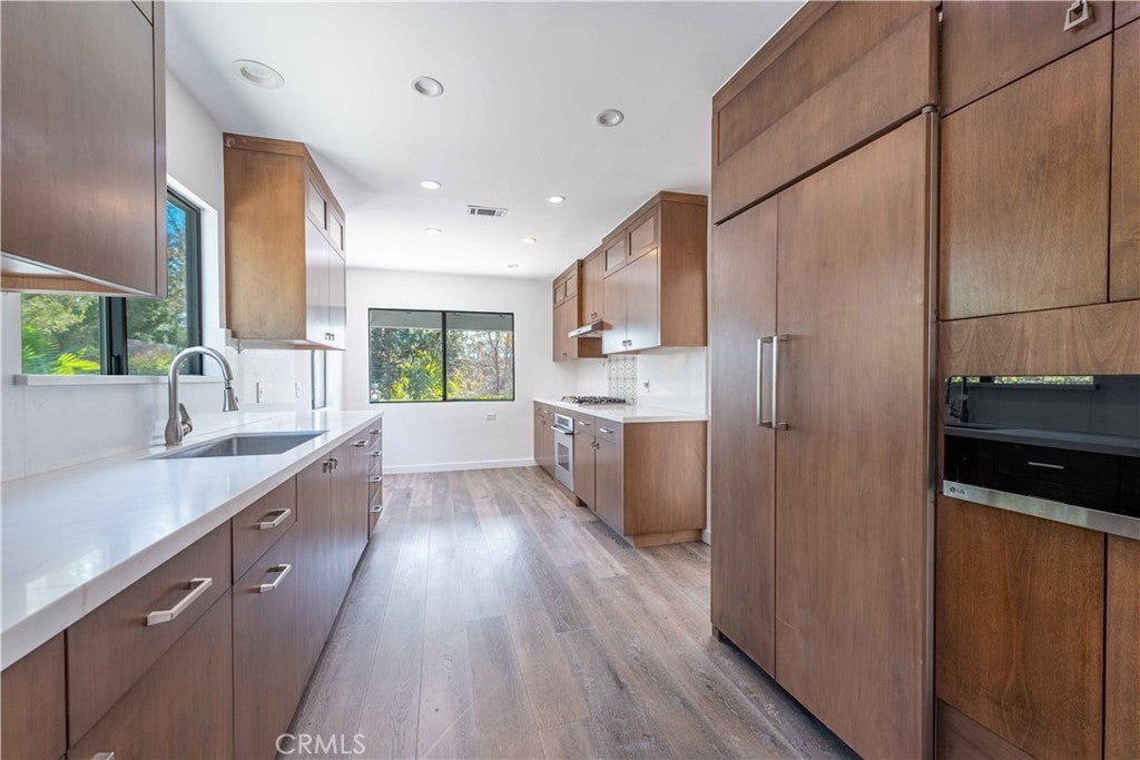 Beautifully Updated Home with Income Potential in Prime Walnut Acres! Welcome to this charming, newly updated 3-bedroom, 2-bath residence and an adjacent J-ADU (studio and 1-bath) nestled in the highly sought-after Walnut Acres neighborhood of Woodland Hills. Thoughtfully designed for both comfort and versatility, this home offers spacious living with modern upgrades throughout. The expansive primary suite is a true retreat, featuring a cozy fireplace, walk-in closet, and a spa-inspired en-suite bathroom with dual vanities, a soaking tub, and a separate shower. The open and inviting kitchen is a chef’s delight, outfitted with brand-new appliances including a refrigerator, oven, microwave, and dishwasher, and is complemented by a nearby laundry room complete with washer and dryer. Adding exceptional value, the adjacent living area has been converted into a permitted J-ADU (studio)—ideal for rental income, guests, or extended family. Additionally, the property comes with approved plans and permits to convert the two-car garage and the room behind it into a full ADU. The owner is willing to complete this conversion at their cost, offering significant savings and instant equity to the buyer. Located just minutes from premier shopping, dining, entertainment, parks, and top-rated schools, this home seamlessly blends lifestyle, flexibility, and future income potential. A rare opportunity in one of Woodland Hills’ most desirable communities.