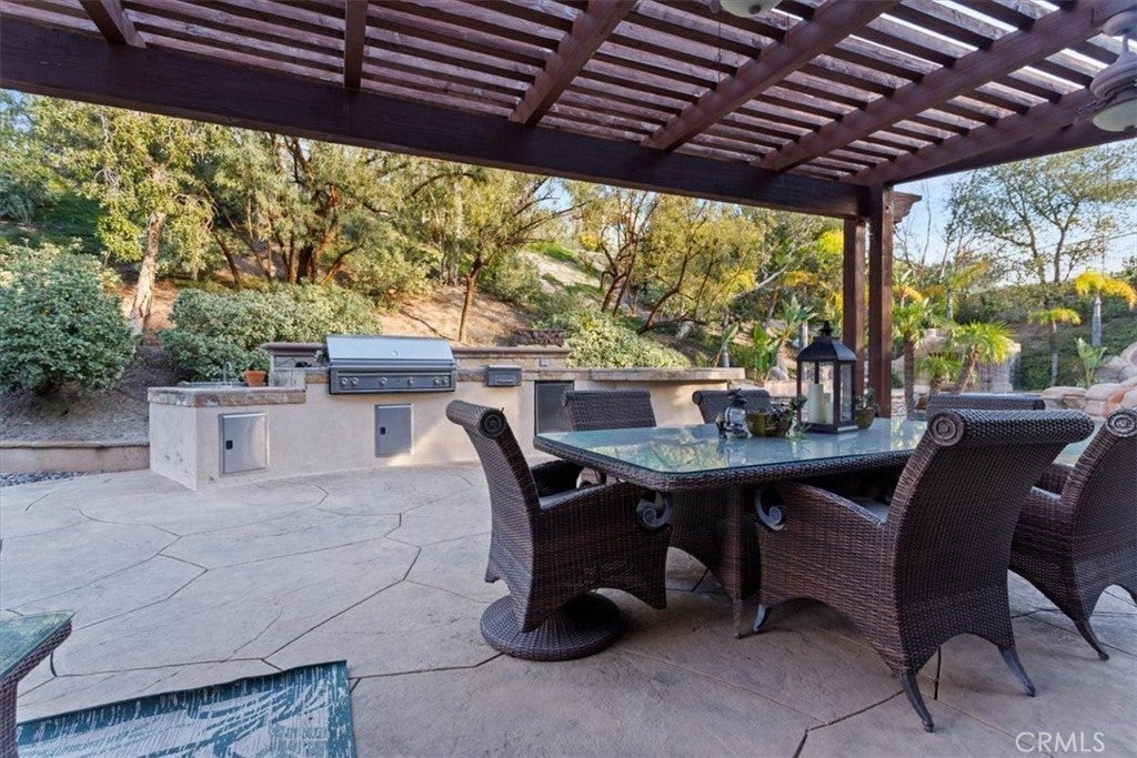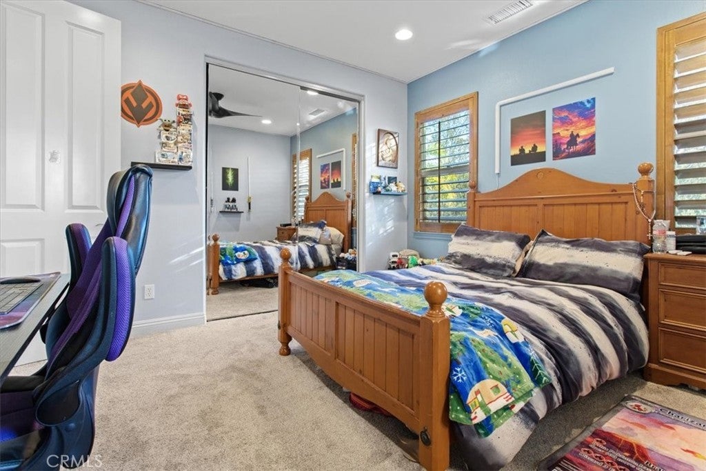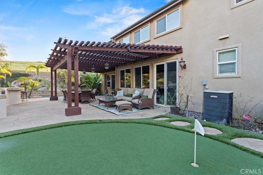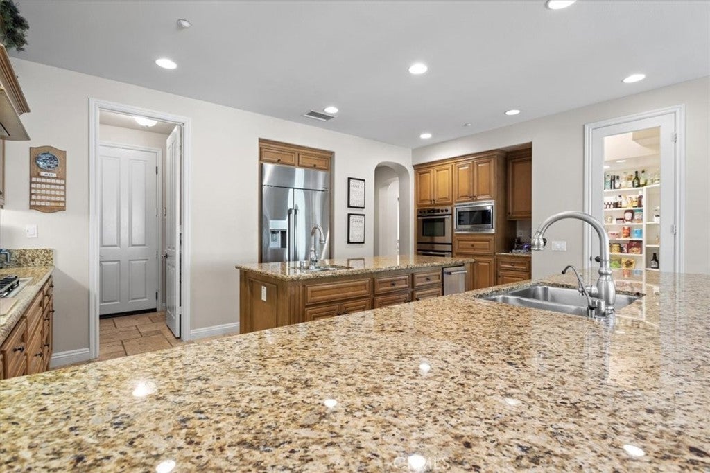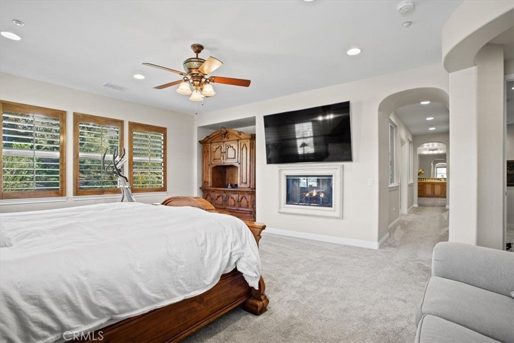 Welcome to Castlewood at Big Sky, one of the area’s most coveted communities—where wide-open spaces, dramatic mountain scenery, and serene natural beauty create a truly special place to call home. Backed by the stunning presence of Whiteface Mountain, this peaceful enclave offers the perfect blend of privacy, luxury, and Southern California indoor-outdoor living. Tucked away at the end of a quiet cul-de-sac and up a long private driveway, located next to open space, this exceptional property showcases breathtaking mountain and valley views, 5 spacious bedrooms, 4.5 baths, and an entertainer’s backyard that rivals a private resort. From the moment you arrive through the gated courtyard entry, you’ll appreciate the thoughtful layout—Inside, an expansive and light-filled floor plan unfolds. The formal living room, anchored by a cozy fireplace, opens to a charming courtyard with a tranquil fountain—setting the tone for relaxed elegance. A warm and inviting family room features its own fireplace, built-in entertainment center, and views of the sparkling pool beyond. Perfect for hosting, the elegant formal dining room flows seamlessly into the sun-drenched gourmet kitchen, complete with granite countertops, abundant cabinetry, a center island with sink, walk-in pantry, and a full suite of stainless steel appliances—truly a chef’s dream. The main level also includes a bedroom with a private bath, a laundry room, and a convenient powder room for guests. Up the grand staircase, the luxurious primary suite awaits—your personal retreat. This expansive haven includes a fireplace, sitting area, oversized walk-in closet with built-ins and pull down attic access with an abundance of storage area, and an additional ~250 sq ft bonus space ideal for an office, nursery, or fitness room. The spa-like primary bath completes the experience. Two additional ensuite bedrooms, a versatile loft, and a bonus room overlooking open space offer endless flexibility for today’s lifestyles. And then… the showstopper backyard. This is Southern California living at its finest: a resort-style pool and spa with rock waterfall grotto, swaying palm trees, BBQ island, lush lawn for play, and even a putting green—all beautifully set against a natural backdrop. Solar-with back-up batteries. There is also ample parking with a 2 car garage and a one-car garage with an attached room ideal for a hobby room or storage. Residents of Big Sky enjoy miles of walking and hiking trails.