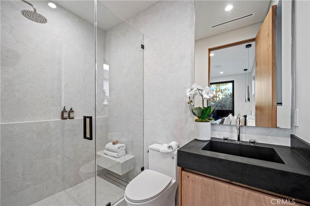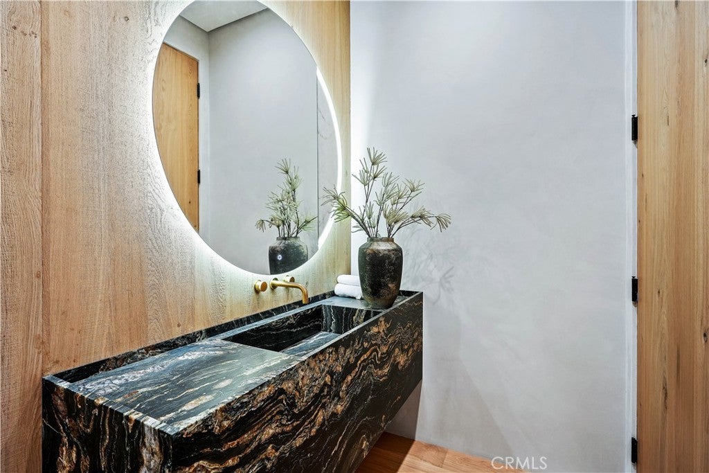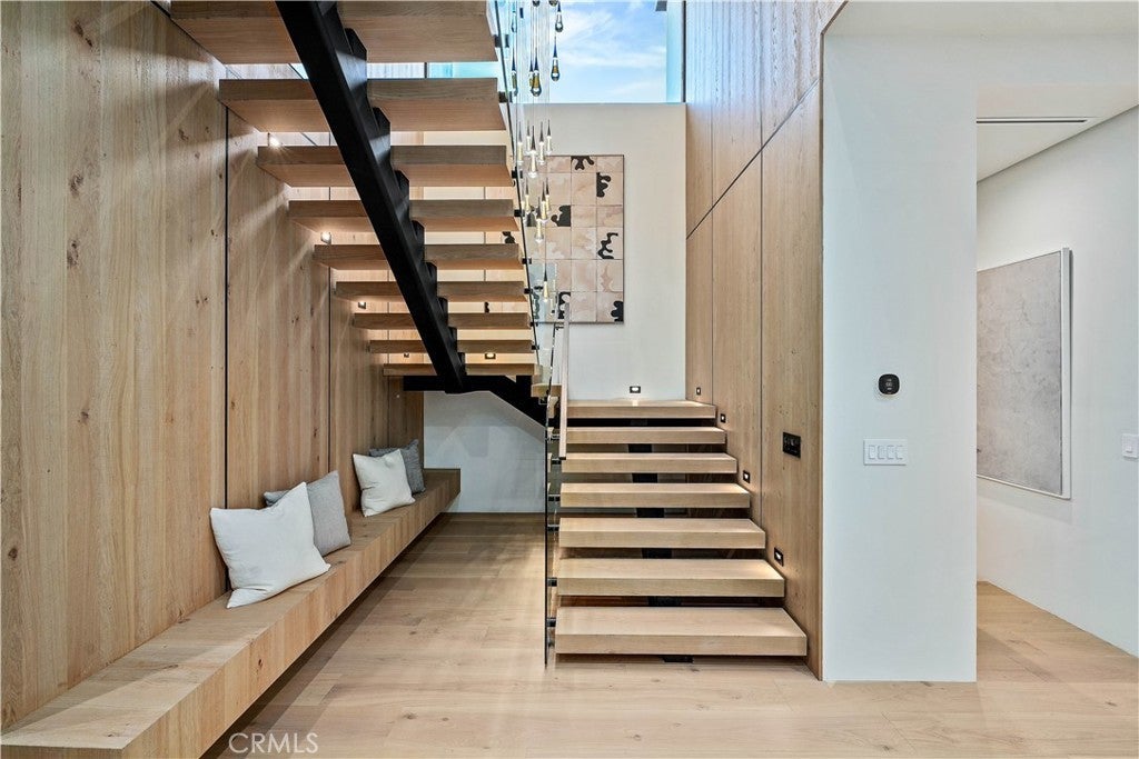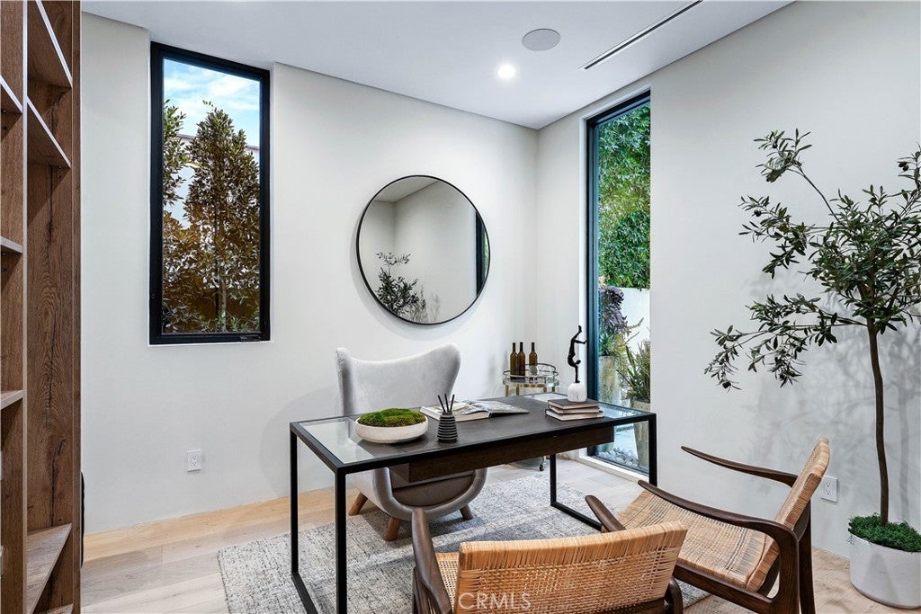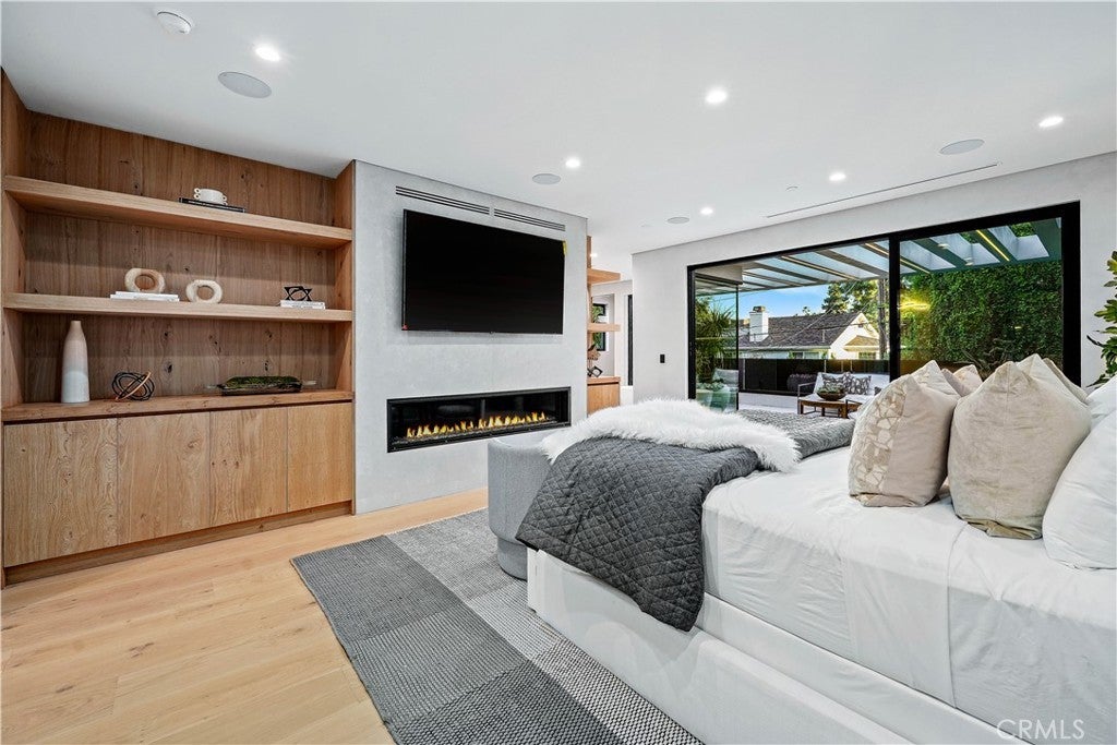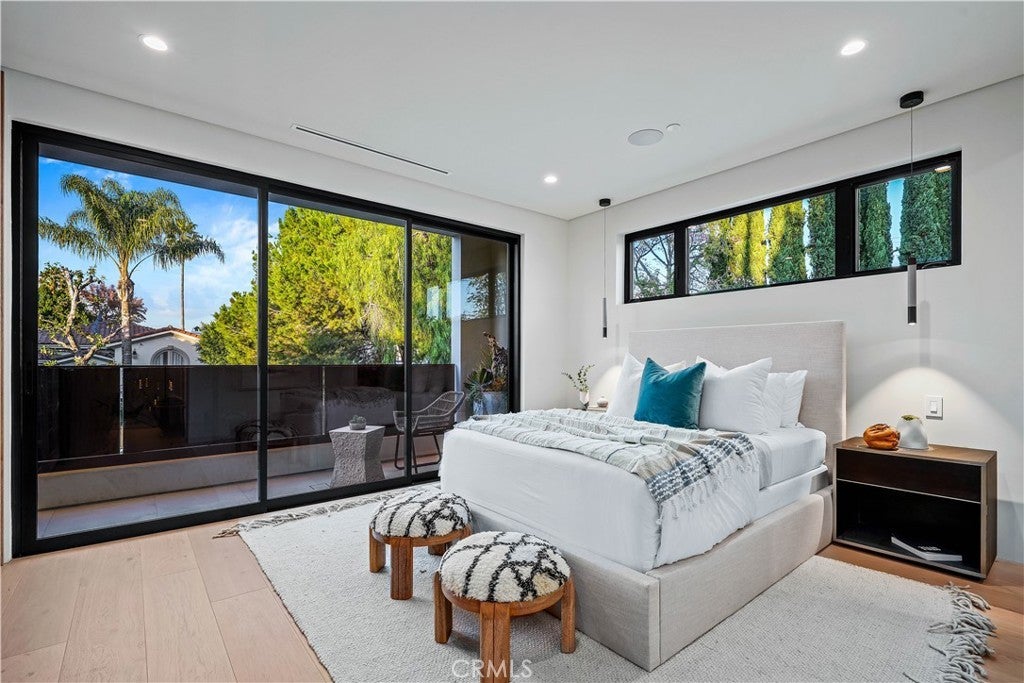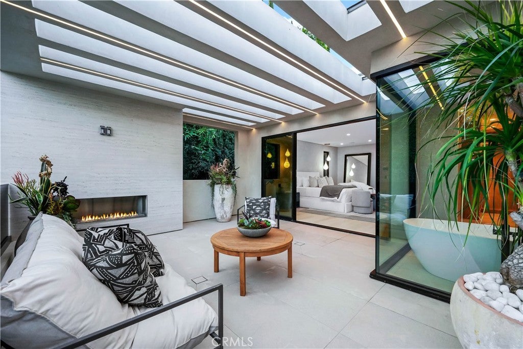 Tucked away on a quiet, tree-lined street in the heart of Sherman Oaks, this privately gated newer construction estate redefines the standard for modern luxury. The open-concept floor plan is highlighted by lofty ceilings and expansive walls of glass that flood the space with warm natural light. At the heart of the home lies a designer chef’s kitchen equipped with top-of-the-line Miele appliances, a massive waterfall island, butler’s pantry and separate walk-in pantry. The adjoining formal dining room boasts bespoke wine storage, while the spacious living room’s oversized sliding glass door seamlessly extends your living space outside and is outfitted with a custom-built screen to keep unwanted pests and debris out. Designed for the ultimate entertainer, the tranquil backyard retreat is enveloped by lush hedges for unparalleled privacy. Whether you’re hosting at the outdoor BBQ kitchen, complete with a pizza oven and smoker, or unwinding in the sparkling pool/spa, the space feels like a boutique resort. The journey continues inside, where the main level is rounded out by an ensuite bedroom, chic powder room and two-car garage with direct access. Ascend the dramatic floating staircase, where you’ll find three generously sized ensuite bedrooms and a dedicated laundry room. The primary retreat features a spacious private patio, large walk-in closet and sumptuous bathroom, outfitted with a deep soaking tub, oversized rainfall shower and double vanity. Additional amenities include a smart home system with built-in speakers, state-of-the art security system and custom Lutron motorized shades throughout. Ideally located within the top-rated Kester Avenue Elementary school district and just minutes from Ventura Boulevard’s premier shops and restaurants.