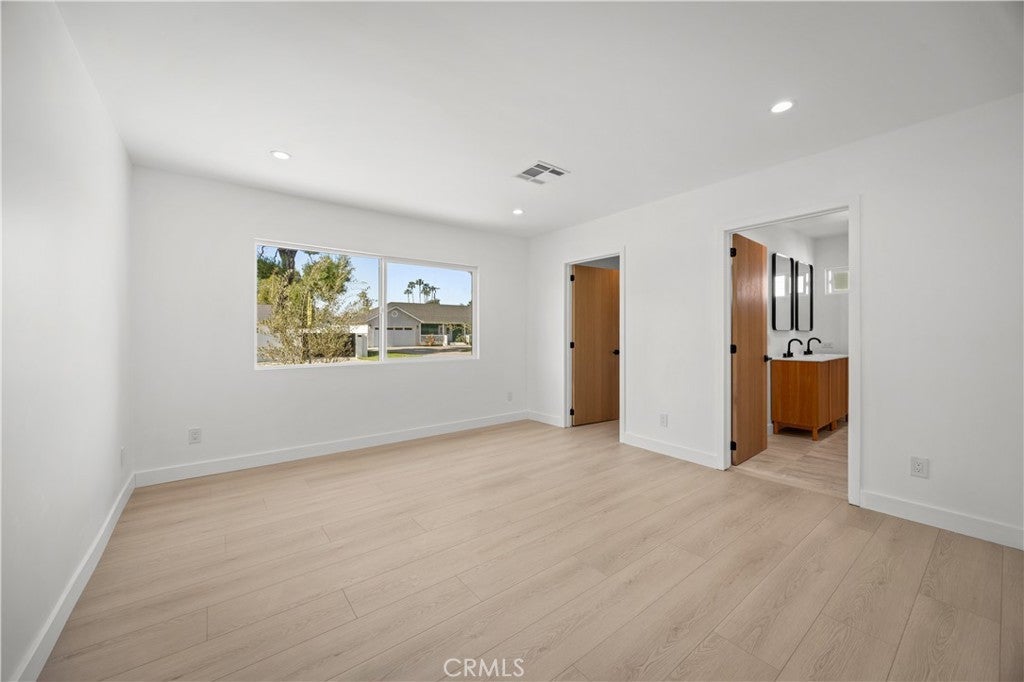Contemporary redesigned Lake Balboa Home! Approximately 1,450 SF of beautifully curated living space featuring 3 bedrooms and 2 elegant bathrooms. An open, light-filled floor plan seamlessly connects the living, dining, and kitchen areas—ideal for hosting family gatherings and entertaining with ease. The expansive primary suite offers a walk-in closet and double vanity, creating a serene private retreat. Thoughtfully refreshed with sleek modern cabinetry, quartz countertops and laminate flooring. Fully equipped with premium new appliances, including refrigerator, washer, and dryer. Enhanced curb appeal with contemporary landscaping and mature olive trees. A rare turnkey lease offering understated luxury and modern comfort in Lake Balboa. Available move in March 15th