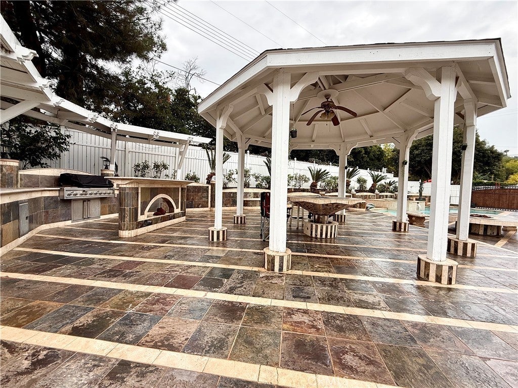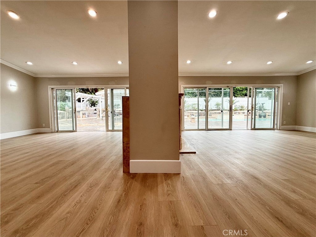 Welcome to paradise! On an oversized corner lot in one of the best parts of Woodland Hills sits this incredible home, full of both beauty and utility. The main house has four bedrooms, a massive chef's kitchen, brand new floors throughout, along with high ceilings and tons of natural light. Three separate entrances lead to the backyard oasis, where you'll find the impressive barbecue, two fire pits, the relaxing hot tub and enormous pool. The attached guest house contains two more bedrooms and a full bath, kitchen, as well as its own laundry hookups and entrance! This versatile flex space can be your perfect in-law suite, a dynamic creative studio, or the ideal home office. As if the house itself weren't enough, it's located in the famed El Camino school district and is just minutes from the Calabasas Commons and Topanga Mall. Come see this apex property before it's gone!