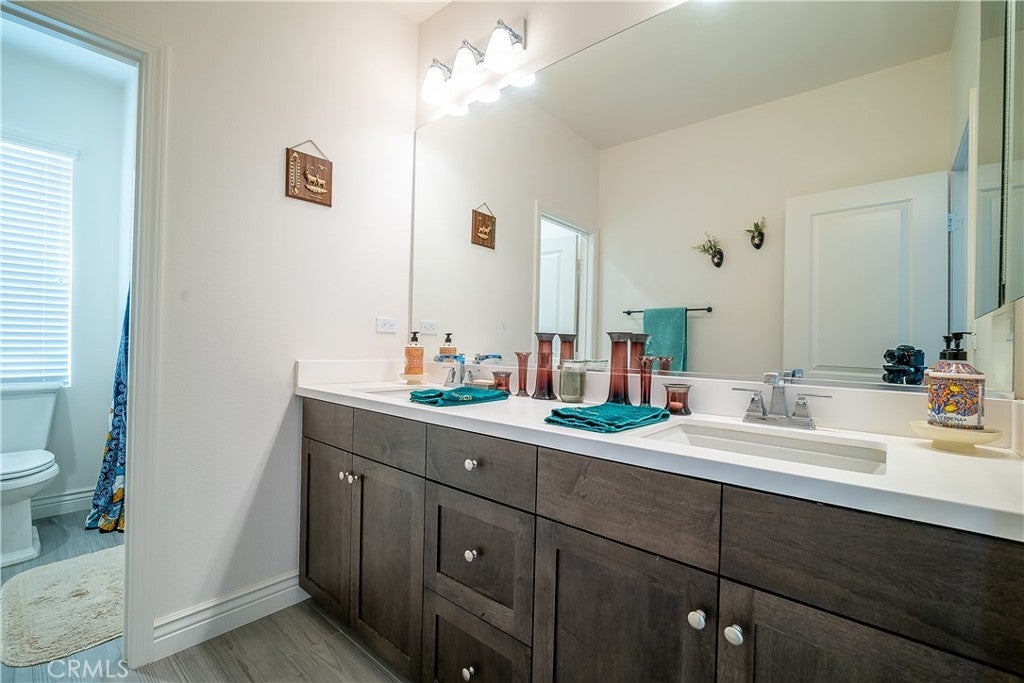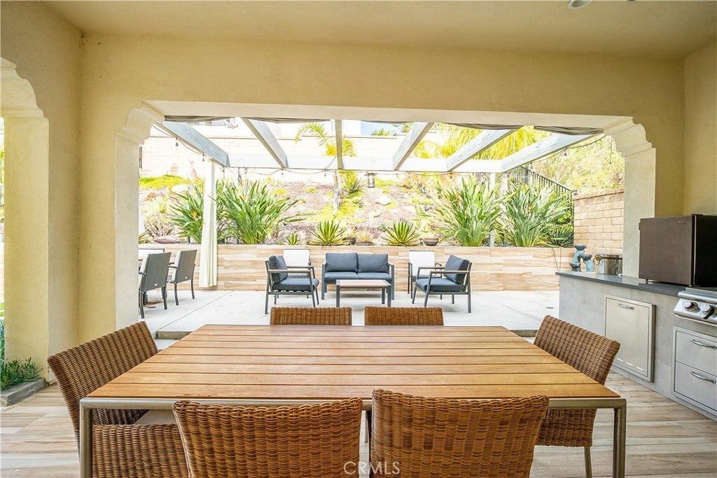 Discover this stunning contemporary home in the prestigious gated community of The Heights at Five Knolls, located in the heart of Santa Clarita. This beautifully designed two-story residence offers 4 bedrooms plus an office/bonus room (currently used as an office and easily convertible into a fifth bedroom), 3.5 bathrooms, and a spacious 3-car garage. Interior highlights include elegant tile and laminate flooring, a custom staircase, recessed lighting, and an open, light-filled floor plan. The luxurious primary suite features dual sinks, a walk-in closet, and a spa-inspired bathroom for ultimate comfort. Enjoy seamless indoor-outdoor living in your private, landscaped backyard oasis, complete with a high-end outdoor kitchen, stainless steel appliances, ambient lighting, and ceiling fans—perfect for entertaining or relaxing year-round. Residents enjoy access to resort-style amenities, including a clubhouse, sparkling pool, and spa, as well as nearby Golden Valley Park featuring a children’s playground and dog park. This exceptional home offers modern design, comfort, and lifestyle in one of Santa Clarita’s most desirable neighborhoods. A true must-see!