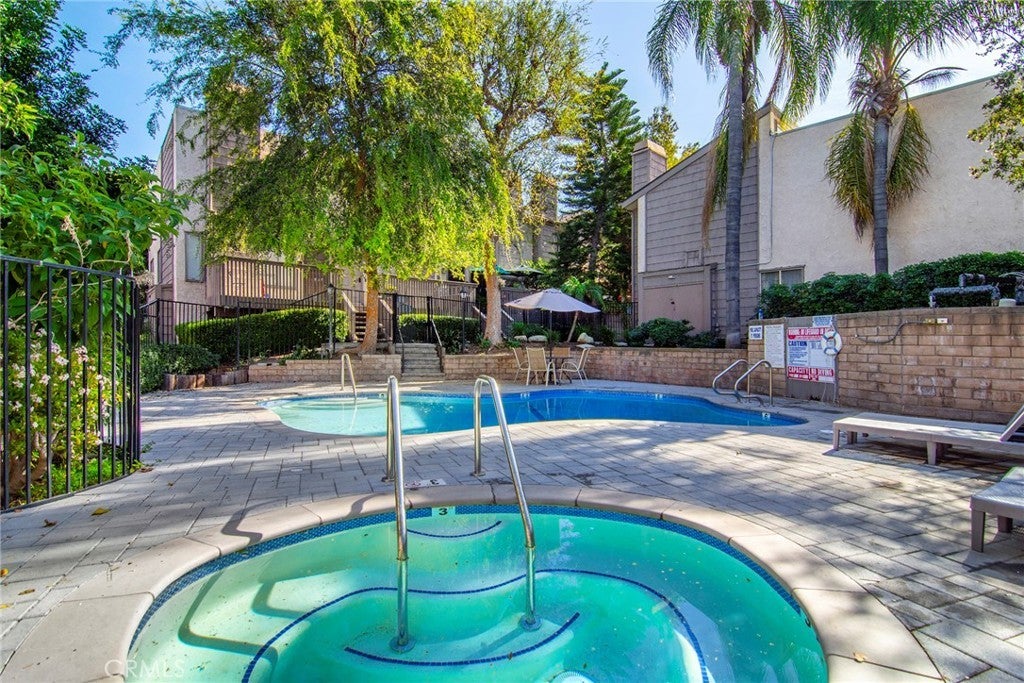 Welcome to this beautifully updated 2-bedroom, 2-bathroom condominium nestled in a quiet, well-landscaped Tarzana community. Tucked away at the back of the complex, this home offers a peaceful setting with treetop views overlooking the common grounds. The light-filled living room features soaring high ceilings and laminate flooring that extends throughout the unit, creating an open and cohesive feel. A large sliding glass door leads to an expansive balcony—perfect for relaxing or entertaining. The updated kitchen boasts sleek quartz countertops and stainless steel appliances, blending style and functionality. Both bedrooms are generously sized, including a spacious en-suite primary bedroom. The second bedroom enjoys easy access to the hallway bathroom, which conveniently doubles as a guest powder room. Additional highlights include IN-UNIT LAUNDRY and ample storage. The community offers resort-style amenities, including a sparkling pool and spa, and is ideally located with convenient access to the 101 freeway, shopping, dining, and everything Tarzana has to offer. A wonderful opportunity to enjoy comfort, convenience, and a serene setting all in one place.