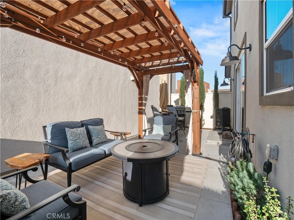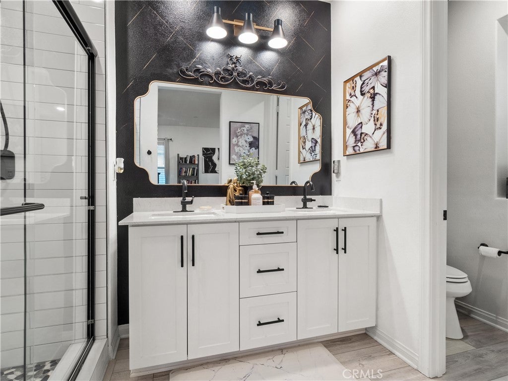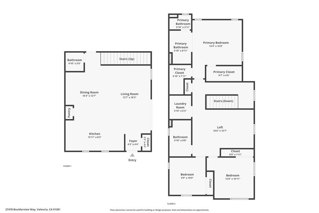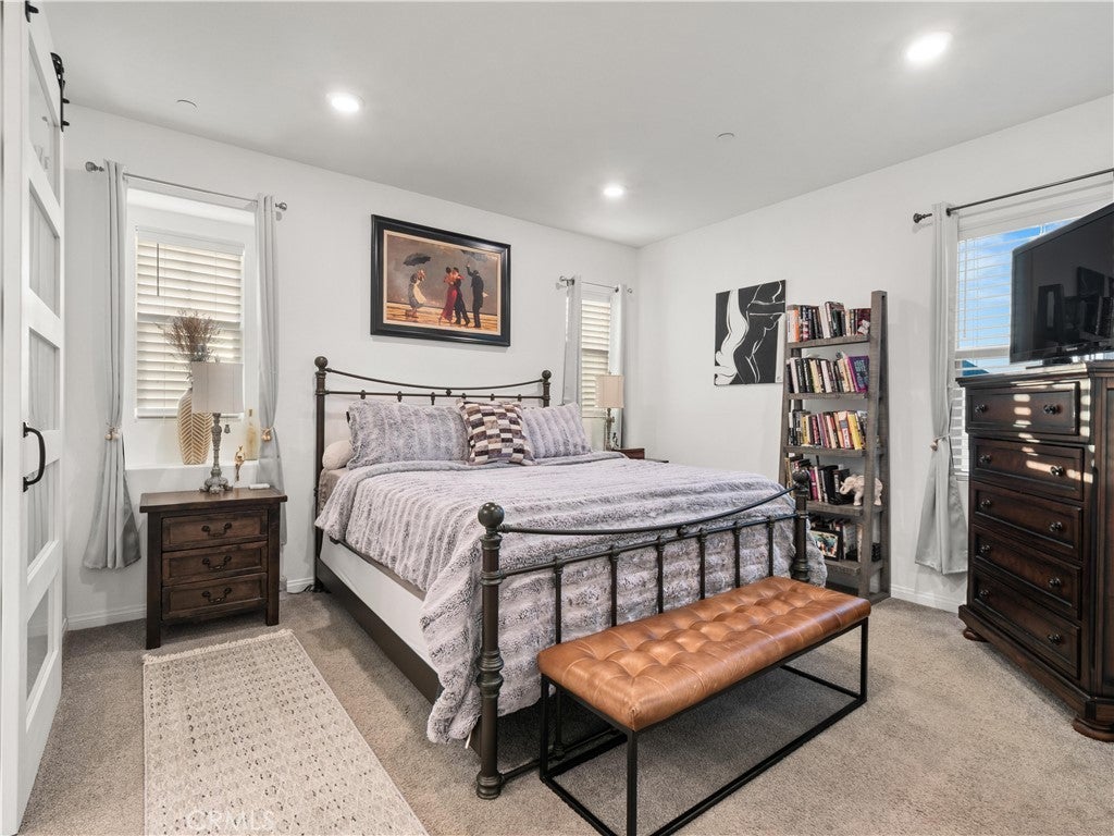 Welcome to this desirable north-facing home in the sought-after Valencia FivePoint community, featuring owned solar and a thoughtfully designed open-concept layout. The main level offers a stunning open-rail staircase leading to a spacious, light-filled loft, creating an airy and inviting space. The gourmet center-island kitchen is beautifully designed with quartz countertops, stainless steel appliances, soft-close cabinetry, upgraded hardware, a generous size pantry, and ample storage. A stylish designer powder room adds convenience for guests. Upstairs, the private primary suite features dual walk-in closets and a trendy barn door opening to the spa inspired ensuite with dual-sink vanity and a stunning glass-enclosed walk-in shower. Secondary bedrooms include mirrored wardrobe doors, and the oversized laundry room is highlighted with a tile backsplash. Additional highlights include a two-car attached garage with overhead storage and a prime location just minutes from the 5 Freeway, Highway 126, Six Flags Magic Mountain, and all that Valencia has to offer. FivePoint residents enjoy access to weekly farmers markets, resort-style pools with cabanas, gas barbecues, children’s play areas, multiple parks, community gardens, scenic walking and golf cart trails, and breathtaking mountain views. Don’t miss this exceptional opportunity to call this beautiful home your own!