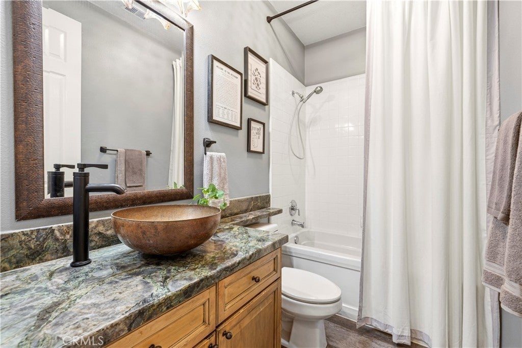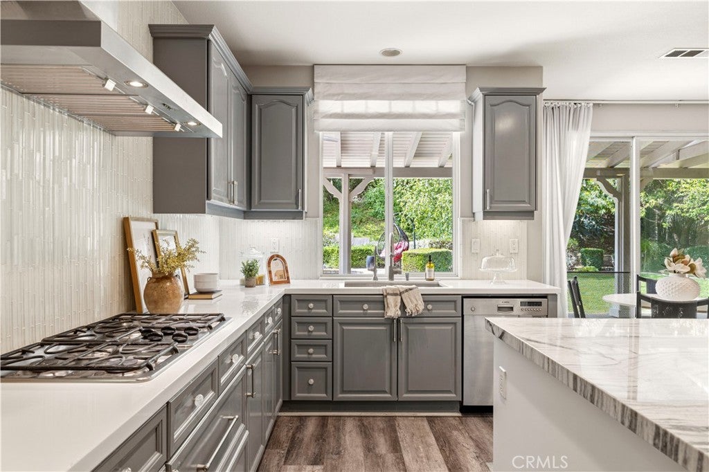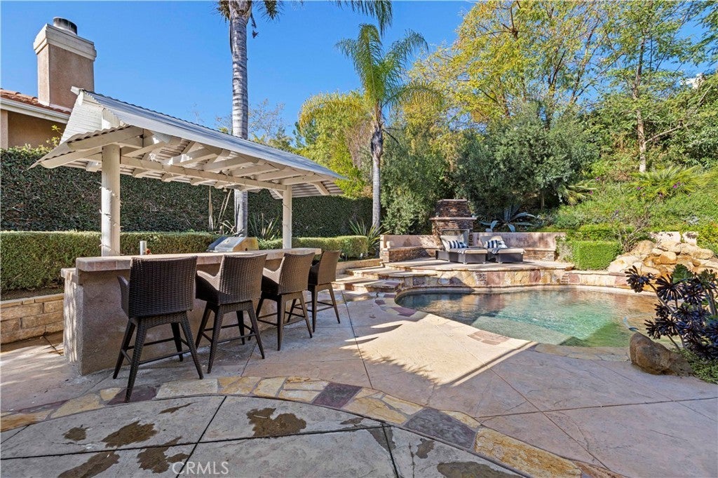 Welcome to an exquisite Southern Oaks retreat, where luxury meets family-friendly living in one of Santa Clarita’s most coveted neighborhoods! This magnificent 5-bedroom, 4-bathroom residence, spanning 3,835 square feet, offers an unparalleled living experience, perfectly complemented by the nearby award-winning schools! Step inside to the abundance of natural light, soaring ceilings and newer wood-like flooring. The open floor plan offers flexibility in design and placement, including a convenient downstairs bedroom and bath, ideal for multi-generational living, office, or guest room. Entertaining is a breeze with a separate dining room, dry bar, and spacious living room featuring a cozy fireplace with built-ins and is open to the well-appointed kitchen. The kitchen is a true chef's dream featuring expansive granite countertops, a central island perfect for entertaining, a walk-in pantry, and premium double ovens. This space seamlessly flows into inviting living areas, making it the heart of your home for everyday moments and grand celebrations alike. Upstairs, discover a versatile loft space, 3 additional bedrooms with 2 bathrooms, plus the spacious primary suite. The primary suite is a true escape, featuring a sunny balcony with backyard views, offering the perfect spot for morning coffee or evening relaxation. The spa-inspired, remodeled primary bath features dual vanities, a soaking tub, a walk-in shower, and two walk-in closets, providing a luxurious escape after a long day. Outside, the backyard is a private oasis designed for ultimate enjoyment. Immerse yourself in the sparkling pool, complete with a waterfall, enjoy the views from the newer covered patio, or host unforgettable gatherings at the built-in BBQ and bar area. The meticulously landscaped grounds provide a resort-like setting, ensuring privacy and endless outdoor fun! Attached 3-car garage plus convenient upstairs laundry room. Close to top-tier public schools, diverse shopping, restaurants, all with the peaceful embrace of nature. Enjoy seamless freeway access while still being moments away from hiking trails, parks, and more! This gorgeous move-in ready home is ready for you!