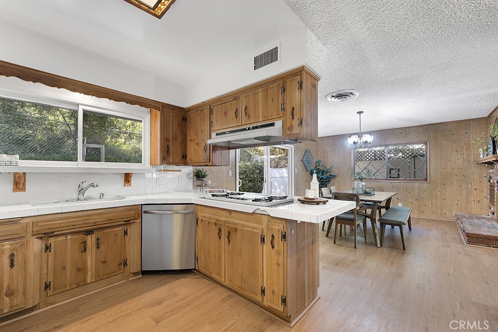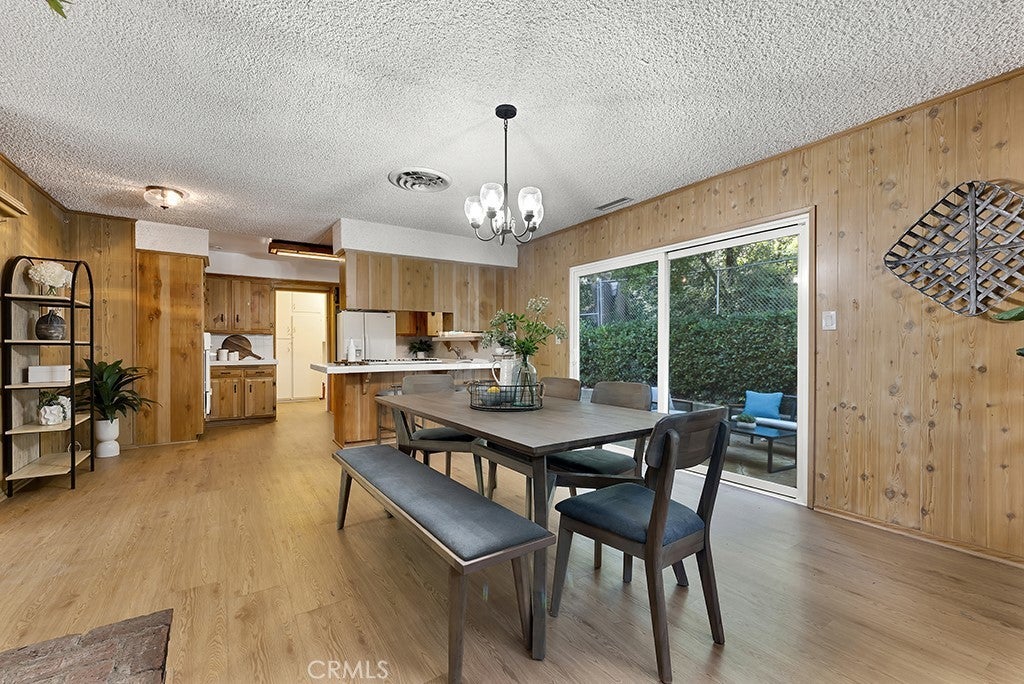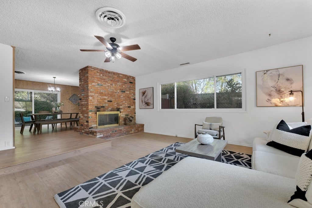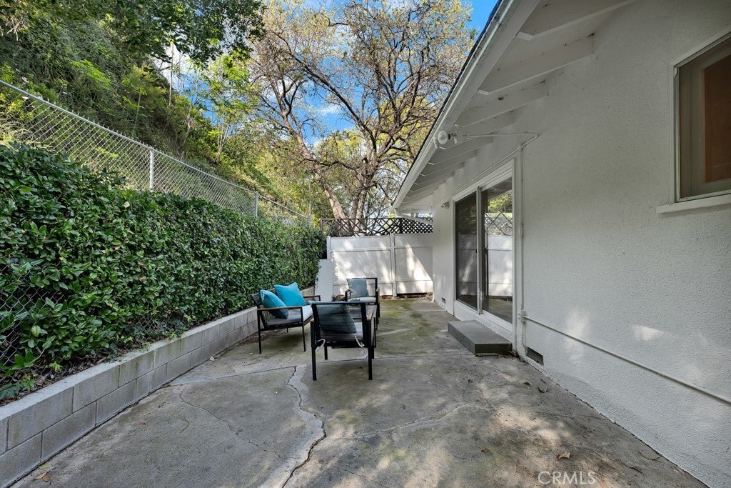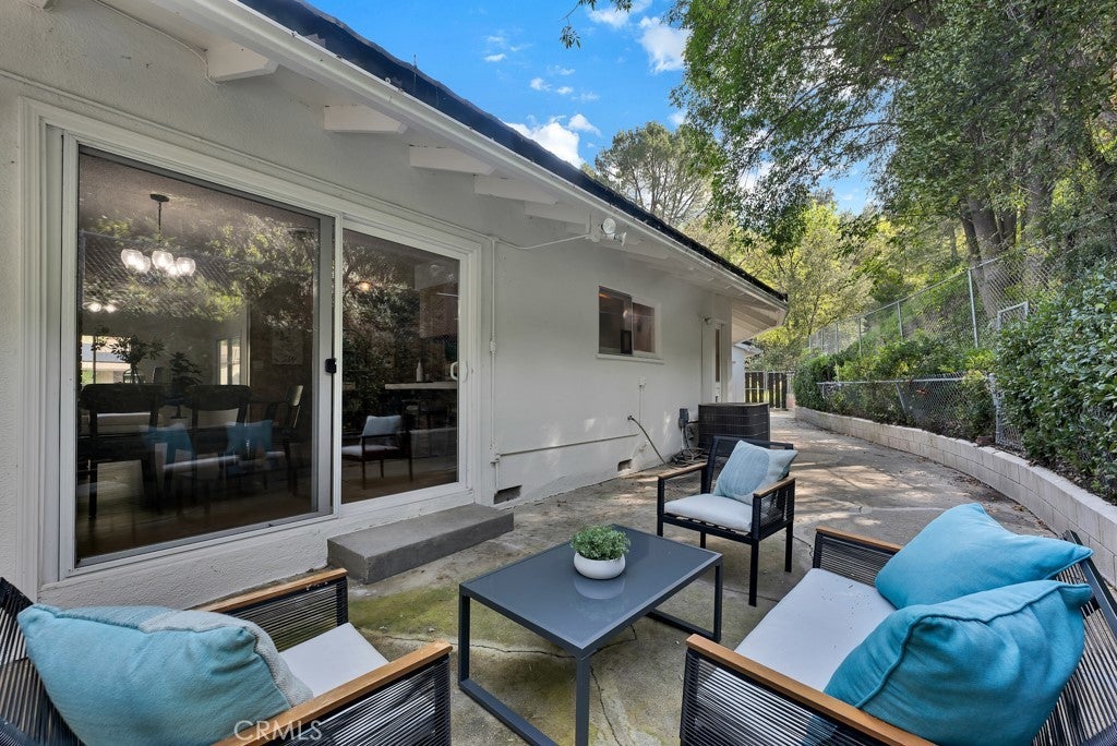 Located south of the Boulevard at the end of a quiet cul-de-sac in desirable Woodland Hills and within the boundaries of highly-rated and award-winning schools including Calabash Charter Academy, Hale Charter Academy, and El Camino Real Charter High School, this single-story California ranch home offers 3 bedrooms, 2 bathrooms, and 1,678 square feet of living space on an expansive nearly 17,500 sq ft lot. A charming double-door entry introduces a thoughtfully designed floorplan filled with mid-century character, luxury vinyl flooring throughout, abundant natural light, and delightful built-ins that enhance both charm and functionality. The step-down living room showcases a dramatic floor-to-ceiling two-way brick fireplace with raised hearths on both sides, creating a striking focal point shared with the adjoining dining room. The dining area opens to the backyard patio through a sliding glass door and flows seamlessly to the kitchen, complete with a breakfast bar, built-in gas range, and wall oven. Just off the kitchen, a dedicated laundry room provides additional storage, direct exterior access with a doggie door, and a ¾ bath with convenient secondary access from the front hallway. All three bedrooms are generously sized and feature walk-in closets, while the full hall bathroom offers a dual-sink vanity. A 2-car garage adds ample parking and storage. The sizable lot extends up a hillside, presenting an exciting opportunity to design a terraced garden retreat with potential view decks and layered outdoor living spaces, while the existing flat, usable yard is finished in expansive concrete patio—ideal for entertaining, relaxing, or future customization. Enjoy close proximity to shopping and dining at Westfield Topanga and The Village at Westfield Topanga, the vibrant restaurants and boutiques along Ventura Boulevard, nearby parks and hiking trails, convenient access to the 101 freeway, and easy drives to Malibu via scenic Topanga Canyon Boulevard.