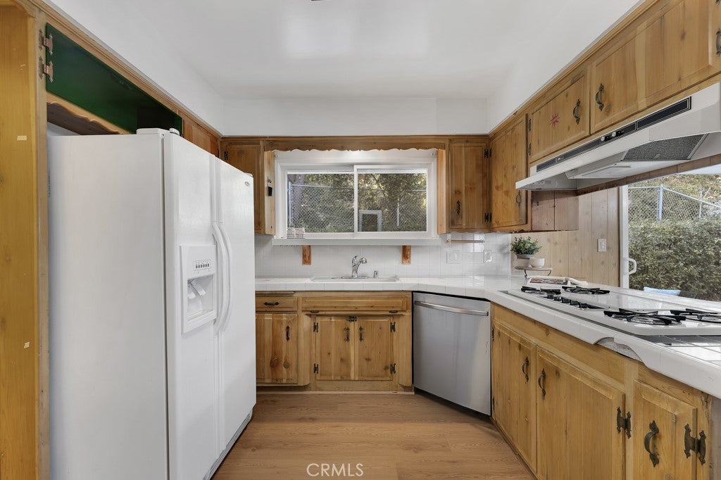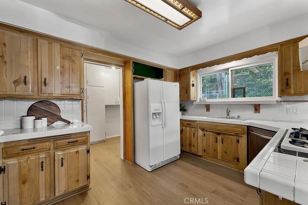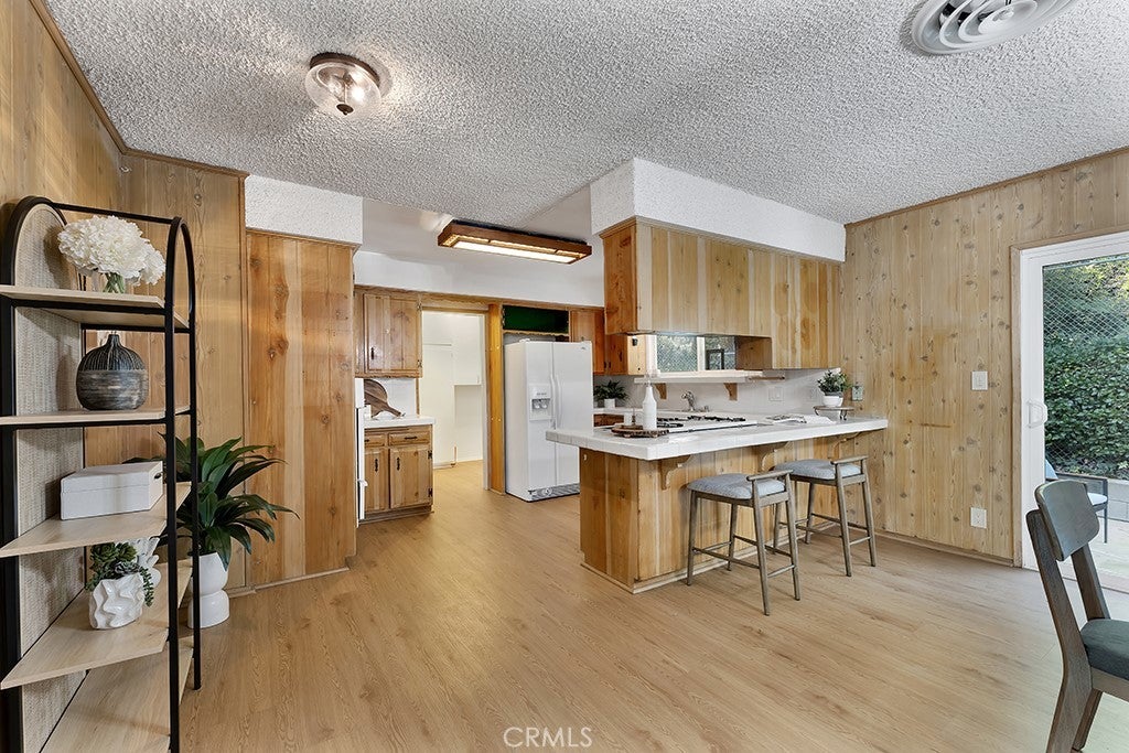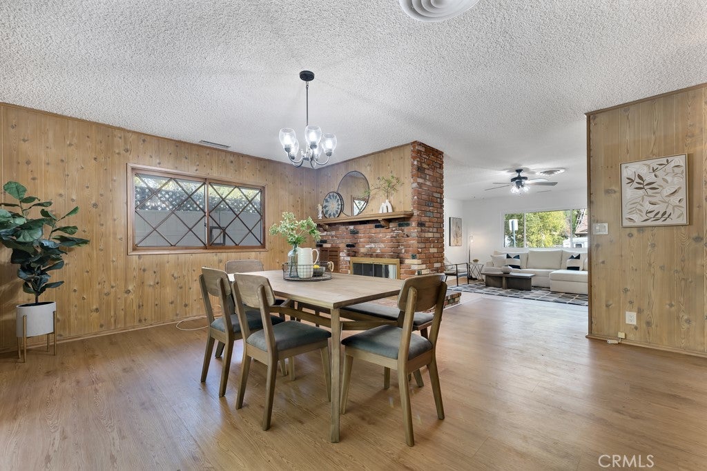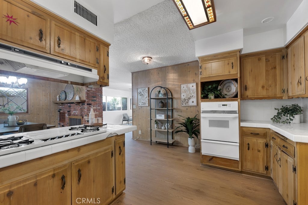 Located south of the Boulevard at the end of a quiet cul-de-sac in desirable Woodland Hills and within the boundaries of highly-rated and award-winning schools including Calabash Charter Academy, Hale Charter Academy, and El Camino Real Charter High School, this single-story California ranch home offers 3 bedrooms, 2 bathrooms, and 1,678 square feet of living space on an expansive nearly 17,500 sq ft lot. A charming double-door entry introduces a thoughtfully designed floorplan filled with mid-century character, luxury vinyl flooring throughout, abundant natural light, and delightful built-ins that enhance both charm and functionality. The step-down living room showcases a dramatic floor-to-ceiling two-way brick fireplace with raised hearths on both sides, creating a striking focal point shared with the adjoining dining room. The dining area opens to the backyard patio through a sliding glass door and flows seamlessly to the kitchen, complete with a breakfast bar, built-in gas range, and wall oven. Just off the kitchen, a dedicated laundry room provides additional storage, direct exterior access with a doggie door, and a ¾ bath with convenient secondary access from the front hallway. All three bedrooms are generously sized and feature walk-in closets, while the full hall bathroom offers a dual-sink vanity. A 2-car garage adds ample parking and storage. The sizable lot extends up a hillside, presenting an exciting opportunity to design a terraced garden retreat with potential view decks and layered outdoor living spaces, while the existing flat, usable yard is finished in expansive concrete patio—ideal for entertaining, relaxing, or future customization. Enjoy close proximity to shopping and dining at Westfield Topanga and The Village at Westfield Topanga, the vibrant restaurants and boutiques along Ventura Boulevard, nearby parks and hiking trails, convenient access to the 101 freeway, and easy drives to Malibu via scenic Topanga Canyon Boulevard.