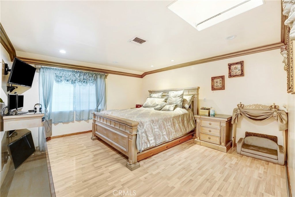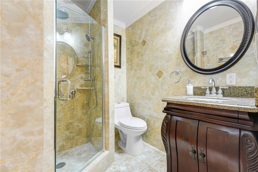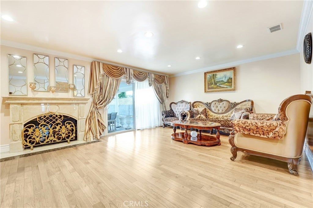 Beautifully updated and gated, this Reseda pool home blends timeless elegance with everyday comfort on a generous 7,470 sq ft lot. A charming landscaped front yard and an expansive driveway with parking for up to four cars create an immediate curb appeal. Enter through a striking custom wood-and-glass front door into a light-filled interior showcasing gleaming hardwood floors, recessed lighting, and crown molding throughout. The thoughtfully designed layout feels open yet refined, offering a seamless flow ideal for both daily living and entertaining. The primary suite is a true retreat, featuring elegant wood-toned crown molding and a beautifully coordinated en-suite bathroom with custom marble floors and walls, granite vanity, modern cabinetry, and refined finishes. Two additional well-appointed bedrooms are spacious and comfortable, sharing a stylishly updated bathroom also finished with marble floors and walls and an enclosed shower stall. The dining area is highlighted by a crystal chandelier, creating an elevated setting for gatherings and special occasions. The modern chef’s kitchen offers stainless steel appliances, custom cabinetry, granite countertops, and a peninsula island perfect for breakfast, casual dining, or hosting guests while staying connected to the main living spaces. The spacious living room serves as the heart of the home, anchored by a statement fireplace and opening through large sliding doors to a private backyard oasis. Step outside to a covered patio ideal for relaxing or entertaining while overlooking a sparkling pool with an attached spa that doubles as a tranquil water-feature fountain. A manicured lawn and mature trees complete the park-like, resort-style setting, offering privacy, shade, and a peaceful outdoor escape. Additional highlights include a cleverly concealed laundry closet that blends functionality with clean design and maintains the home’s polished aesthetic. Solar Panels help keep your bills down! Security cameras for your protection. Conveniently located near Reseda Park, the trails and open space of Lake Balboa, and the Reseda Orange Line Station, this home offers easy access to shopping and dining at Westfield Topanga & The Village, CSUN, and major commuter routes. Don’t miss the opportunity to see this home in person—schedule a tour and imagine making it your own.