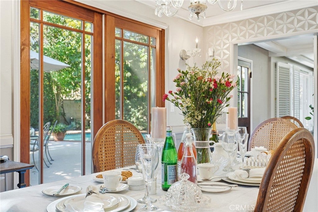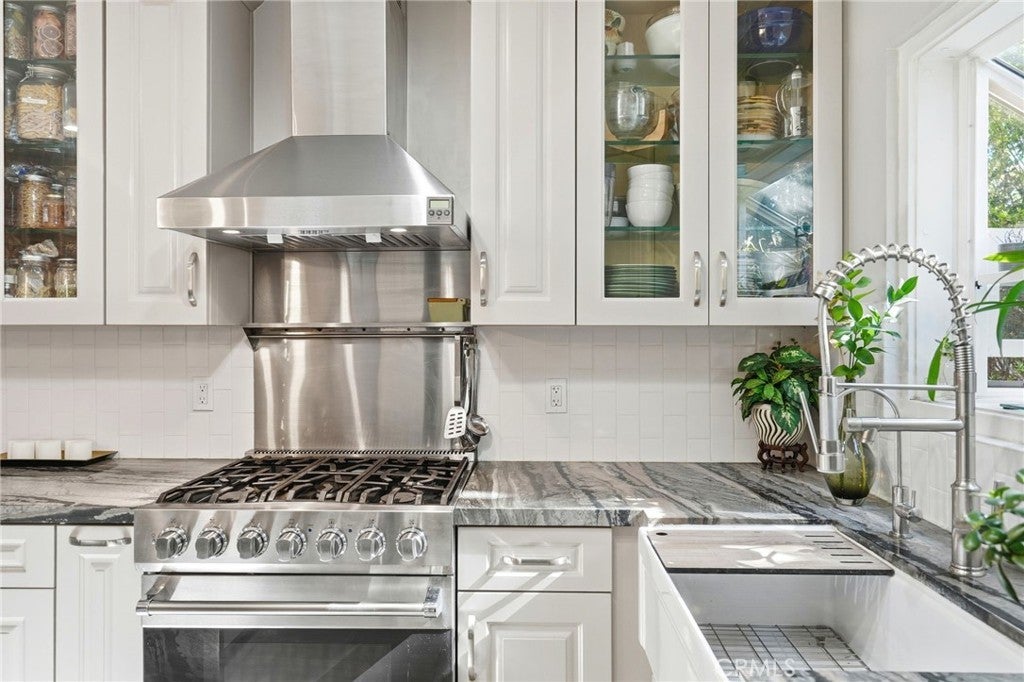 Set on a quiet, tree-lined street in the heart of Encino’s coveted Hesby Oaks neighborhood, this thoughtfully upgraded 2-story home delivers the kind of space, warmth, and character that’s getting harder to find, especially in a location this good. With 2,390 sq ft of well-planned living space, 4 bed + 2 bath, the layout strikes a balance between everyday comfort and effortless entertaining. Inside, natural light takes center stage, pouring through Pella double-pane E-glass windows and original oak hardwood floors, solid redwood interior doors, plantation shutters, and refined designer touches throughout. The living room sets the tone with a fireplace, beamed ceilings, and a large picture window that feels both inviting and timeless. The kitchen is a true standout, clearly designed for someone who actually likes to cook. Fully renovated, it features Galapagos quartzite countertops with a waterfall peninsula, Viking gas range, Italian porcelain farmhouse sink, stainless steel appliances, and custom soft-close cabinetry. It opens seamlessly to the den/family room with a wet bar—because good design should also be practical. A first-floor bedroom with a beautifully renovated spa-style bath adds flexibility for guests, a home office, or multi-generational living. Upstairs, the primary suite feels like a proper retreat with vaulted beamed ceilings, a sitting area, and abundant natural light. Two additional bedrooms offer generous storage and comfort, while both bathrooms have been fully remodeled with luxury Greek marble, rainfall showers, Kohler frameless glass doors, Carrera marble vanities, and Bluetooth-enabled mirrors. Outside, the backyard delivers a serious California lifestyle: a sparkling pool with waterfall spa, mature landscaping, and drought-tolerant plants that create privacy without feeling closed in. The front yard makes just as strong an impression, framed by an artisan redwood trellis fence, self-watering raised garden beds, and established fruit trees. A long, gated driveway leads to a detached two-car garage currently set up as a workshop, studio, or gym. The location seals the deal—just moments from Hesby Oaks Charter School, Ventura Boulevard, the Sherman Oaks Galleria, metro access, dining, shopping, and places of worship—offering true walkability without sacrificing neighborhood calm. And for those thinking ahead, the detached garage offers excellent ADU potential. Homes like this don’t just check boxes—they make life more enjoyable.