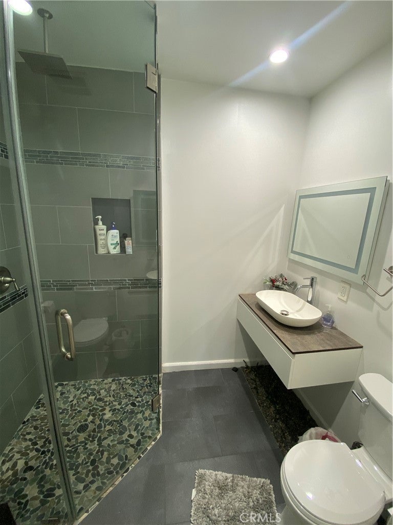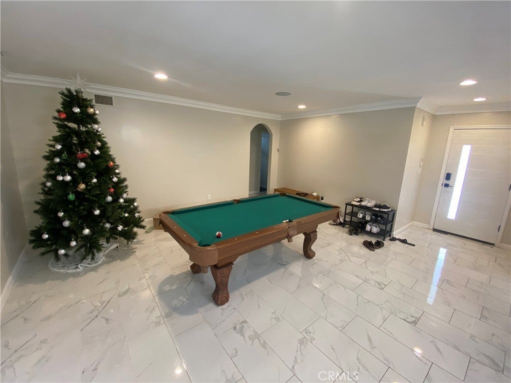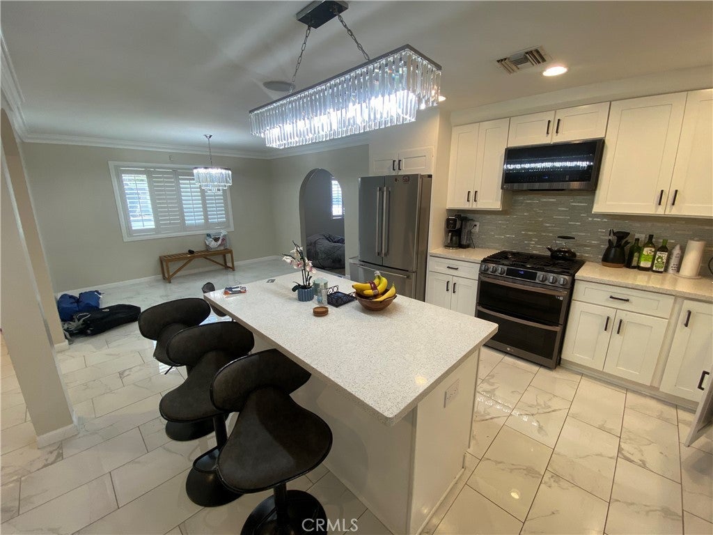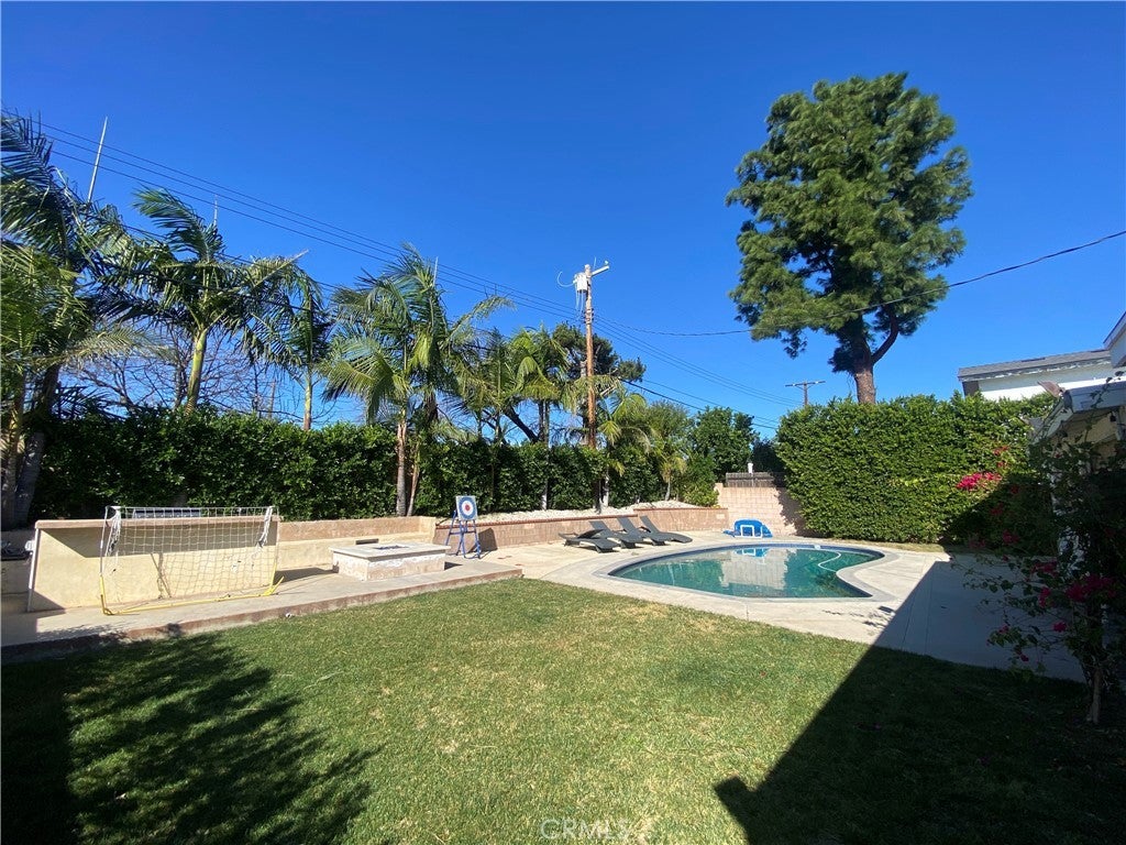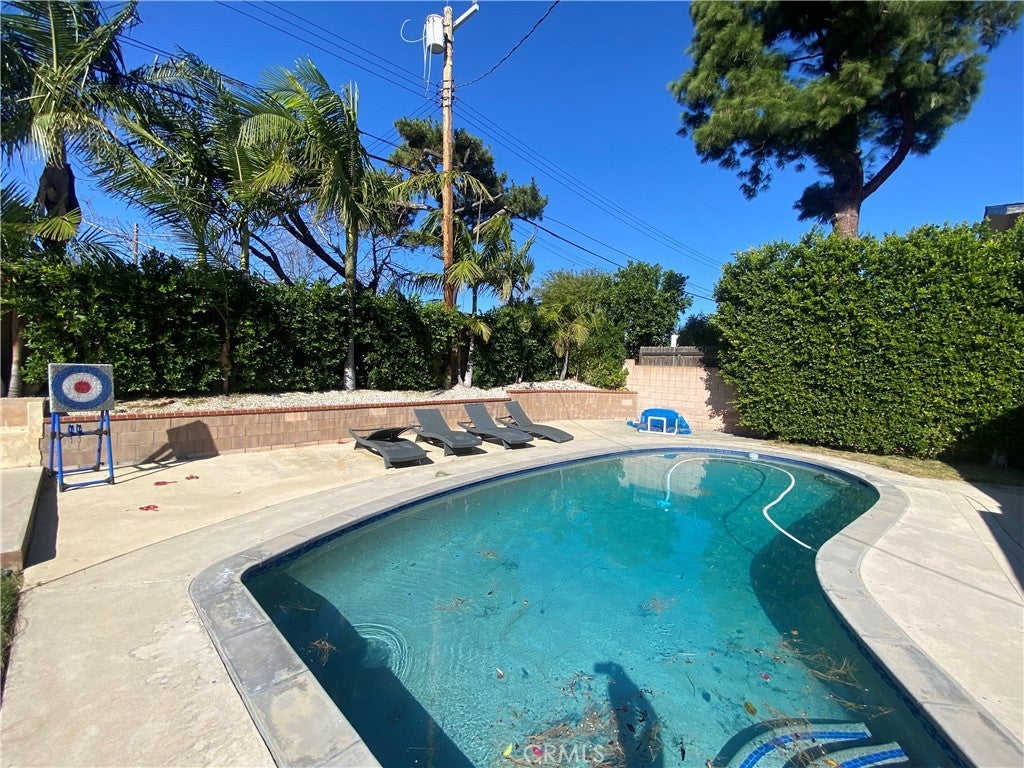 Welcome to 9767 Comanche Ave, a stunning single-story home nestled in a highly sought-after Chatsworth neighborhood. This beautifully updated 4- bedroom, 3-bathroom home spans 1,834 square feet and boasts an entertainer's backyard, a versatile floor plan, and modern upgrades throughout. Step inside to a welcoming foyer that leads to an expansive living room with recessed lighting and views of the backyard. The updated kitchen is the heart of the home, featuring stainless steel appliances, quartz countertops, a stylish backsplash, and an open layout perfect for hosting. Adjacent to the kitchen is a formal dining area and a cozy family room with plenty of natural light, making it an ideal space for gatherings. The primary bedroom is generously sized and includes an en-suite bathroom with a sleek, modern design. Three additional bedrooms provide ample space for family or guests, with one offering direct access to the backyard, making it perfect for a private office or guest quarters. The floor plan showcases the thoughtful layout, emphasizing both functionality and comfort. The exercise room, located just off the backyard, offers endless possibilities as a gym, studio, or additional living space. The backyard is an entertainer's dream, featuring a sparkling pool surrounded by a lush privacy hedge and tall palm trees. The built-in BBQ, fire pit with seating, and expansive patio area provide the perfect setting for hosting summer barbecues or enjoying serene evenings outdoors. The grassy area is perfect for play or relaxation, and the separate structure doubles as a gym or potential home office. This home boasts numerous updates, including new HVAC, fresh paint, modern fixtures, and upgraded flooring throughout. The property's prime location within a quiet, family-friendly neighborhood with mountain views and proximity to top-rated schools, parks, and shopping.