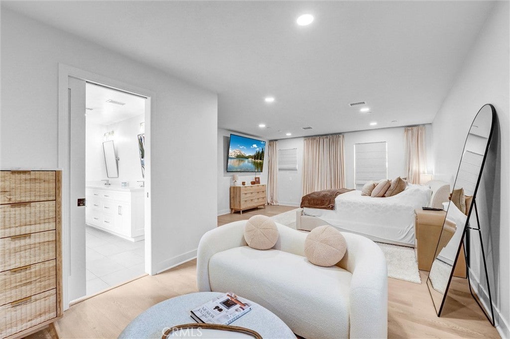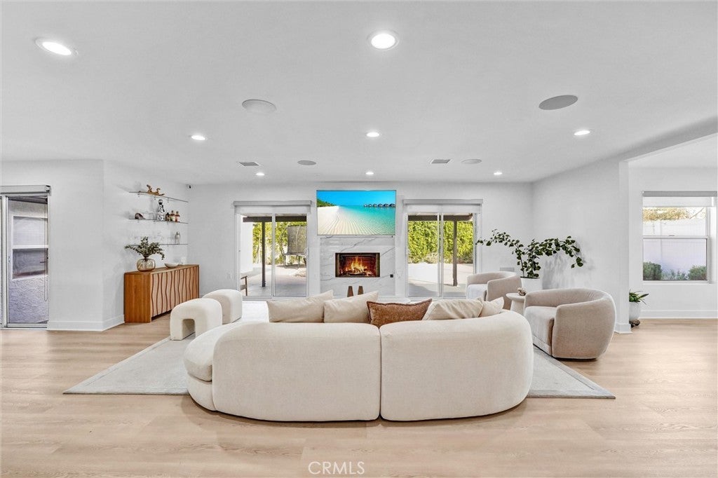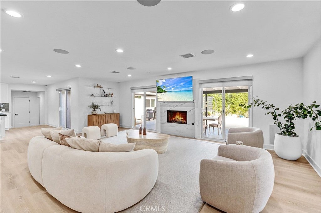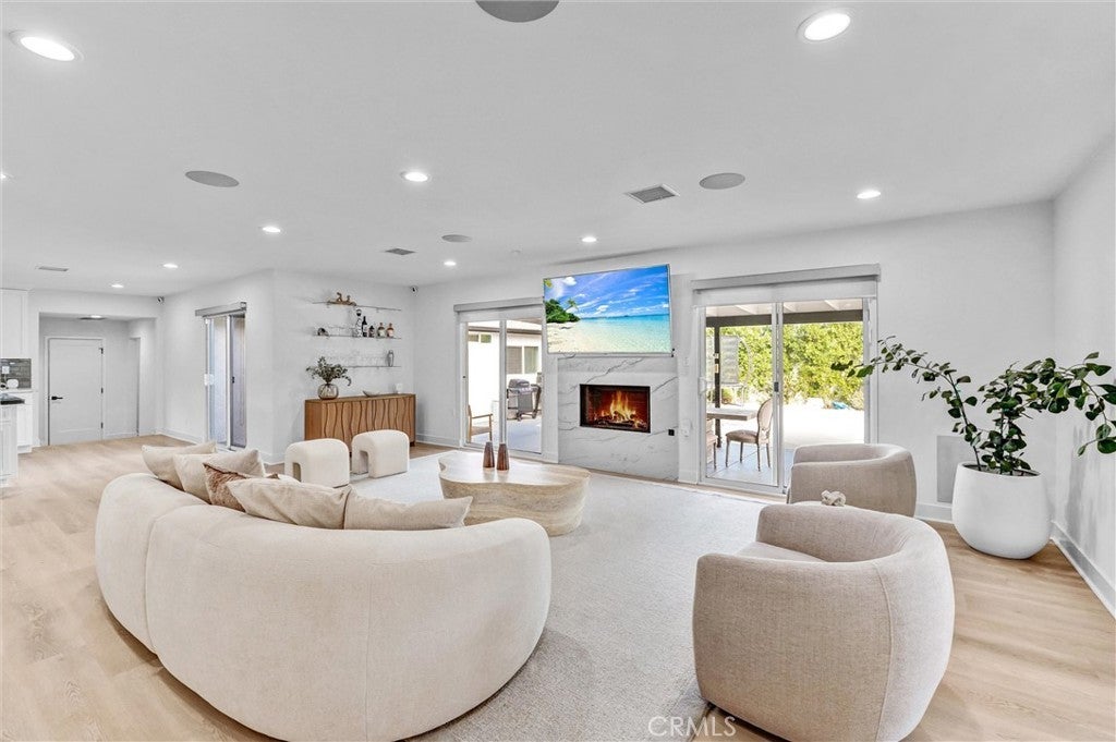 Set behind gates in the highly coveted Walnut Acres of Woodland Hills, this beautifully remodeled 5-bedroom, 3-bath contemporary residence sits on an expansive over 12,000 sq ft private lot, offering exceptional privacy, scale, and modern luxury in one of the area’s most desirable neighborhoods. The home is fully remodeled and turnkey, featuring high ceilings, recessed lighting, and a thoughtfully designed open floor plan anchored by a custom-built chef’s kitchen—ideal for both everyday living and entertaining. The attached two-car finished garage adds both convenience and functionality. The primary suite is a true private retreat, complete with a walk-in closet, fireplace, and a spa-inspired en-suite bath with dual vanities, walk-in shower, and a separate soaking tub. The professionally landscaped grounds provide a serene outdoor setting, while the location offers the best of both worlds—situated within an award-winning Charter school district and just minutes from Warner Center, The Village, The Calabasas Commons, and the 101 Freeway, with effortless access to upscale dining, shopping, and entertainment. A rare opportunity to own a gated, turnkey contemporary home on a large private lot in Walnut Acres—where modern design, lifestyle, and an exceptional location come together seamlessly.