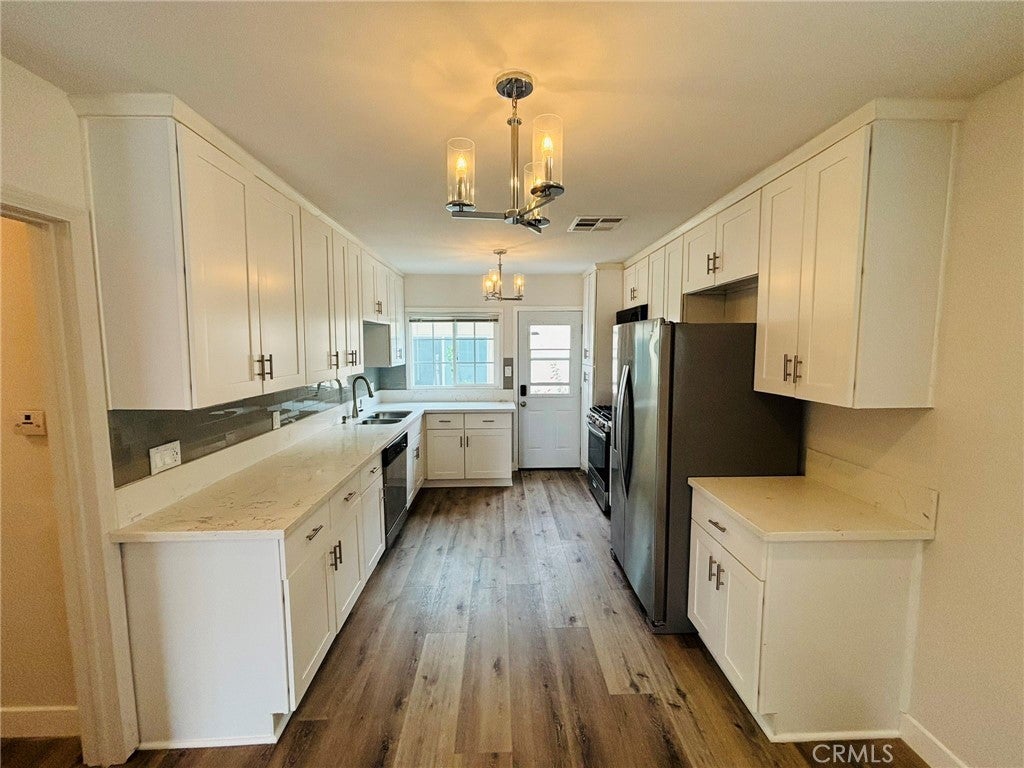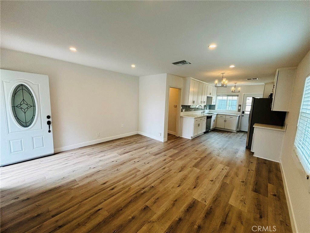 TURN-KEY SINGLE STORY RENTAL WITH MODERN UPGRADES! This stunning 2 bed 1 bath rental was recently upgraded. The open layout features a generously sized living area, which is complemented by a modern kitchen. Some of the other upgrades are recessed lights, newly installed wide plank flooring, Central AC, and a Low Maintenance Patio Space!