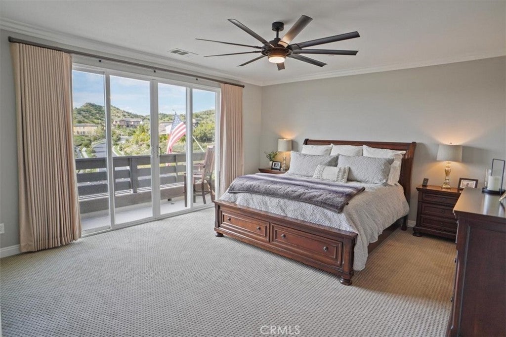 Discover the epitome of modern elegance at this VIEW home in the gated community of West Hills, where every detail has been meticulously curated to offer a luxurious and refined living experience. This expansive 6-bedroom, 6-bathroom masterpiece spans over 3,500 square feet, blending sophisticated design with thoughtful functionality, including a rare and sought-after Next Gen suite. The Next Gen space is a true standout, featuring its own private entrance, a beautifully appointed 1-bedroom, 1-bathroom layout complete with a cozy living room, a kitchenette, and even its own laundry—perfect for multigenerational living, income, or hosting guests in ultimate comfort. From the moment you step inside this home, you’ll be captivated by the elevated finishes throughout. The chef’s kitchen is a showstopper, boasting granite countertops, a striking tile backsplash, antiqued cabinetry, stainless steel appliances, and a central island that seamlessly connects to the inviting family room with fireplace. Downstairs, the attention to detail continues with rich tile flooring, elegant wainscoting, crown molding, and tastefully updated bathrooms. Upstairs, retreat to the serene primary suite, where hillside views and the sound of frogs in the evenings await from the private balcony. The spa-like primary bathroom exudes luxury, offering dual sinks, a tiled shower with a glass enclosure, a deep soaking tub, and a walk-in closet outfitted with custom built-ins. Three additional spacious bedrooms, each with walk-in closets, and a versatile loft provide ample space for family and guests. Outside, the allure continues with enhanced hardscaping and lush landscaping adorned with custom wrought iron gates and arbors. The backyard is an entertainer’s dream, featuring a stunning patio cover crafted from Western Douglas Fir wood, complete with a retractable sunshade. Whether you’re savoring the picturesque views or enjoying the tranquility of the space, this outdoor oasis is designed for relaxation and connection. Rounding out the home is solar with backup battery system for energy efficiency, and a pristine 3-car garage equipped with custom cabinetry, epoxy flooring, and a double-insulated door. Situated on a cul-de-sac in proximity to the community pools, dining, shopping, and with effortless freeway access, this home perfectly balances luxury and lifestyle. This home is a must see!