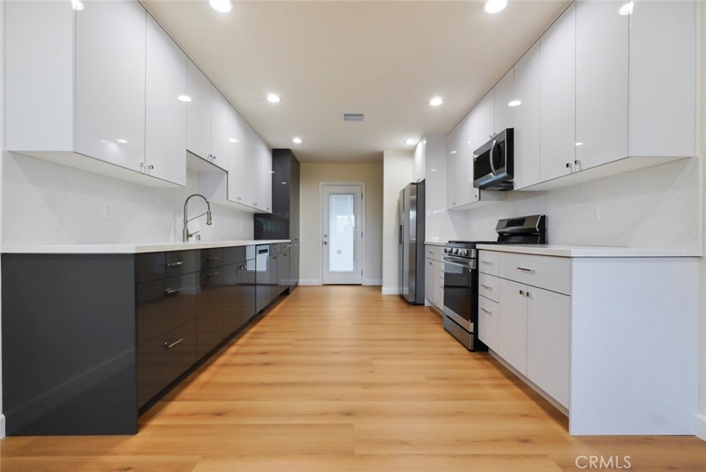 Completely remodeled modern luxury rental in the heart of Reseda, located on a large parcel featuring four brand-new homes. Each residence may be rented individually or together—ideal for extended families, corporate housing, or flexible living arrangements. This stunning home offers contemporary living with premium finishes throughout. The open-concept floor plan features a bright and airy living area, sleek modern flooring, and recessed lighting. The fully upgraded kitchen showcases modern cabinetry, quartz countertops, and stainless-steel appliances, all included. Both bathrooms are beautifully remodeled with designer tile, modern vanities, upscale fixtures, and smart toilets with remote controls. Spacious bedrooms provide comfort and privacy. Additional features include in-unit laundry, ample storage, and a thoughtfully upgraded interior designed for modern living. Conveniently located near shopping, dining, schools, and major freeways. Turnkey and move-in ready. A must-see luxury rental.