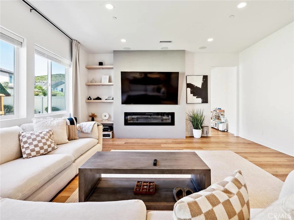 Sophisticated newer construction residence in a highly desirable Santa Clarita neighborhood. Offering approximately 3,600+ square feet of impeccably designed living space, this expansive home features 4 bedrooms, 4 bathrooms, and a private office with custom built-ins. Refined finishes and a thoughtfully curated open concept floor plan create an ideal setting for both upscale entertaining and everyday living. The chef’s kitchen showcases a spacious center island, sleek custom cabinetry, and abundant storage, flowing seamlessly into light-filled living and dining areas. The primary suite serves as a private retreat with a spa-inspired bath, dual vanities, and a generous walk-in closet. Secondary bedrooms are spacious and beautifully appointed, offering flexible living options. An upstairs bonus living area provides the perfect space for a media lounge or executive home office. The private backyard offers a serene setting for outdoor entertaining and relaxation. Ideally located near premier shopping, dining, parks, and top-rated schools, this exceptional opportunity delivers modern luxury, impressive scale, and lifestyle convenience.Situated within a vibrant newer community, residents enjoy access to scenic hiking trails, resort-style community centers, pools, pickleball, tennis and basketball courts, baseball fields, playgrounds, and dog parks. Solar lease for $180/mo