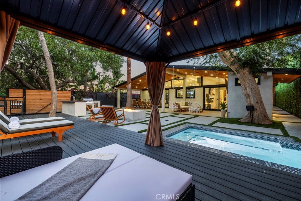 Modern Innovation Meets Timeless Elegance At 22263 Flanco, Fully Furnished, every detail has been curated to elevate your lifestyle, blending cutting-edge technology with classic design elements in a way that feels both fresh and enduring. Nestled in a serene neighborhood, this residence offers an inviting retreat where comfort, style, and innovation live side by side. From the moment you arrive, the home’s redesigned landscaping makes an unforgettable impression. Lush plantings, thoughtfully placed lighting, and welcoming pathways create a sense of tranquility and showcase the property’s curb appeal. Inside, the open-concept living and dining areas are bathed in natural light, with the seamless indoor-outdoor flow making entertaining a breeze. At the heart of the home is a gourmet kitchen with high-end Miele appliances, generous Quartz countertop space, and custom Walnut cabinetry—a culinary environment designed to inspire. Each bedroom has been designed as a private sanctuary, with high end materials, offering an ideal balance of comfort and style. The primary suite features a spa-inspired en-suite bath and a spacious walnut walk-in closet, providing a daily retreat that feels indulgent yet serene. Outdoors, a beautifully landscaped backyard awaits, complete with dedicated spaces for al-fresco dining, gardening, relaxation, and even a private dog park—an ideal feature for pet owners who want convenience without sacrificing beauty. Technology amplifies every aspect of this property, with its features thoughtfully reimagined in 2024 and further enhanced in 2025. A state-of-the-art Tesla Gateway system, installed in 2025, provides efficient energy management and sustainability. Integrated smart home features for lighting, security, and climate control bring modern convenience to your fingertips, allowing you to tailor your environment with ease. More than just a residence, 22263 Flanco is a statement of style, sustainability, and sophistication. Schedule your private tour today and discover why this property is unlike any other.