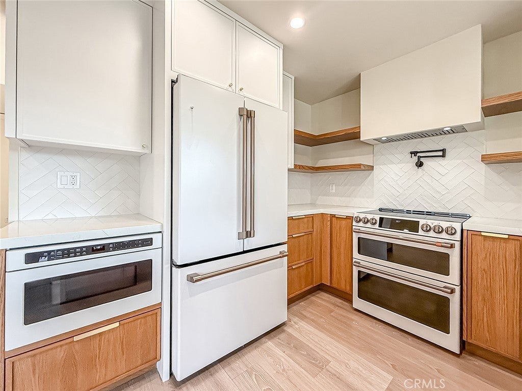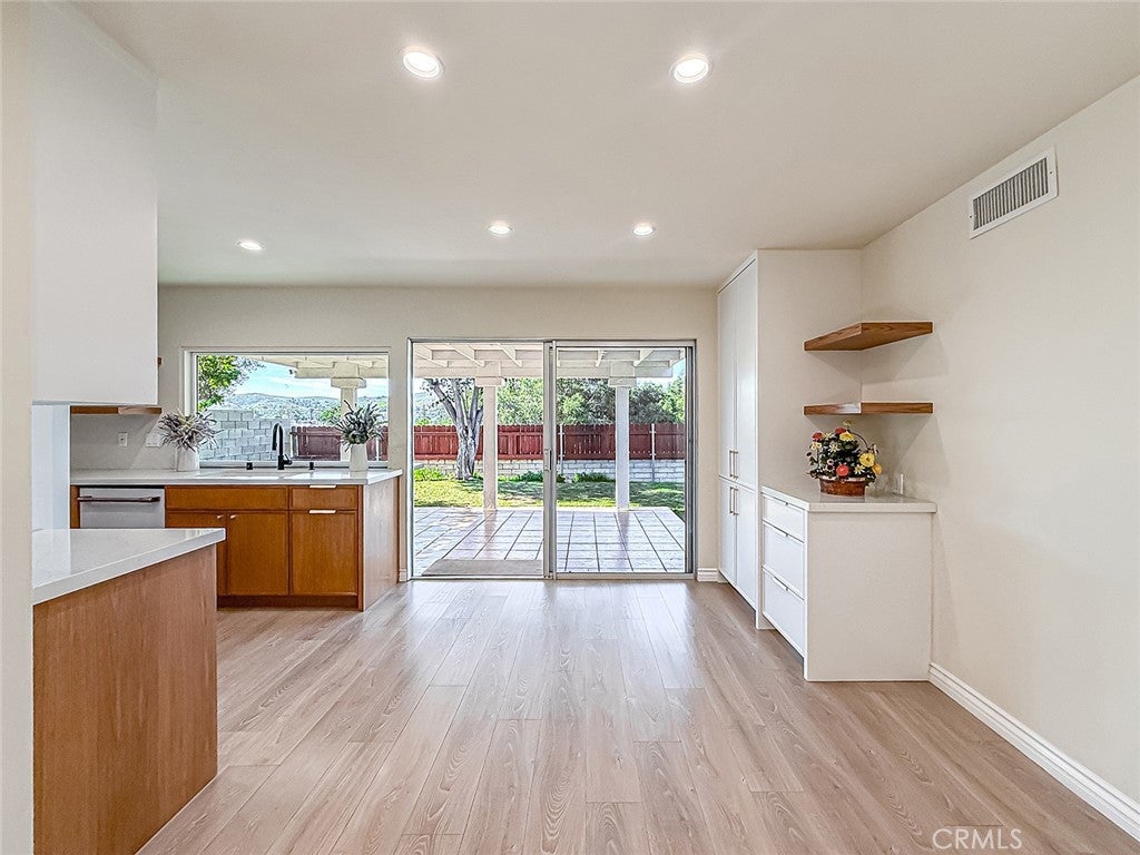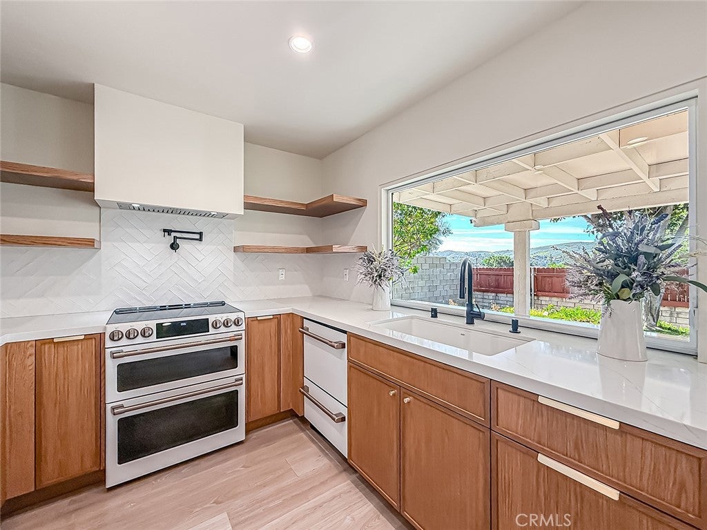 Charming single-story ranch home located directly across from Wildwood Regional Park with scenic views and immediate access to hiking and biking trails. Walking distance to award-winning schools, community parks, tennis courts, and playfields. This 4 bedroom, 2 bath home offers approximately 1,450 sq ft of living space on a 6,534 sq ft lot. The open floor plan features vaulted ceilings and abundant natural light, with living and dining areas flowing seamlessly into the updated kitchen. The kitchen was fully renovated with custom oak cabinetry and pantry, Café appliances including an induction range, drawer microwave, double dishwasher, and refrigerator, plus a large pass-through window to the patio bar ideal for indoor-outdoor entertaining. Additional highlights include a 200-amp electrical panel, EV charging plug in the garage, and a sound-proofed rear bedroom perfect for a home office or nursery. Sliding glass doors open to the backyard with a putting green and garden bed. This home offers comfort, convenience, and the best of the Wildwood lifestyle.