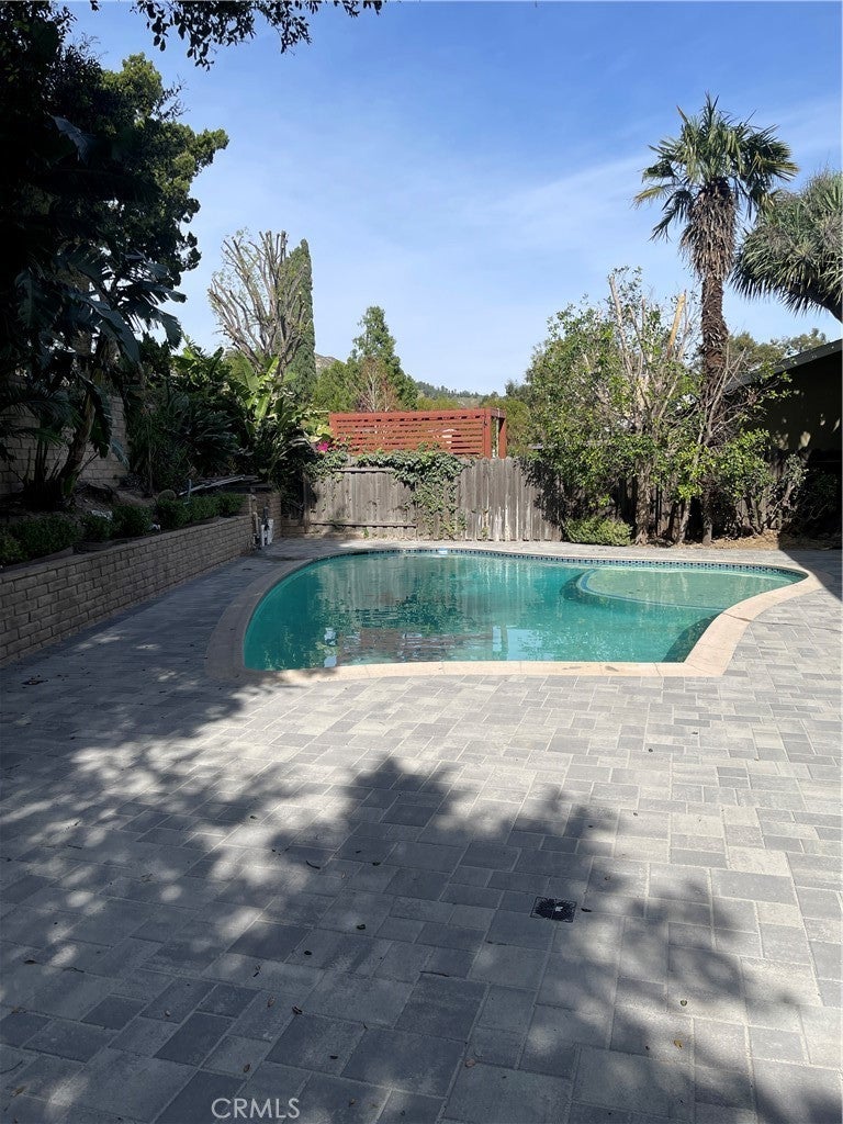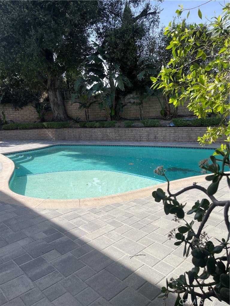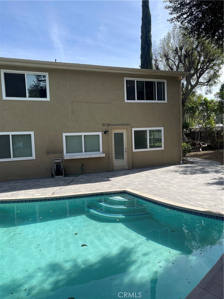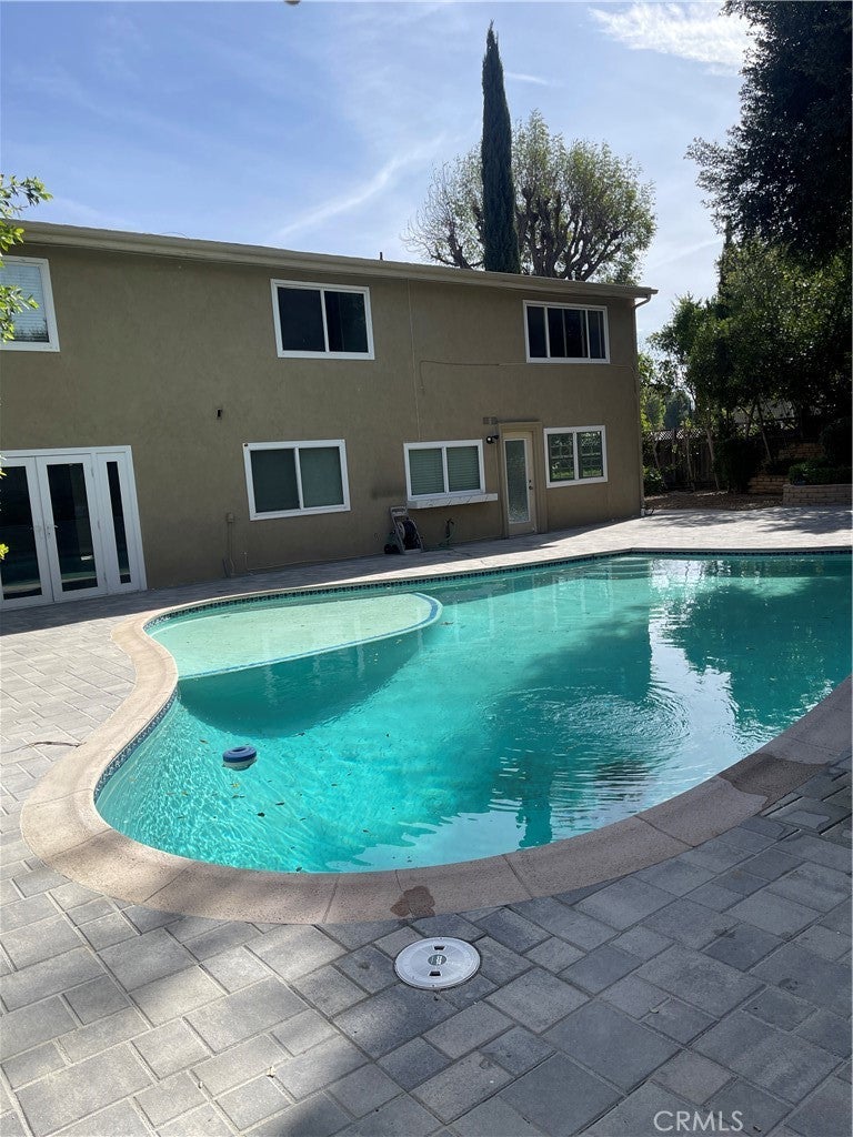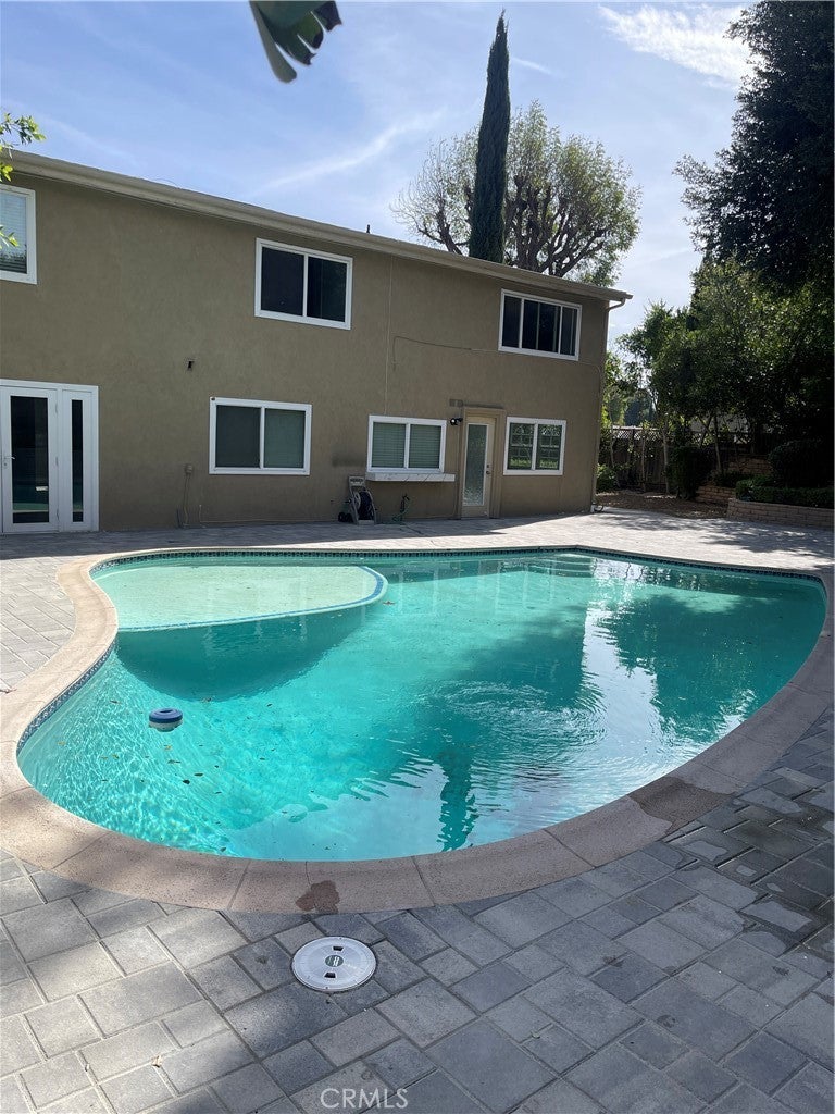 Beautiful 5BD/3BA home in a quiet Granada Hills neighborhood. Kitchen with quartz countertops, new cabinetry, stainless steel appliances, and large breakfast counter with walk-in pantry. Kitchen, living room, and den open to a private backyard with pool and peekaboo views, also visible from the primary bedroom. One bedroom and ¾ bath downstairs. Upstairs features a spacious primary suite with vaulted ceilings, remodeled oversized bath, and his-and-her walk-in closets. Three additional bedrooms all with walk-in closets. New tile floors, laundry chute to garage, 2-car attached garage. Close to shopping area and major freeways. Must see.