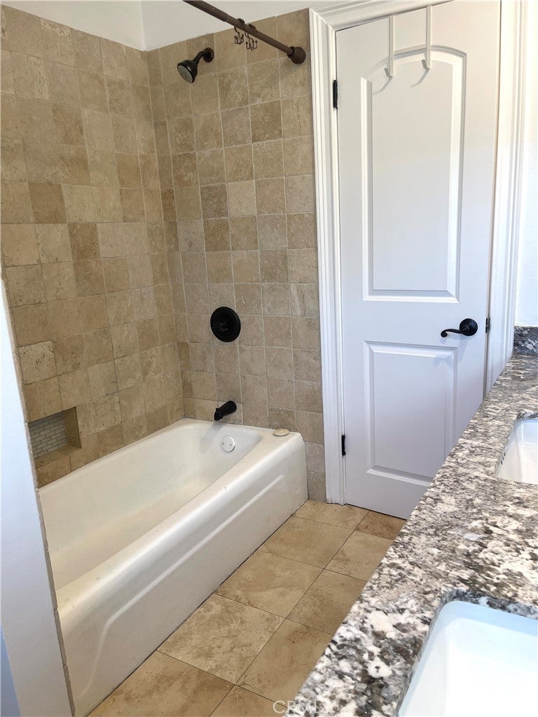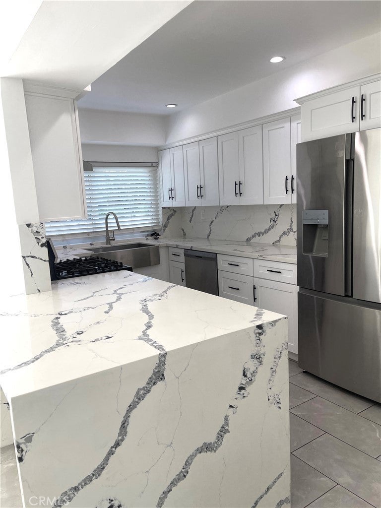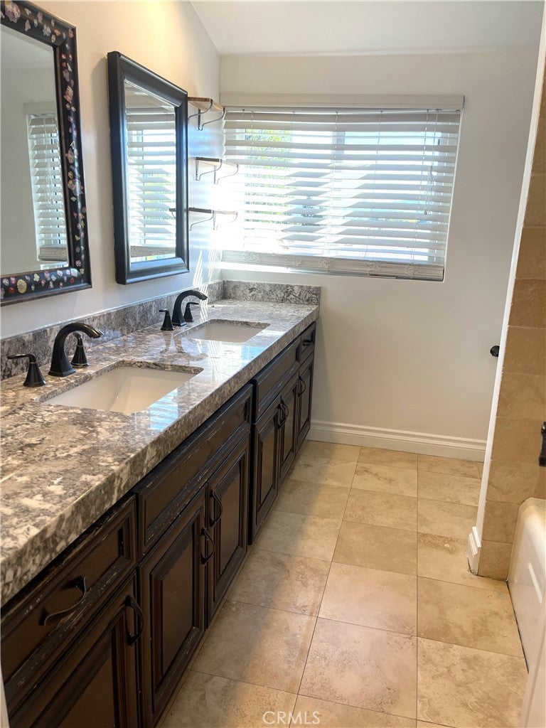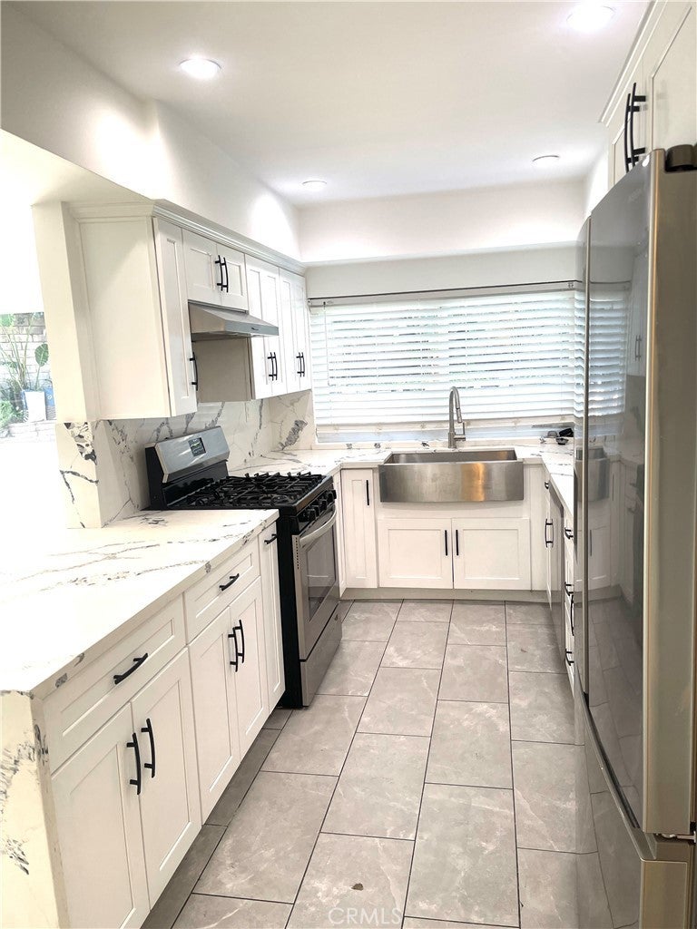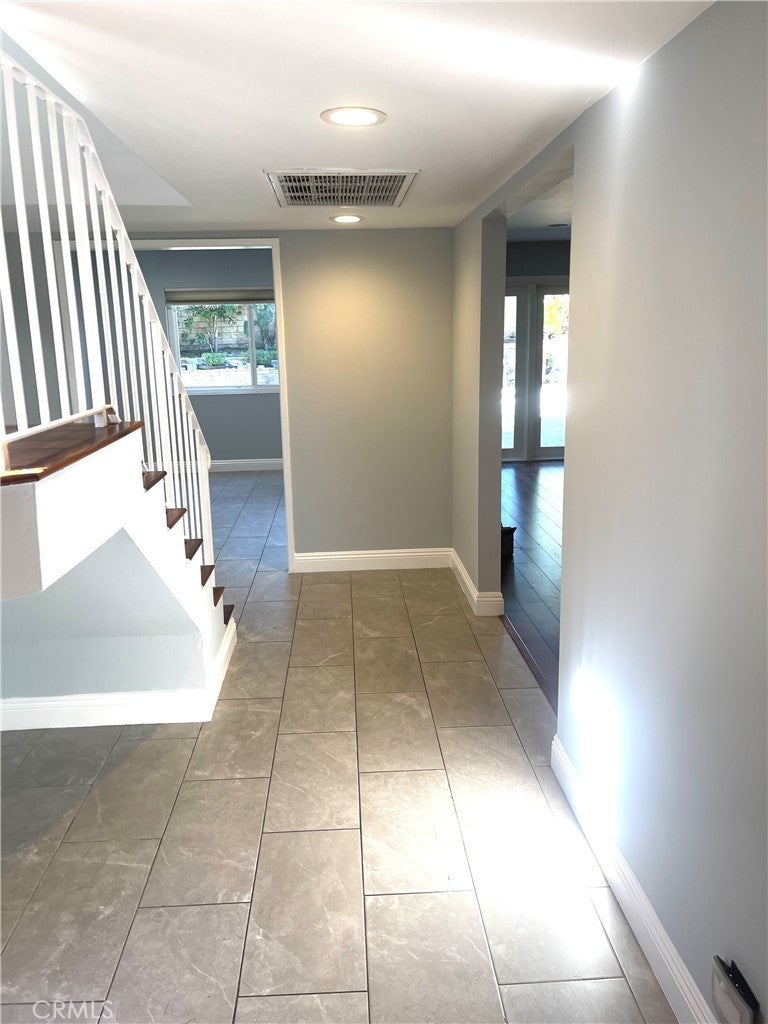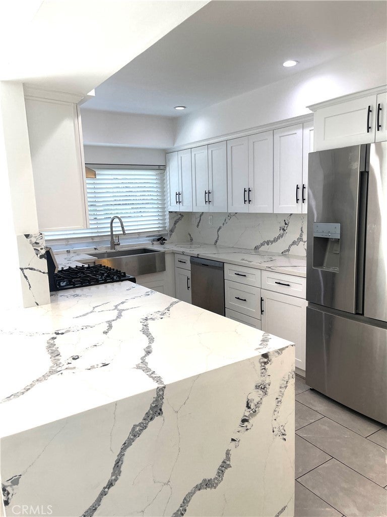Beautiful 5BD/3BA home in a quiet Granada Hills neighborhood. Kitchen with quartz countertops, new cabinetry, stainless steel appliances, and large breakfast counter with walk-in pantry. Kitchen, living room, and den open to a private backyard with pool and peekaboo views, also visible from the primary bedroom. One bedroom and ¾ bath downstairs. Upstairs features a spacious primary suite with vaulted ceilings, remodeled oversized bath, and his-and-her walk-in closets. Three additional bedrooms all with walk-in closets. New tile floors, laundry chute to garage, 2-car attached garage. Close to shopping area and major freeways. Must see.