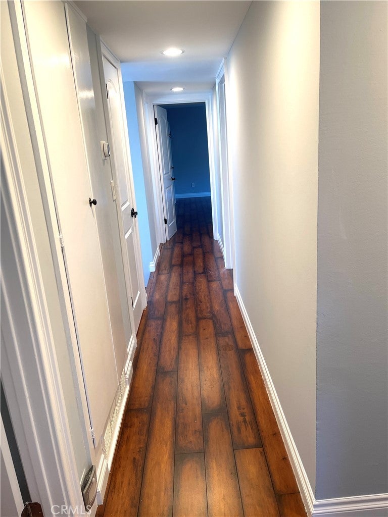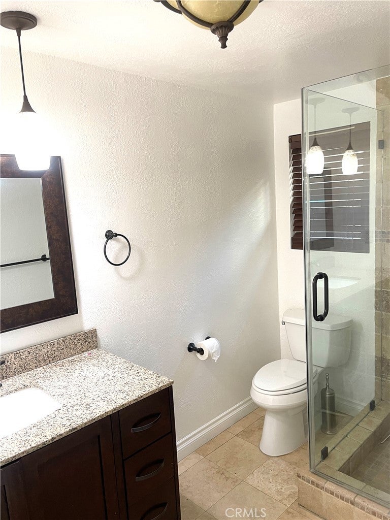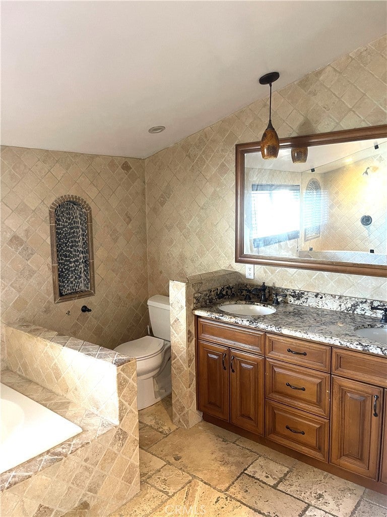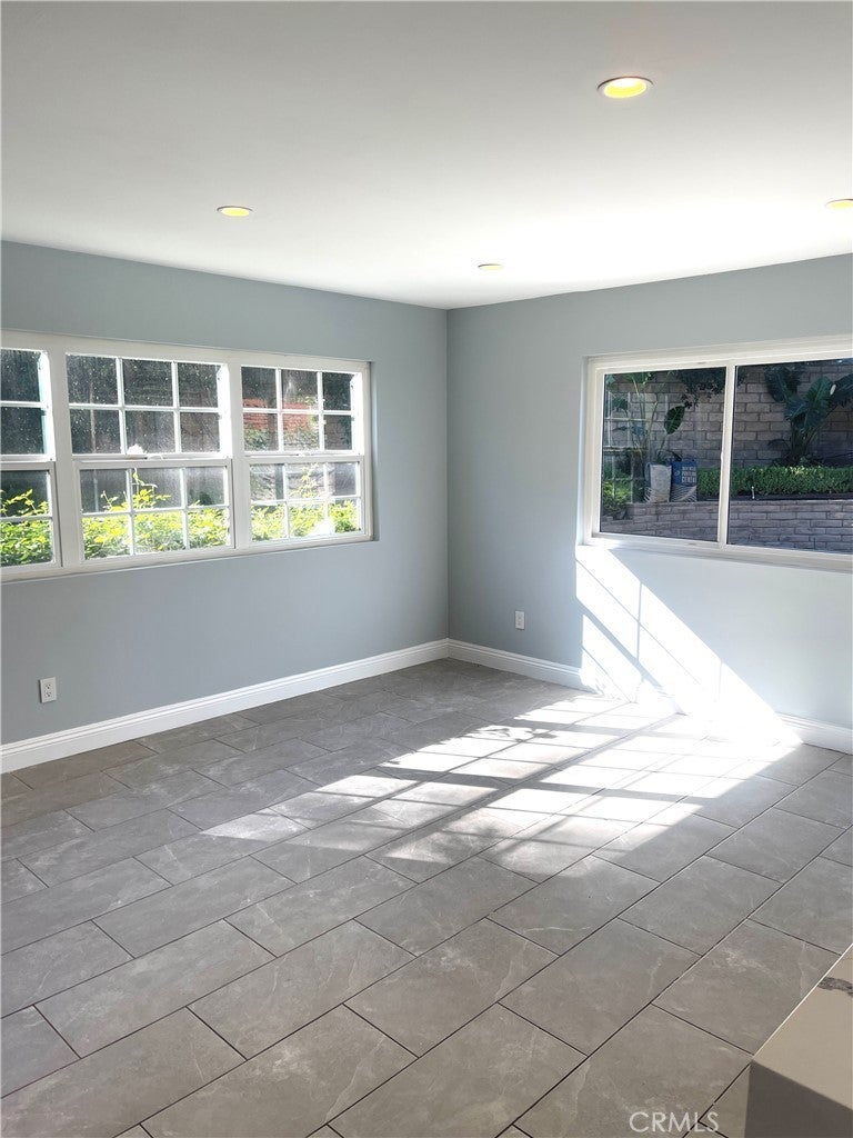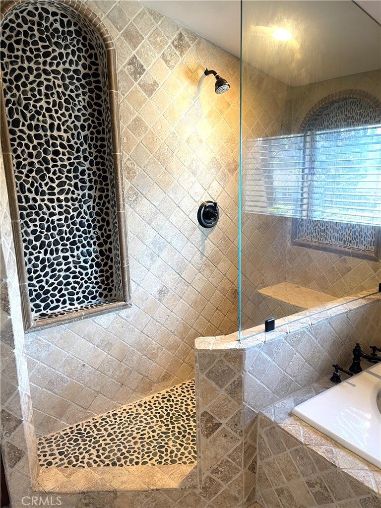 Beautiful 5BD/3BA home in a quiet Granada Hills neighborhood. Kitchen with quartz countertops, new cabinetry, stainless steel appliances, and large breakfast counter with walk-in pantry. Kitchen, living room, and den open to a private backyard with pool and peekaboo views, also visible from the primary bedroom. One bedroom and ¾ bath downstairs. Upstairs features a spacious primary suite with vaulted ceilings, remodeled oversized bath, and his-and-her walk-in closets. Three additional bedrooms all with walk-in closets. New tile floors, laundry chute to garage, 2-car attached garage. Close to shopping area and major freeways. Must see.
