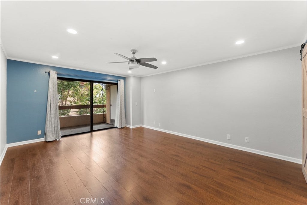 Balcony, Ceiling Fan(s), Granite Counters, Open Floorplan, Recessed Lighting, Bedroom on Main Level, Crown Molding