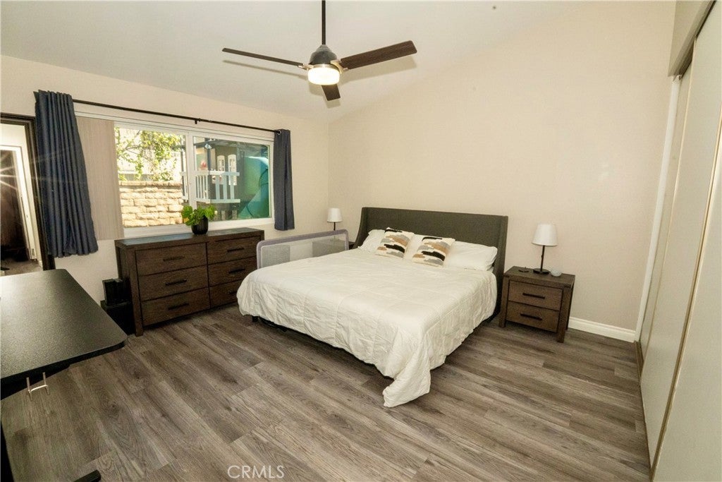 Welcome to this lovely single-story home in the much sought after neighborhood. This charming home features an upgraded kitchen with quarts countertops, recessed lighting, stainless-steel appliances, with an eat-in kitchen.The living room has vaulted ceiling, recessed lighting, a fireplace, and large windows that let in an abundance of natural light. As you come in through the hallway you will find an upgraded bathroom with a shower/tub combo. The primary suite is spacious with plenty of closet space, vaulted ceiling, ceiling fan, and an updated en-suite bathroom. The other two rooms have upgraded ceiling fans with remote on/off, and plenty of closet space. There is an attached two car garage that's been drywalled and added lights for better visibility. In the backyard you'll find a private, low maintenance with artificial grass, covered patio, and gated side yard. Low HOA with no Mello Roos, with a short walk to the association pool, park, tennis court, pickle ball courts, and playground. This home is close to schools, shopping, restaurants, and much more.