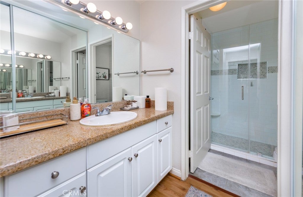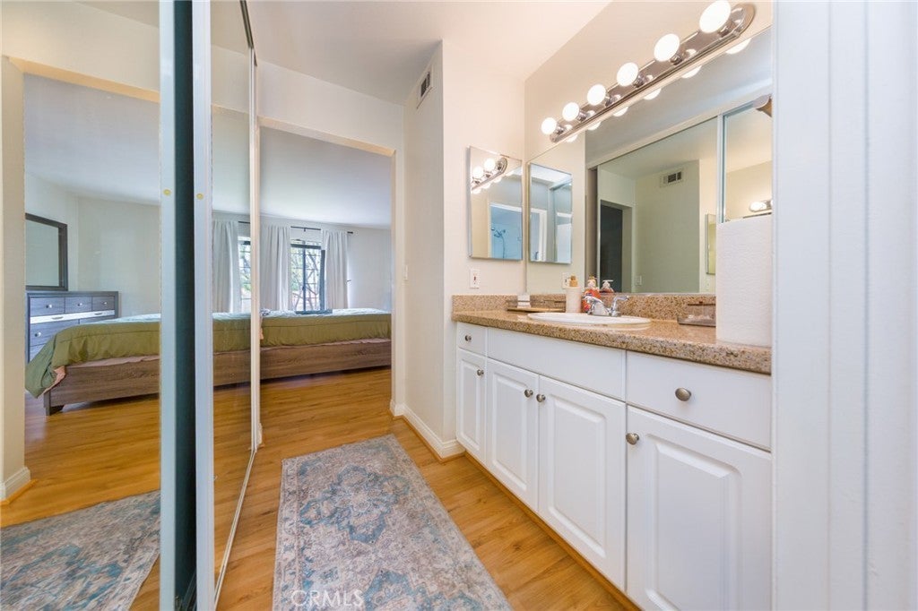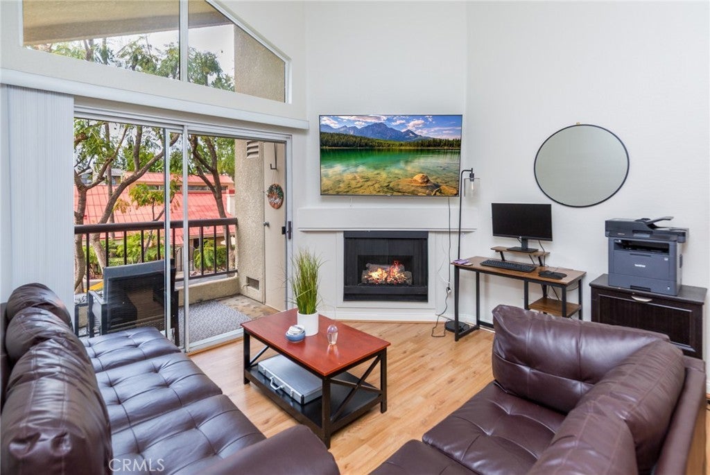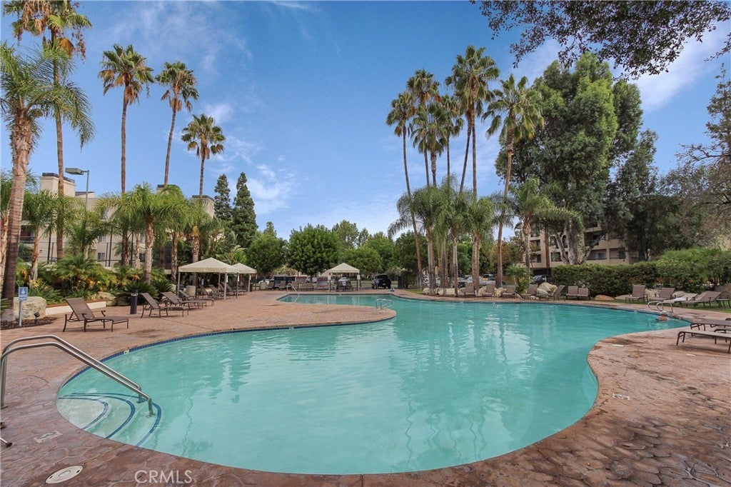 Welcome to this beautiful 1 bed, 1 bath, 610 sq ft unit at The Met complex in Woodland Hills. This light and bright top floor condo features high vaulted ceilings with no one living above you. The bathroom has been remodeled, and the condo has been freshly painted throughout, offering hardwood style flooring. The condo includes granite countertops, stainless steel appliances, a fireplace, and an open balcony with abundant natural light and views of the main pool. It is ideally located within the complex and comes with 2 tandem covered parking spaces. The Met offers a guard-gated community with resort style amenities including 6 lighted tennis courts, 4 pools, indoor basketball and racquetball courts, a fitness center, a children’s play area, a pet friendly environment, and 24-hour security. The location is within walking distance to The Village, Warner Center Park, and all the dining, shopping, and entertainment that Warner Center has to offer. This turnkey condo will not disappoint.