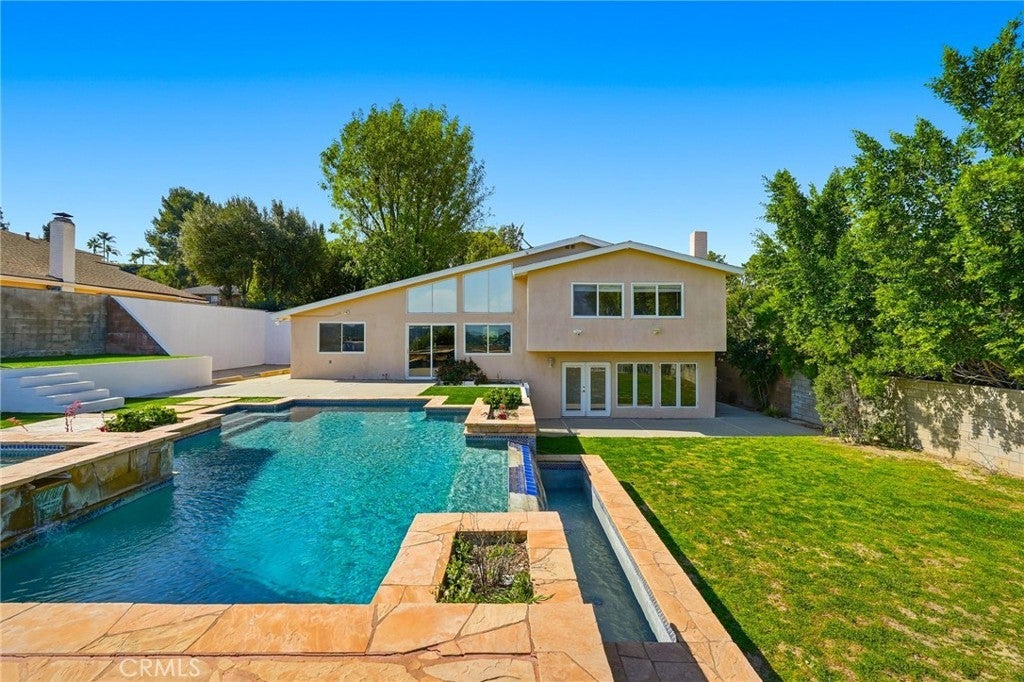 VIEWS! VIEWS! VIEWS! Set on a prime lot with panoramic views and a spacious backyard, this beautifully updated 5 bedroom, 3 bathroom home is located in one of Tarzana’s most desirable neighborhoods. The well-designed floor plan features four bedrooms upstairs and one bedroom downstairs, along with two large living spaces that offer flexibility for everyday living and entertaining. Upon entry, you are welcomed by bright interiors and stunning views overlooking the park like grounds. The expansive backyard is ideal for entertaining and everyday enjoyment, complete with a pool, spa, and large side yard. The recently renovated kitchen offers an open concept layout with granite countertops, stainless steel appliances, and ample cabinetry. The updated bathrooms feature custom tile and stone finishes with contemporary vanities. This move in ready home combines comfort, functionality, and an exceptional location. Available for immediate occupancy.