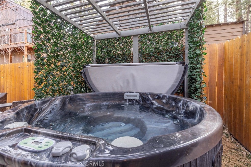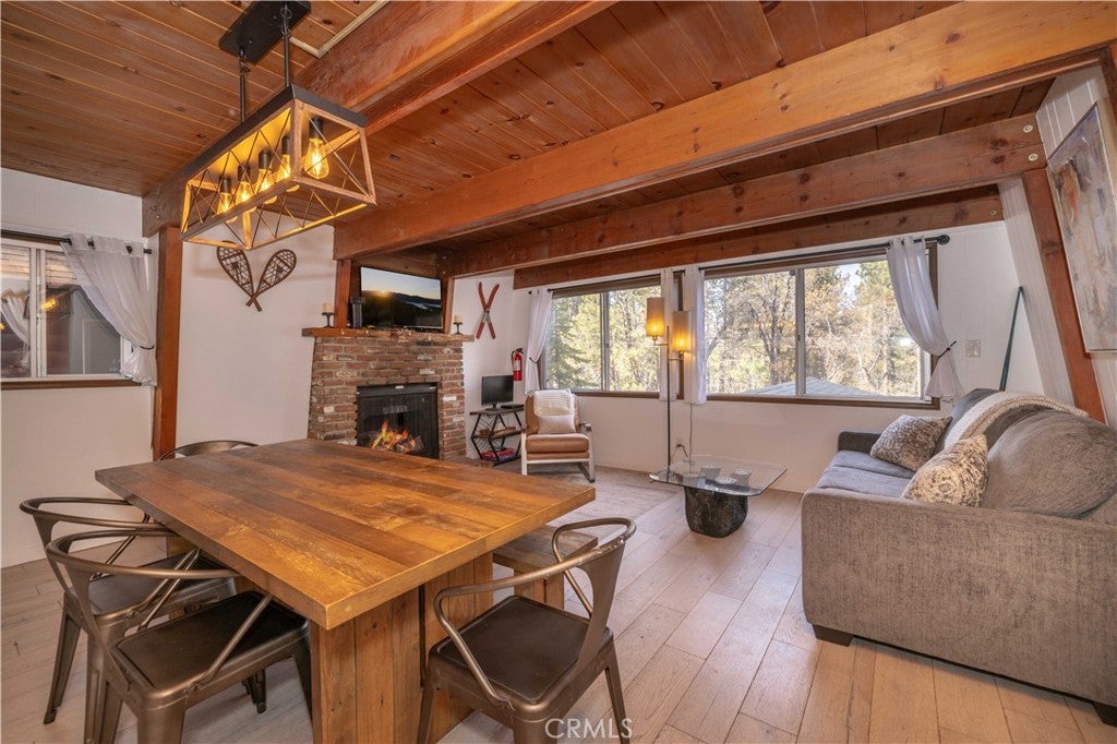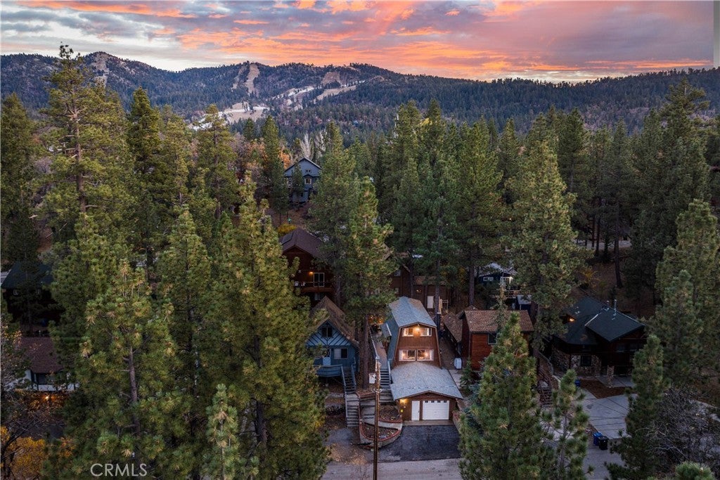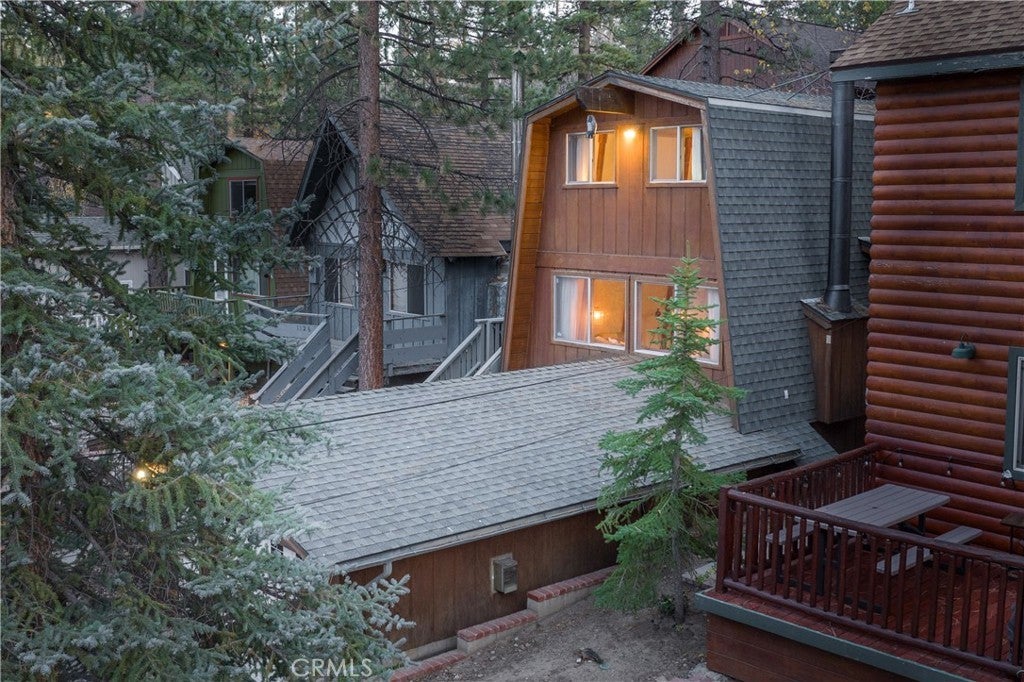 Nestled among majestic pines, 1130 Vine Avenue offers a peaceful mountain retreat in Moonridge. This charming Gambrel-style cabin is the perfect escape - enjoy mornings breathing in the crisp air out on the back deck and evenings relaxing in the hot tub. The functional floor plan features a spacious living room with adjacent dining room, and well-appointed kitchen with newer tile backsplash, electric stove, and dishwasher. The luxurious bathroom is freshly painted, and has a newer vanity, toilet, and shower sliding doors. Upstairs, the two large bedrooms feature recently updated carpet and lighting, and beautiful vaulted ceilings. Numerous upgrades include: new tankless water heater, new privacy pergola over hot tub, new ADT security system, and exterior solar lighting. Located within the tranquility of nature while being minutes from local shops, dining, hiking trails, ski resorts, and the lake, this home is a perfect full-time residence, weekend getaway, or investment opportunity in a beloved mountain community.
