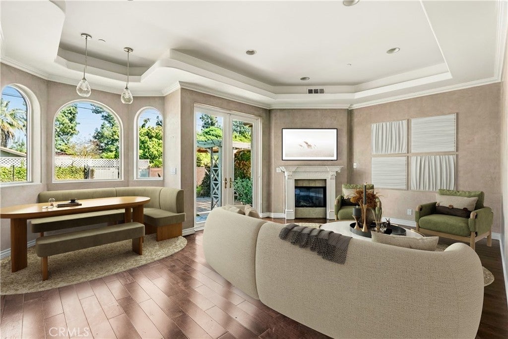 Minutes from the studios, worlds away from the noise — where resort-style living meets timeless Mediterranean elegance in Burbank’s coveted Media District. Privately situated on a quiet, tree-lined street, this 5-bedroom, 4.5-bath residence offers sophisticated design and exceptional space for both everyday living and executive entertaining. A dramatic marble foyer and sweeping staircase set the tone, leading to interiors defined by Brazilian hardwood floors, soaring tray ceilings, Venetian plaster walls, custom lighting, and timeless architectural detail throughout. Three en-suite bedrooms provide flexibility for guests, multigenerational living, or private office use. The sun-filled gourmet kitchen with granite countertops and stainless-steel appliances opens seamlessly to a serene backyard retreat designed for true California indoor-outdoor living. Enjoy a resort-style pool and spa with waterfalls, pergola, outdoor shower, and mature landscaping — an ideal setting for relaxation or memorable gatherings. The luxurious primary suite is a private sanctuary featuring vaulted ceilings, fireplace, two balconies, a cedar-lined walk-in closet, and a spa-inspired bath with soaking tub and walk-in shower. Additional highlights include: • Three balconies total • Built-in storage throughout • Two-car garage with custom cabinetry • Gardener and pool service included Ideally located near top-rated schools, upscale shopping and dining, Whole Foods, medical centers, the 134 Freeway (without freeway noise), Burbank Airport, and walking distance to Verdugo Water Park. A rare opportunity to lease a statement home in one of Burbank’s most desirable neighborhoods. Pets considered. Lease terms negotiable. Non-smoking preferred.