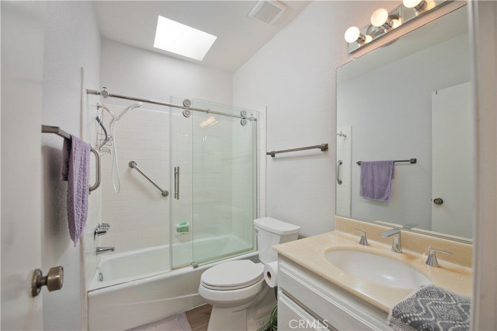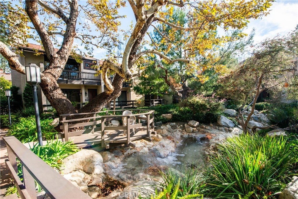 Welcome to this beautifully upgraded 3-bedroom + bonus room, 2.5-bath townhome in the highly desirable Warner Village community. Designed with an open-concept layout, this home is truly an entertainer’s dream. The inviting family room features a cozy fireplace and a private balcony surrounded by lush greenery, creating the perfect indoor-outdoor flow. Gorgeous wood flooring spans the entire first level, seamlessly connecting the living room, dining area, breakfast nook, and kitchen. The stunning kitchen is highlighted by elegant quartz countertops, a large center island ideal for gathering and meal prep, custom cabinetry offering abundant storage, and sleek stainless steel appliances that complete the space in style. Upstairs, the spacious primary suite boasts vaulted ceilings, a private balcony, two closets including a walk-in, and a beautifully upgraded en-suite bath with a glass-enclosed shower and modern vanity. Two additional generously sized bedrooms with ample closet space and a nearby full bathroom are conveniently located just off the staircase.The attached two-car garage provides direct access to an oversized bonus room—perfect for a home office, gym, playroom, or media space—and includes a washer and dryer for added convenience. Enjoy resort-style living in Warner Village with amenities including two pools, a tennis court, walking paths, tranquil creeks and ponds, and a community center. The HOA covers water, internet, basic cable, and earthquake insurance. Ideally located near shopping, dining, and entertainment, this exceptional home offers the perfect blend of comfort, style, and functionality.