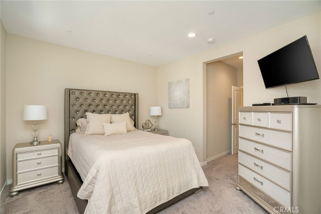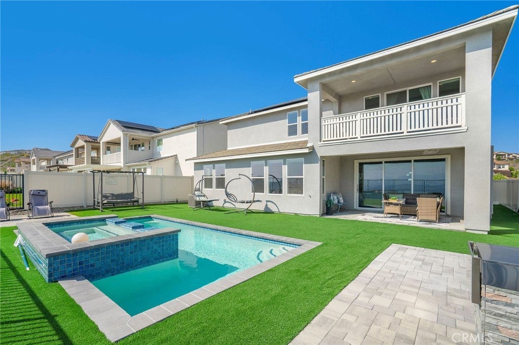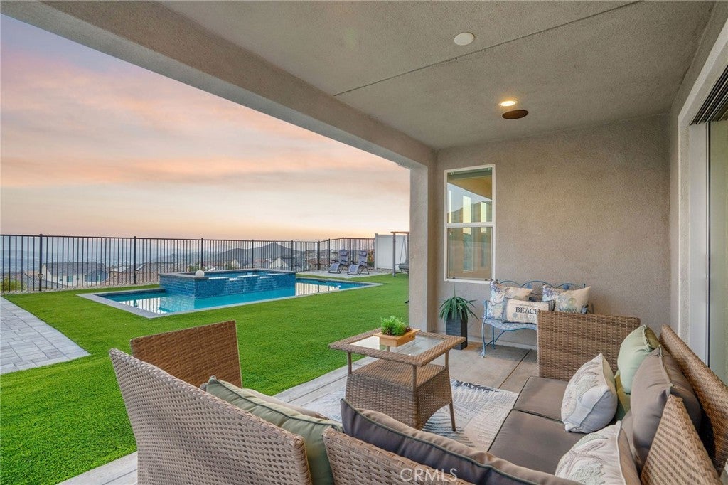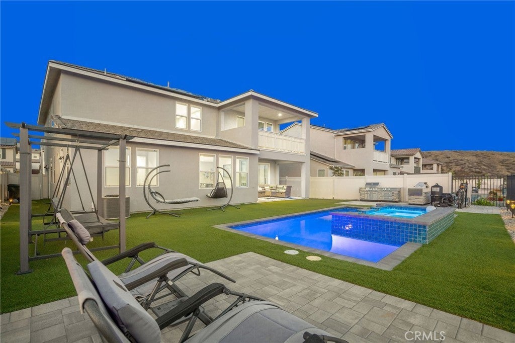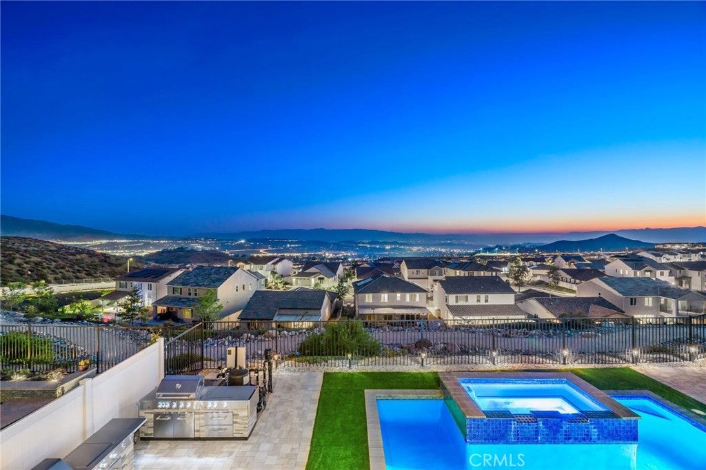 Positioned one of Skyline's most desirable streets with stunning jetliner views. This captivating 2-story home, built in 2020 and finished with an extensive amount of builder upgrades. A perfect blend of modern amenities and detailed craftsmanship. Featuring 3,546 square feet of living space, 5 bedrooms and 5 bathrooms . The two story entry opens with a direct view of the stunning backyard oasis. The modern chef’s kitchen features an oversized island with breakfast bar, stainless steel appliances, double ovens, and a walk-in pantry. The kitchen overlooks the dedicated dining room, and opens seamlessly to a spacious family room. A large multi-slide door connects the living space to the covered patio, creating effortless indoor-outdoor flow. A downstairs guest wing with it’s own private entrance offers versatility and perfect for multigenerational living or separate home office. A bonus room behind French doors—ideal as a home study or den. Upstairs, a bright loft anchors the secondary living space and two generously sized bedrooms with a shared bath along with an additional junior suite filled with natural light. The oversized primary retreat is a standout, complete with an expansive private balcony, spa-inspired bath with freestanding tub, walk-in shower, dual sinks, and a massive walk-in closet. Outside, the fully upgraded entertainers backyard offers an in-ground pool with custom lighting, built-in BBQ, and sweeping city-light views. Other features include fully paid-off solar panels, exterior lighting, and select areas prewired for sound, offering potential for integrated audio. Skyline residents enjoy access to two beautiful clubhouses with resort-style pools, a state of the art gym, spa, fire pits, and more. Close to award winning and highly coveted private and public schools, many shops and restaurants, and hiking trails with easy freeway access.