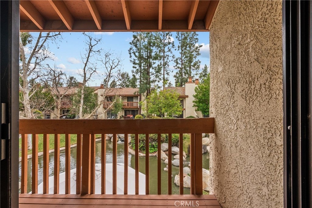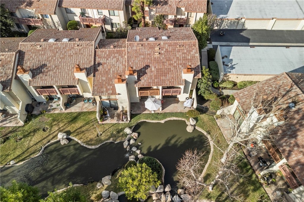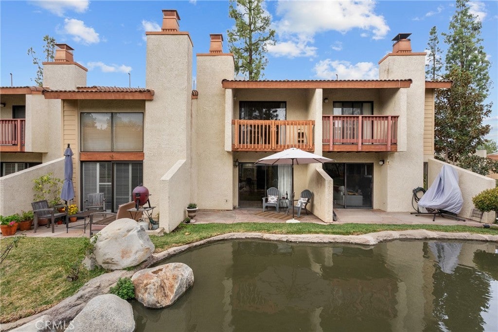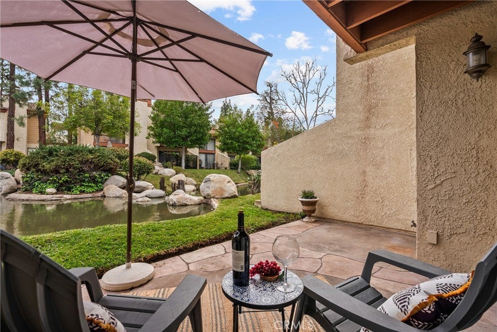 Welcome home to a bright, easy-living 2-bedroom, 1.5-bath condo where the view is part of your everyday. The open floorplan flows seamlessly from the living room to a slider that opens to your private patio, perfectly positioned to take in the peaceful stream, waterfalls and lush landscaping—complete with koi, turtles and ducks gliding by. At the heart of the home is a beautiful new kitchen with quartz countertops, bar seating, a pantry and an open connection to the living area—ideal for hosting, homework at the counter, or slow weekend mornings. Luxury Vinyl wood flooring downstairs adds a clean, modern look throughout, and big-ticket upgrades bring confidence with a newer A/C and new water heater. Both bedrooms are designed for comfort and privacy, each featuring built in closet organizers and its own attached private balcony—a rare bonus for fresh air, quiet moments, and that “I can breathe here” feeling. A detached 1 car garage rounds out the convenience. Enjoy resort-style community amenities including a pool, tennis courts, gazebo, and beautifully maintained grounds that make every walk feel like a mini getaway. This is more than a townhome—it’s a lifestyle you’ll look forward to coming home to.