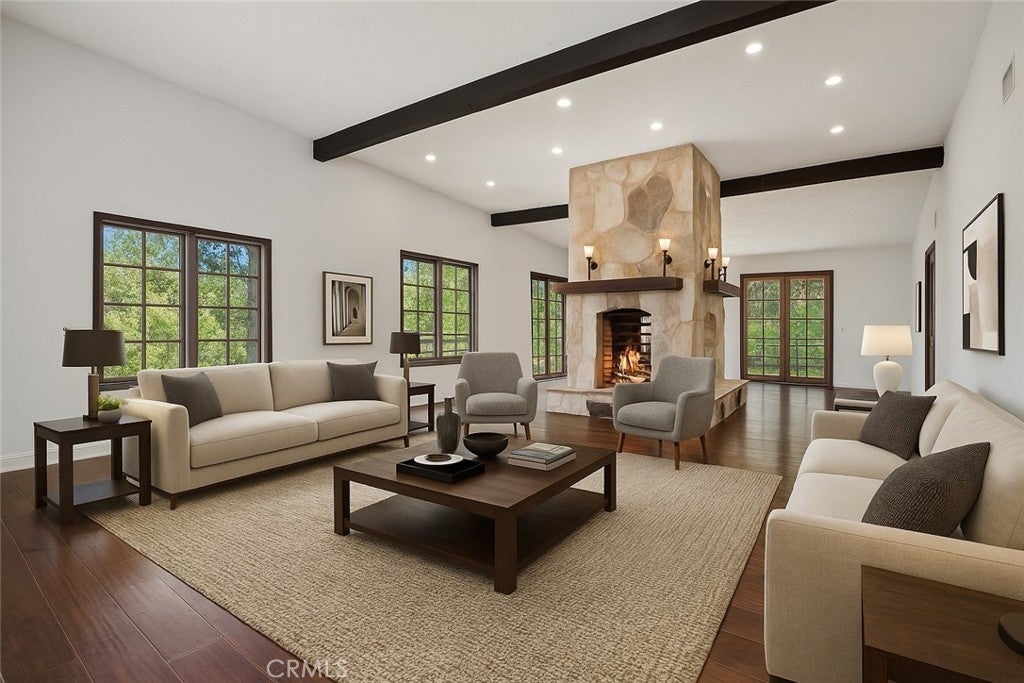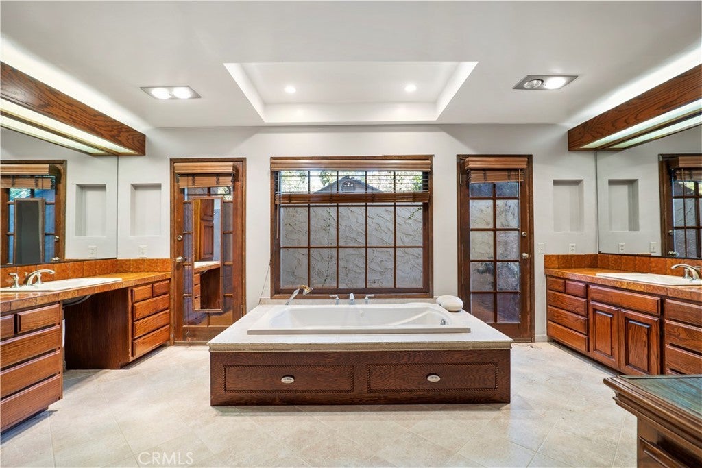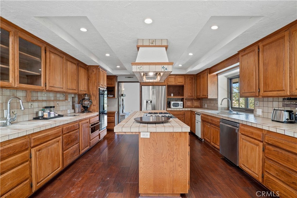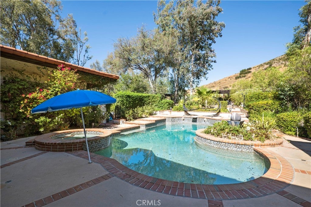 Nestled within the prestigious guard-gated community of Bell Canyon, this stunning Ranch estate offers nearly 7,000 sq. ft. of living space. The grand living room boasts soaring ceilings, and an impressive four-way open fireplace, creating a dramatic focal point. Flowing seamlessly from the living room is a spacious family room with an adjacent sitting area, wet bar, and additional fireplace, perfect for entertaining. The main level features a private master suite complete with its own fireplace, dry sauna, four additional bedrooms, three and a half bathrooms, and a steam shower. The lower level offers even more versatility with a private-entry guest suite and a separate wing featuring two additional rooms, a bar, and a kitchenette—ideal for extended family or guests. Outdoors, enjoy an entertainer’s paradise with a newly re-plastered pebble pool, built-in barbecue, and ample space for horses. The expansive grounds also include a four-car garage, RV parking, a circular driveway, and room for multiple cars and toys. Bell Canyon residents enjoy an exceptional lifestyle with access to equestrian facilities, tennis courts, and miles of scenic hiking and riding trails. This estate truly blends elegance, comfort, and entertainment in one remarkable property.
