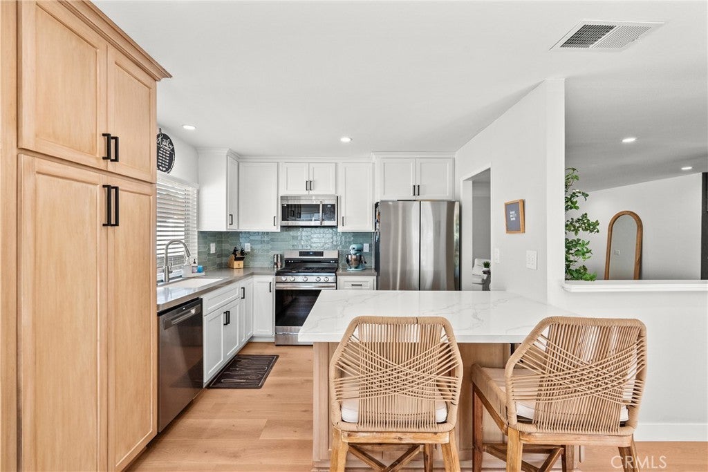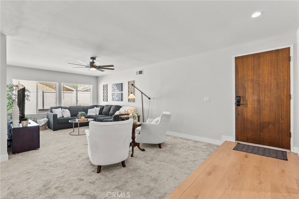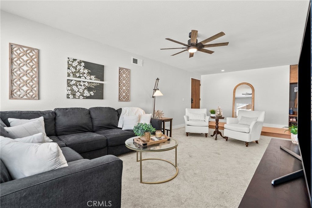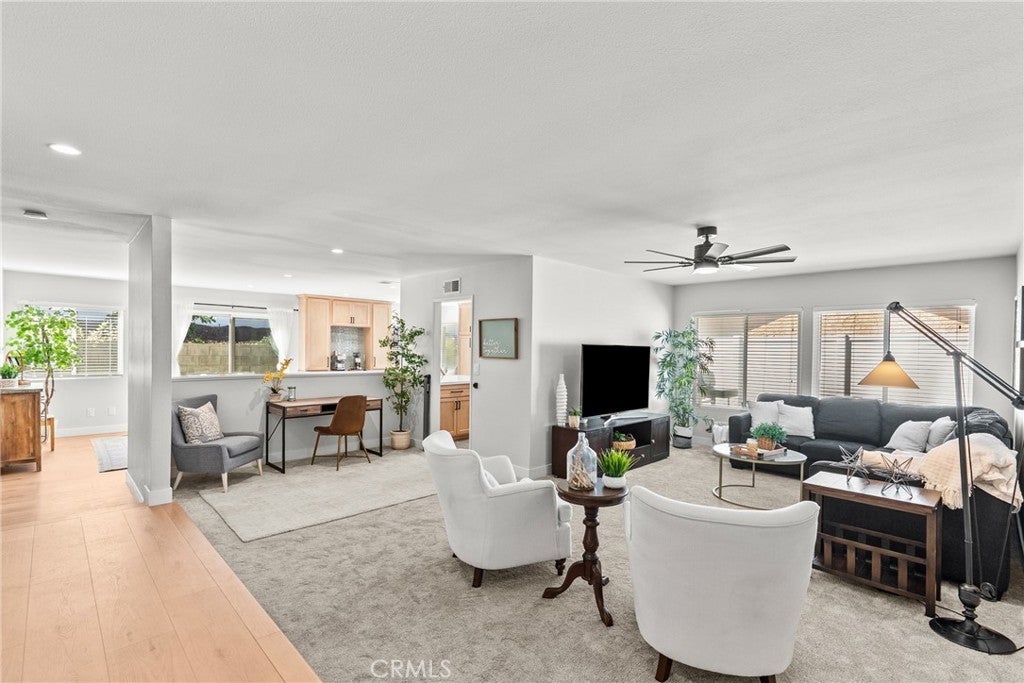 Welcome to this beautifully updated single-story home tucked away on a quiet cul-de-sac. Offering four bedrooms and two full bathrooms, this home has been thoughtfully remodeled with modern finishes and inviting design throughout. Just inside the entry, you’ll find a custom-designed drop zone that is modern, functional, and beautiful — the perfect everyday landing space for bags, shoes, and organization while adding a stylish design element to the home. The completely renovated kitchen is a true standout, featuring quartz countertops, stainless steel appliances, a single-basin sink, abundant cabinetry with pantry storage, and a built-in breakfast bar with seating — perfect for casual dining or entertaining. A dedicated coffee and beverage bar with beverage refrigerators adds both style and functionality, creating the ideal setup for morning routines or hosting guests. The open layout is filled with natural light and enhanced by new recessed lighting and updated ceiling fans throughout. Both bathrooms have been fully remodeled, and new luxury vinyl plank flooring flows seamlessly through the main living areas, complemented by new carpet in the living room for added comfort. The versatile fourth bedroom can easily function as a home office and offers direct access to the exterior side yard. Step outside to a very private backyard retreat featuring a covered patio with ceiling fans — perfect for year-round enjoyment. The yard is beautifully maintained with lush grass and provides plenty of space for relaxing or entertaining. The spacious front yard offers a generous grassy area, enhancing curb appeal. In addition to the attached two-car garage and driveway parking, there is ample space for a boat, RV, or additional vehicles — giving you flexibility for all your parking and storage needs. Major exterior updates add even more value and peace of mind, including a new roof installed in 2020, recently painted exterior, and the added benefit of solar, helping improve energy efficiency and reduce utility costs. Ideally located close to schools, restaurants, shopping, and everyday conveniences, this home offers both comfort and accessibility in a desirable neighborhood setting. With its one-story layout, thoughtful custom features, private outdoor spaces, and prime cul-de-sac location, this home beautifully combines comfort, functionality, and contemporary style.