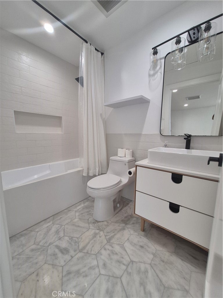 Newly remodeled modern front home in the heart of Silver Lake, situated on a duplex lot with its own private entrance, yard, and no shared walls. This bright and open residence features 2 bedrooms and 2 bathrooms with a contemporary design throughout. Enjoy a versatile sunroom perfect for a home office, gym, playroom, or plant retreat. The kitchen is equipped with appliances, including a refrigerator, 6-burner stove, and dishwasher. Separate laundry room with washer and dryer included. The master bedroom offers dual closets and an en-suite bathroom with double sinks and direct access to the private backyard seating area. Water and sewer are included. Move-in ready.
