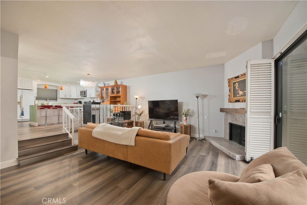 Welcome to this beautifully upgraded 3-bedroom + bonus room, 2.5-bath townhome in the highly desirable Warner Village community. Designed with an open-concept layout, this home is truly an entertainer’s dream. The inviting family room features a cozy fireplace and a private balcony surrounded by lush greenery, creating the perfect indoor-outdoor flow. Gorgeous wood flooring spans the entire first level, seamlessly connecting the living room, dining area, breakfast nook, and kitchen. The stunning kitchen is highlighted by elegant quartz countertops, a large center island ideal for gathering and meal prep, custom cabinetry offering abundant storage, and sleek stainless steel appliances that complete the space in style. Upstairs, the spacious primary suite boasts vaulted ceilings, a private balcony, two closets including a walk-in, and a beautifully upgraded en-suite bath with a glass-enclosed shower and modern vanity. Two additional generously sized bedrooms with ample closet space and a nearby full bathroom are conveniently located just off the staircase.The attached two-car garage provides direct access to an oversized bonus room—perfect for a home office, gym, playroom, or media space—and includes a washer and dryer for added convenience. Enjoy resort-style living in Warner Village with amenities including two pools, a tennis court, walking paths, tranquil creeks and ponds, and a community center. The HOA covers water, internet, basic cable, and earthquake insurance. Ideally located near shopping, dining, and entertainment, this exceptional home offers the perfect blend of comfort, style, and functionality.