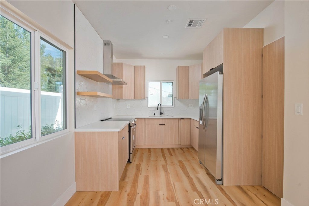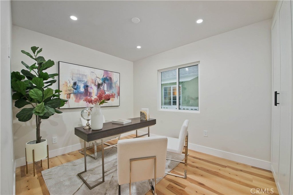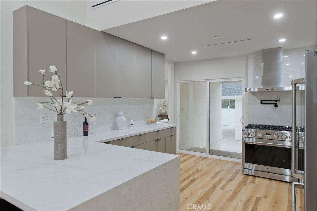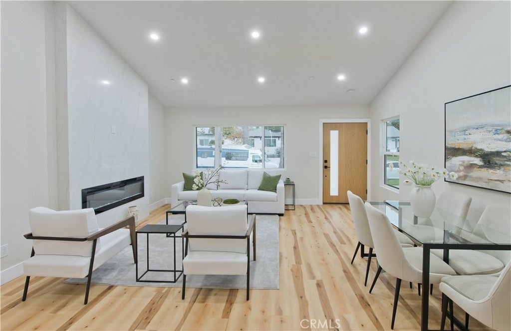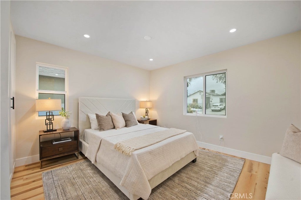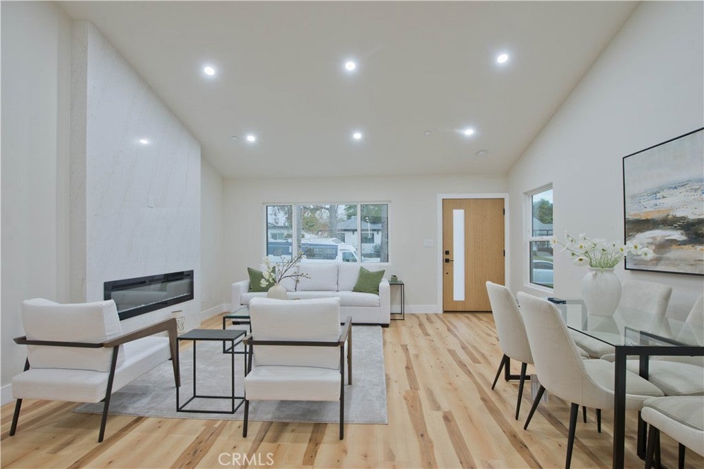 Discover a rare investment and lifestyle opportunity at 17905 & 17907 Bullock St in the highly sought after neighborhood of Encino Park. This thoughtfully upgraded dual-residence property offers exceptional flexibility—perfect for extended families, generating rental income, or living in one home while leasing the other. The main home has been completely remodeled and spans 1,753 square feet with 4 bedrooms and 3 bathrooms. Bright, open, and contemporary, the living room features soaring ceilings, luxury vinyl plank flooring, and a seamless open-concept design ideal for everyday living and entertaining. The chef’s kitchen is a standout, appointed with premium Thor stainless steel appliances, sleek quartz countertops with a waterfall-edge peninsula, a full-height quartz backsplash, walk-in pantry, and convenient pot filler. The living area centers around a striking quartz-framed electric fireplace, creating a warm yet modern focal point. The spacious primary suite serves as a private retreat, complete with a walk-in closet and spa-inspired bath showcasing a soaking tub and designer-tiled shower. Additional highlights include a junior suite, dedicated laundry room, tankless water heater, white stone accents, and a 1-car garage equipped with an EV charger. Built in 2025, the newly constructed ADU at 17907 Bullock St offers 752 square feet with 2 bedrooms and 2 bathrooms. Designed for privacy and efficiency, it features a separate entrance from Oxnard Street, carport parking, laundry hookups, fully electric systems, owned solar panels, and its own tankless water heater—making it an ideal turnkey rental or guest residence. Both homes benefit from extensive upgrades, including new PEX plumbing, a new sewer line, new roofing, central HVAC, fire sprinkler systems, double-pane windows, and LED recessed lighting throughout. Designer finishes elevate the exterior and interior alike, from floating vanities and heated anti-fog LED mirrors to smooth Santa Barbara stucco, modern fencing, and raised garden beds for your home grown vegetables. Conveniently located near Ventura Boulevard’s shops and dining, local parks, farmer's market, this move-in-ready Encino property offers versatility, modern comfort, and long-term value.
