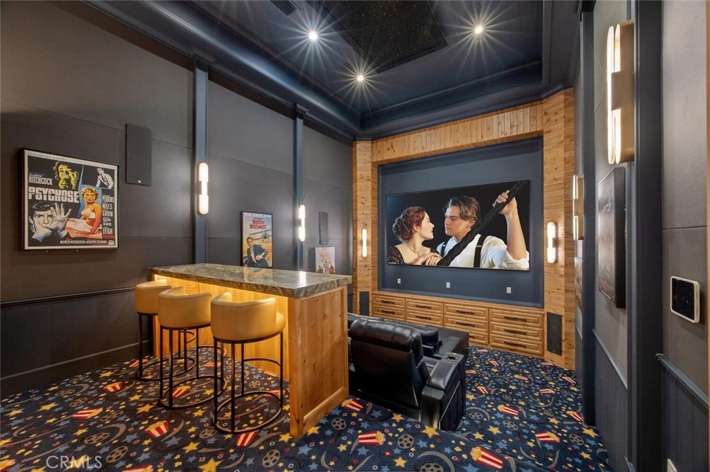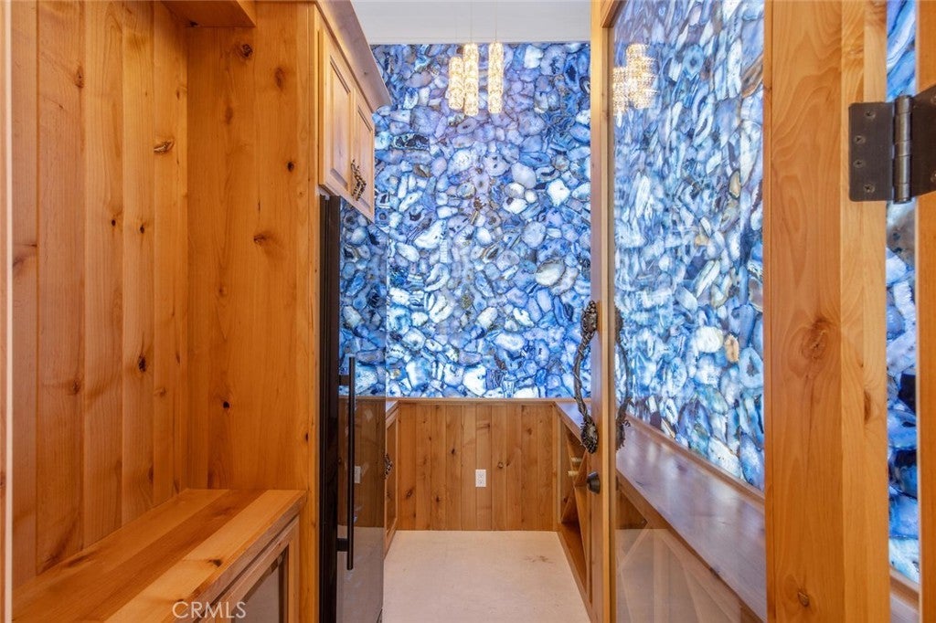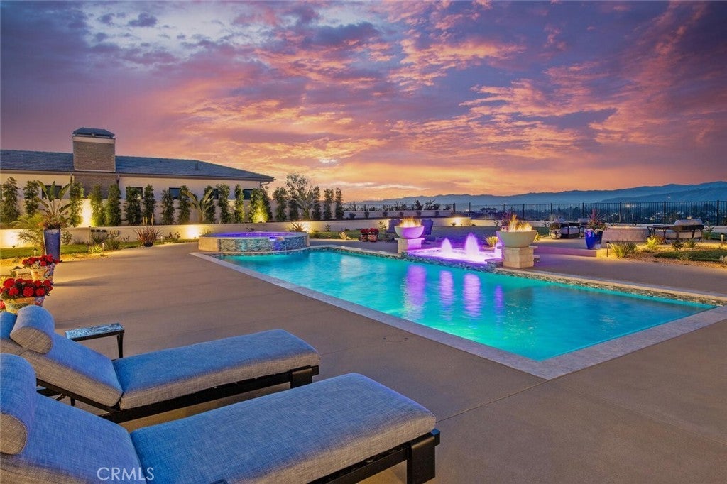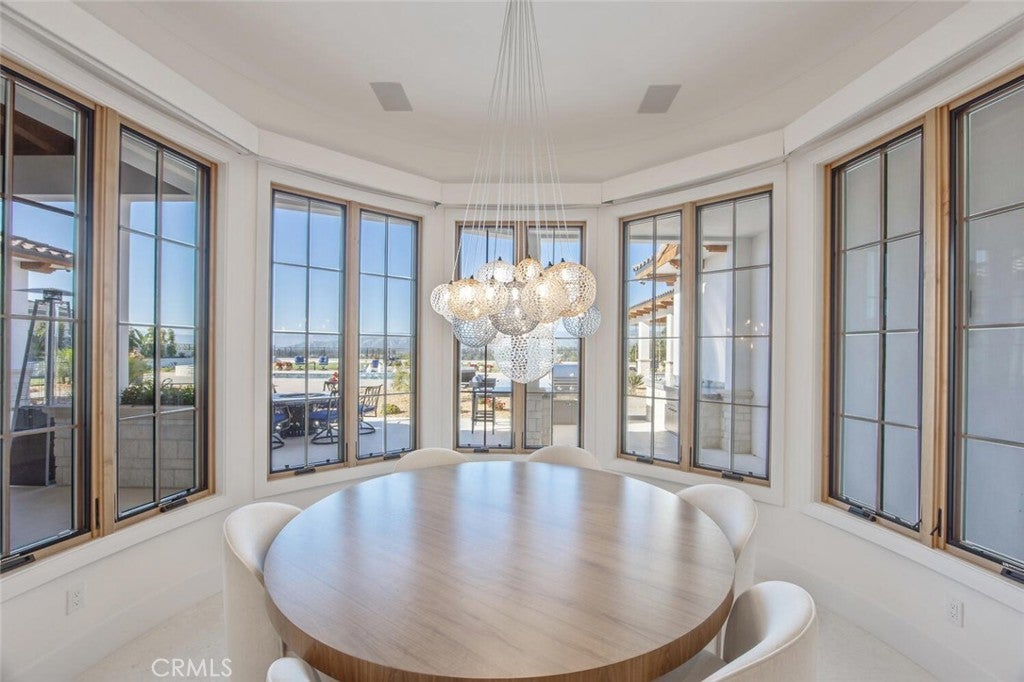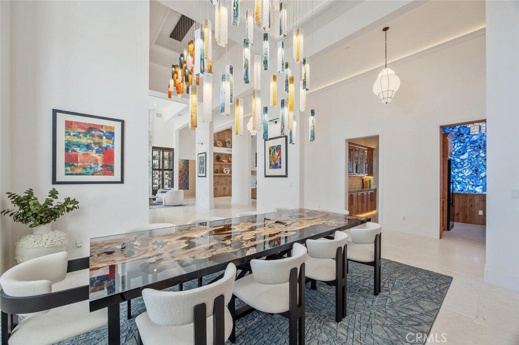 Completed in 2025, this single-story architectural residence is set on approximately one acre of gated grounds, blending panoramic views with refined design and resort-caliber living. A dramatic foyer introduces Turkish white limestone floors, hand-applied Venetian plaster walls, and a sculptural multi-tier chandelier. Beyond, the great room soars to 26-foot ceilings with a limestone fireplace and expansive 20-foot disappearing nano doors that dissolve the boundary between interior and exterior living. The turret-style living room is framed by 12-foot windows and anchored by a striking quartzite fireplace, while the formal dining room features custom built-ins and designer lighting. The chef’s kitchen impresses with 15’6” ceilings, custom knotty alder cabinetry, dual navy-stained islands, quartzite countertops, premium appliances, and an adjoining circular breakfast nook. A fully equipped prep kitchen, Butler’s Pantry, and concealed walk-in pantry ensure effortless entertaining. The wine room is a statement piece, clad in backlit gemstone slabs with custom alder racking and a 70-bottle refrigerator. A 50-foot gallery hallway leads to a show-stopping powder room and into thoughtfully designed private spaces, including a tiered theater with 140-inch screen and full bar, and a sophisticated study with quartzite fireplace and French doors opening to a secluded patio. Three secondary bedroom suites feature bespoke finishes and private baths, with one currently styled as a gym overlooking pool and mountain views. The primary suite is a retreat of its own, complete with fireplace, nano doors to the yard, dual custom walk-in closets, and a spa-inspired bath offering a sculptural soaking tub, quartzite vanities, and an oversized backlit quartzite steam shower. Outside, the gated motor court with permeable pavers leads to an oversized three-car garage. The resort-style grounds showcase a covered patio with wood-paneled ceiling, stone fireplace, and outdoor kitchen. The beach-entry pool features a 10-foot spa, waterfall, fire bowls, and tranquil fountain, complimented by designer pavers. A detached casita offers complete privacy with limestone floors, a full kitchen, bedroom suite, designer bath, and covered patio with quartzite bar. An extraordinary estate blending architectural presence, refined craftsmanship, and resort-caliber amenities.