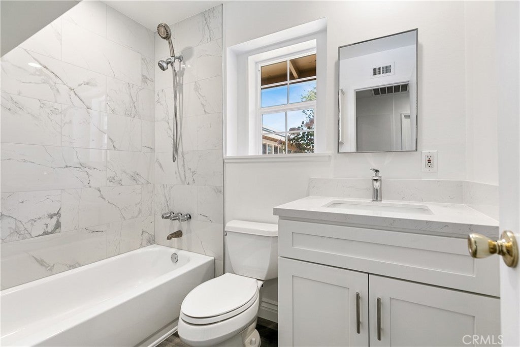 3-bedroom, 2-bath Woodland Hills home recently remodeled featuring an open floor plan and owned solar panels for energy efficiency and cost savings. The home has been thoughtfully updated with new gray wood-style flooring throughout, a fully renovated kitchen, and completely remodeled bathrooms. The kitchen opens seamlessly to the family and dining areas and features a large center island, abundant cabinetry, and quartz countertops. Both bathrooms have been fully updated with new quartz countertops and offer shower/tub combinations. A spacious secondary living room provides additional flexible living space and is directly accessible from the main living areas — ideal for a media room, playroom, or home office. The washer and dryer are conveniently located inside the home. The 2-car garage offers direct interior access as well as exterior access, and the driveway provides additional parking. Situated on a lot of over 7,000 square feet, the backyard features two separate areas and is designed for low maintenance with minimal water usage in both the front and rear yards. The location is exceptional, close to award-winning local schools, Platt Village, multiple shopping centers and malls, Calabasas, and with easy freeway access.