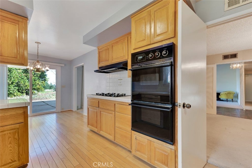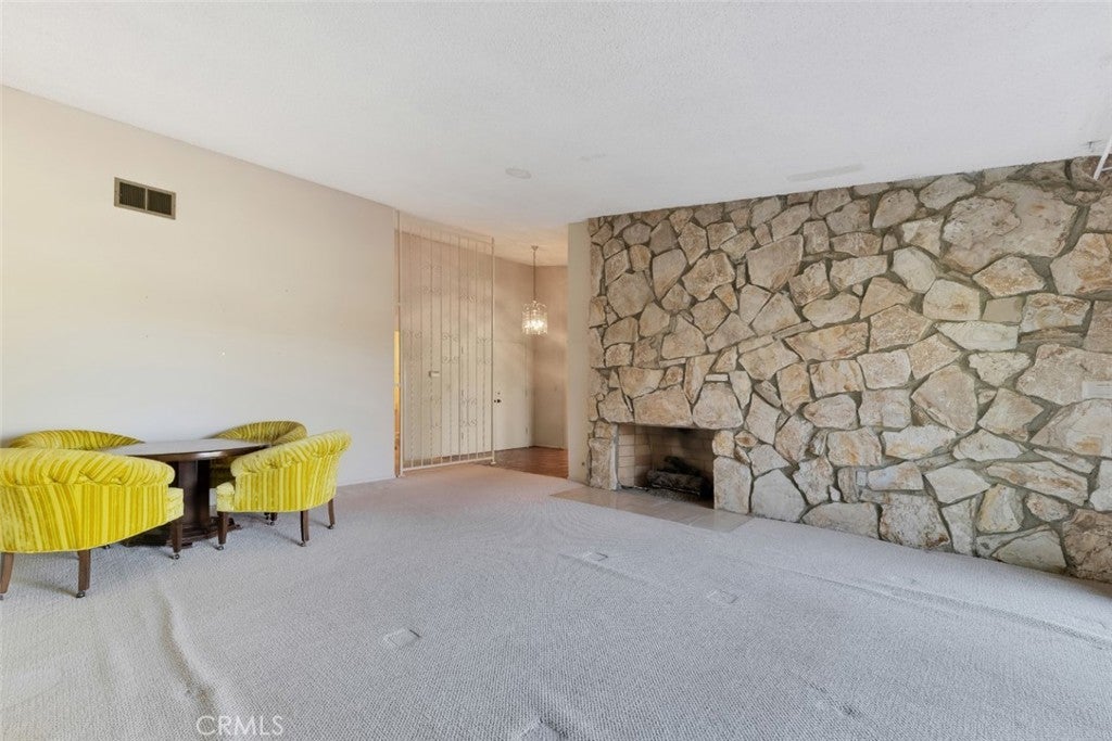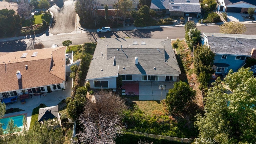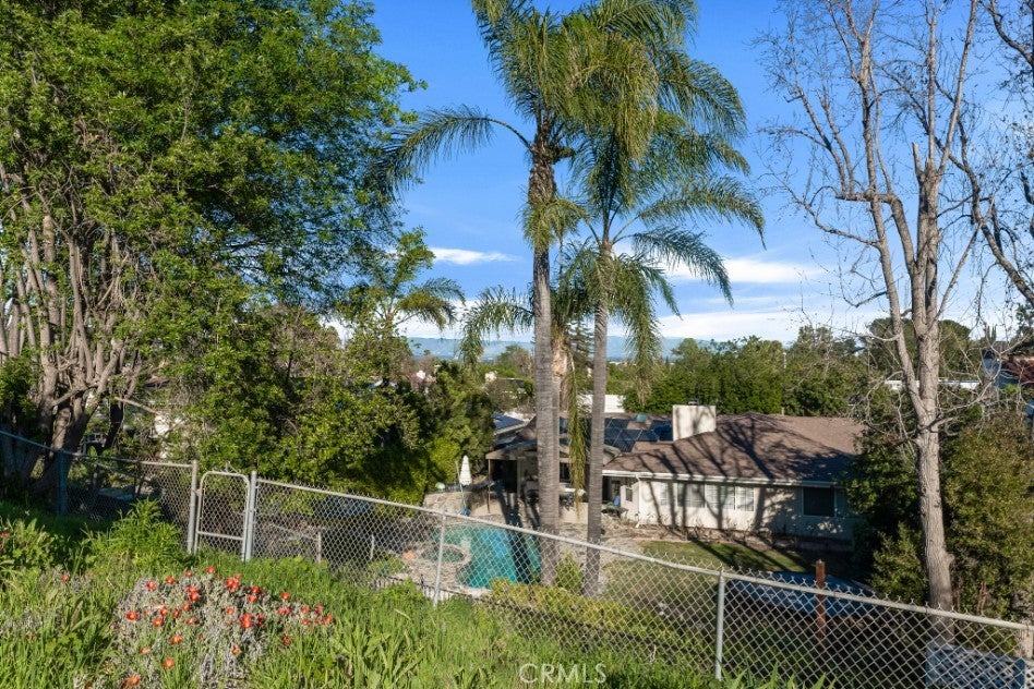 Offered for the first time since it was built in 1966 and lovingly maintained by the original owner. Designed by renowned architect Charles DuBois, this spacious mid-century residence is nestled within a picturesque hillside community of Woodland Hills and is located within the boundaries of highly rated and award-winning schools including Lockhurst Dr. Elementary, Hale Charter Academy, and El Camino Real High School. With 4 bedrooms, 2.5 bathrooms, and 2,445 square feet of living space on a generous lot of just over 11,000 square feet, the home offers attractive curb appeal and a thoughtfully designed floorplan showcasing preserved classic mid-century elements and timeless architectural character. A double door entry opens to a welcoming foyer that flows into the formal living room and adjacent family room, both highlighted by cathedral ceilings, sliding glass doors to the backyard, and an impressive floor-to-ceiling, wall-to-wall natural stone fireplace. The kitchen features a breakfast nook with its own sliding glass door to the yard, a built-in gas range, wall oven, and a dedicated laundry room with direct access to the two-car attached garage, which also provides access to the north side yard. A formal dining room sits just off the kitchen and connects seamlessly back to the foyer, while a centrally located powder bath adds convenience for guests. All four bedrooms are situated along a private hall, each generously sized. The three secondary bedrooms share a full hall bath with dual sink vanity, while the primary suite offers cathedral ceilings, a fourth sliding glass door to the backyard, a walk-in closet plus an additional closet. A dedicated vanity area leads to the en-suite bath complete with dual sinks, separate tub and shower, and direct access to the south side yard. The expansive backyard showcases hillside views with mature fruit trees and offers incredible potential to create custom hardscape seating areas, possibly a pool, as well as a generous lawn space for recreation or entertaining. Move-in-ready with great bones, abundant natural light, and expansive living spaces, this home presents an outstanding opportunity to update and customize while enjoying close proximity to shopping and dining along Ventura Boulevard, premier retail and entertainment at Westfield Topanga and The Village at Westfield Topanga, scenic hiking trails in Topanga State Park, and convenient access to the 101 for an easy commute.