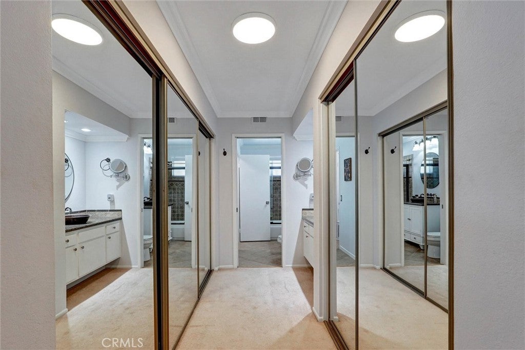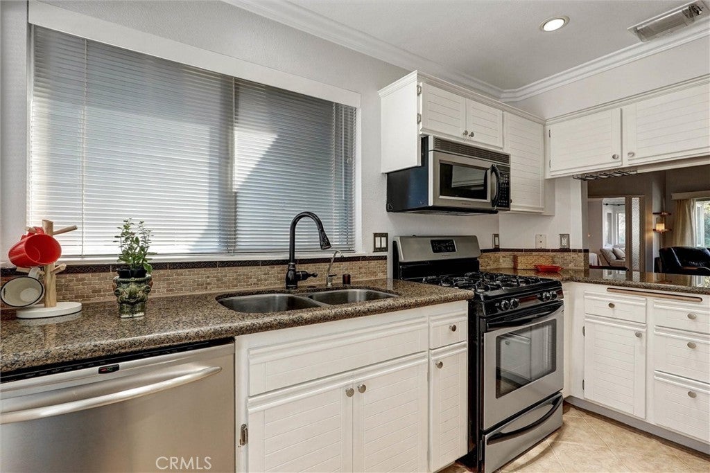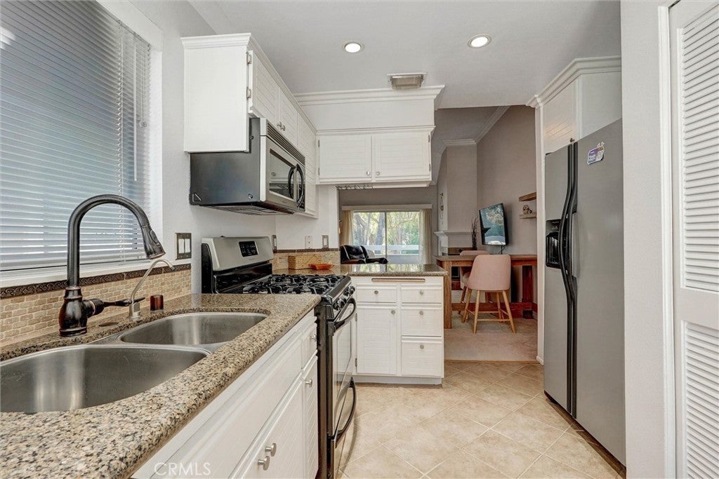 This stunning home has an assumable FHA loan at a low interest rate! Ideally located within the desirable Arbor Park gated community in the heart of Valencia — which offers a peaceful retreat surrounded by beautifully maintained grounds. Enjoy serene views from both the front patio deck and back balcony, perfect for your morning coffee or evening sunsets! Inside, the open layout is enhanced by high ceilings with beautiful crown molding, which create a bright and spacious atmosphere throughout. The primary suite includes a spacious bedroom, large mirrored closets providing ample storage, and a bathroom with dual vanities and luxury hardware. The central fireplace, visible from the living room, dining area, kitchen, and bedroom, adds warmth to the entire home. The charming kitchen features granite countertops, stainless steel appliances, and recessed lighting, blending modern design with everyday functionality. The refrigerator, washer, and dryer are all included—making this home truly move-in ready! Every room enjoys peaceful neighborhood views. As a part of the Arbor Park, residents enjoy exclusive access to the community pool and spa, and benefit from the peace of mind of a gated entrance and convenient guest parking. The attached single-car garage provides extra storage and easy access. This home is just minutes from Shopping and Dining including; Granary Square, Valencia Town Center Mall, top-rated schools, medical and dental services, walking and biking paseos, Summit Park, the YMCA, College of the Canyons, and California Institute of the Arts. With FHA approval and No Mello Roos taxes, this condo offers exceptional value in one of Valencia’s most sought-after neighborhoods! Don’t miss your chance—schedule your showing today!
