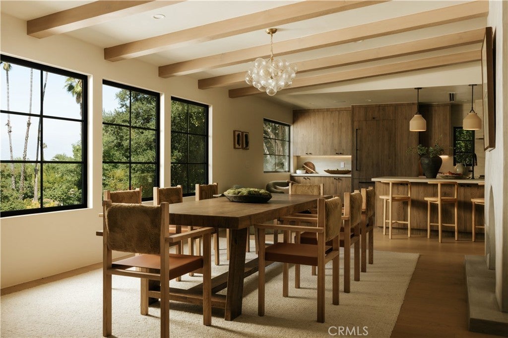 Beamed Ceilings, Breakfast Bar, Built-in Features, Separate/Formal Dining Room, Eat-in Kitchen, Open Floorplan, Pantry, Recessed Lighting, Unfurnished, Bedroom on Main Level, Main Level Primary, Primary Suite, Walk-In Pantry, Smart Home, Wired for Sound