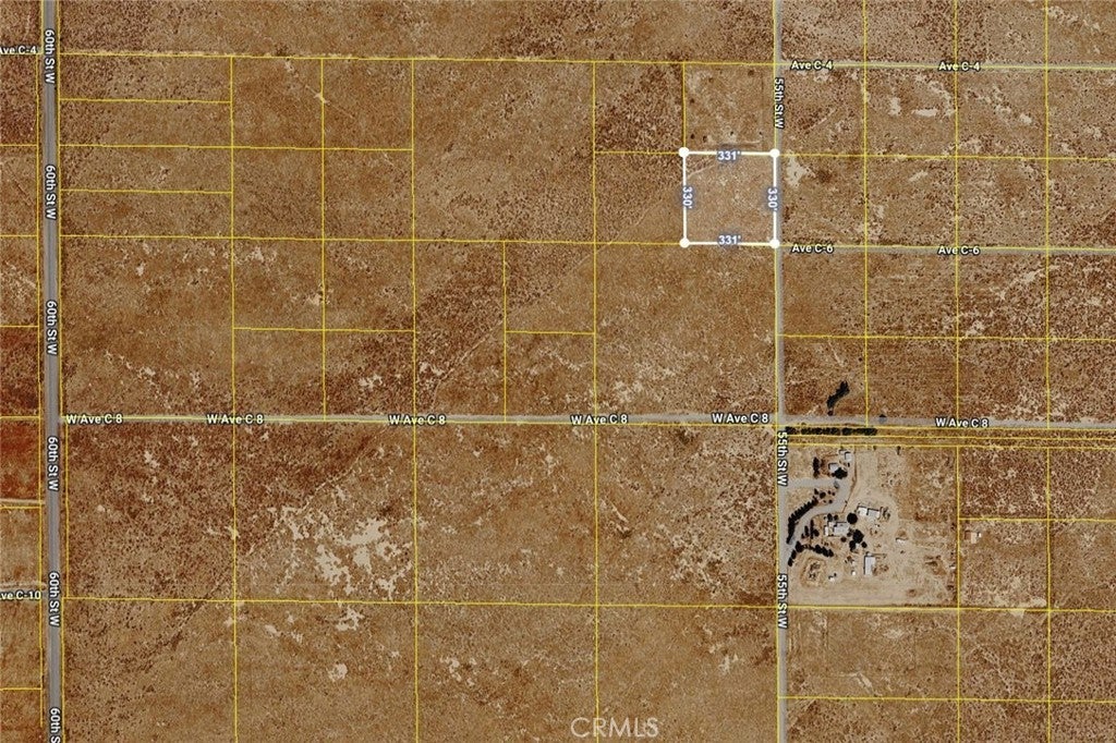 Affordable and high-quality 2.5-acre land parcel in West Lancaster, with a close-in location! This land parcel is situated with street frontage at the northwest corner of W Ave C6 and 55th St W. It's very close to paved Ave D and paved 60th St W, as well as the town of Antelope Acres and the 14 freeway. Having street frontage is a major advantage of this property, as that allows access and use of the land without easements. It's also just north of a house at C-8 and 55th west that has power lines running to it, so power lines should be easier to run to this property. This may be a great location to camp, go off-roading, install a mobile home, build a house, store trucks, or start a small farm. This is a great opportunity to acquire a land parcel on the westside at an affordable price, and it may be a good long-term investment due to its proximity to Hwy 138 and the freeway. Don't miss out!