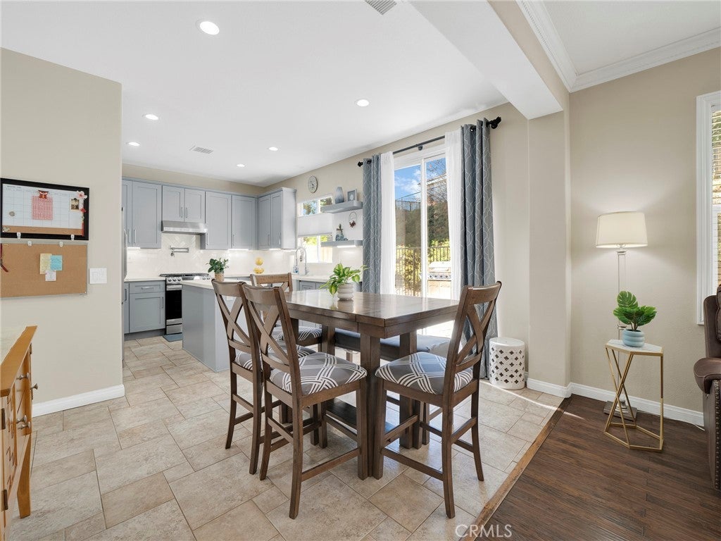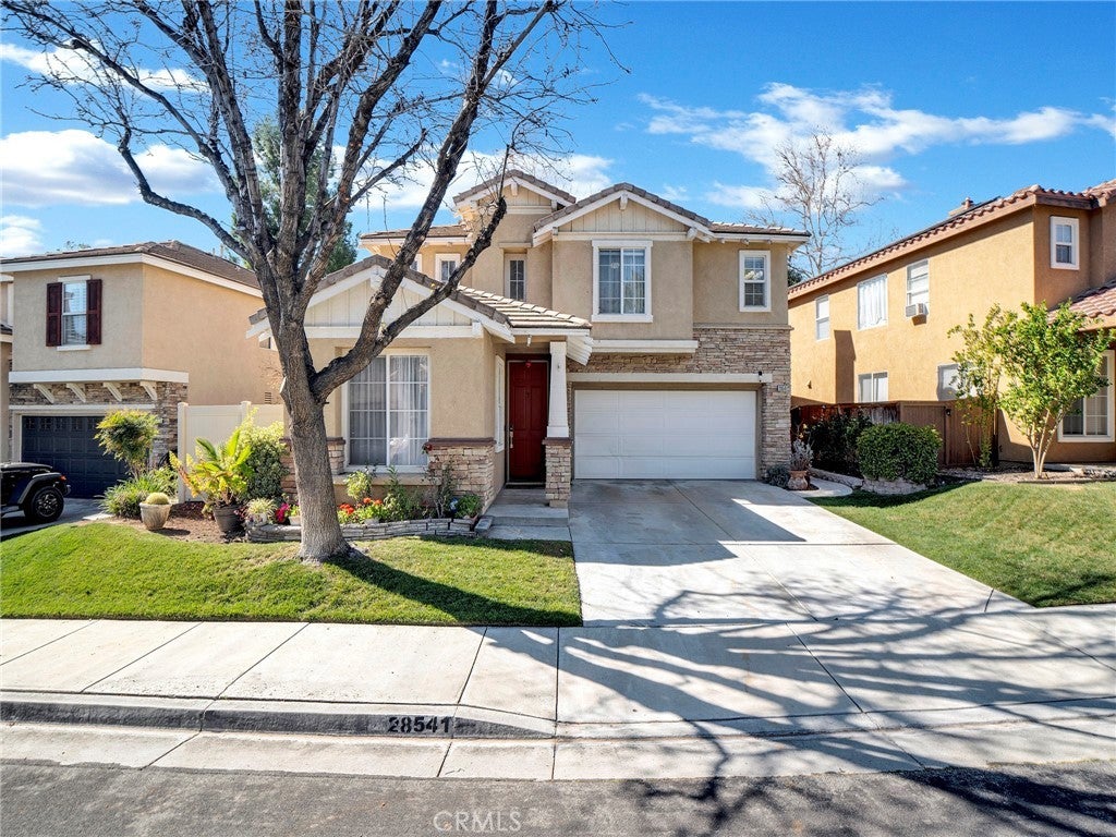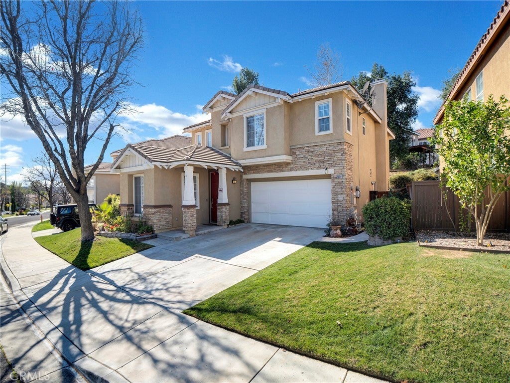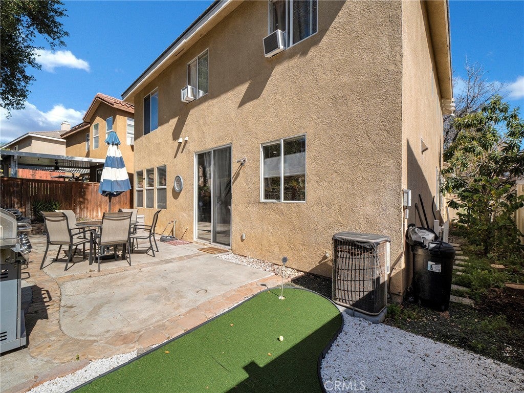 Step into this beautifully updated 4-bedroom, 3-bath home in Santa Clarita, where comfort and style come together effortlessly. The formal living room welcomes you with soaring ceilings and abundant natural light, creating an inviting space that flows seamlessly into the dining area. A versatile downstairs room, ideal for a home office or guest space is complemented by a remodeled bathroom with walk-in shower, offering exceptional flexibility and convenience. The heart of the home is the remodeled kitchen, featuring quartz countertops, a center island with built-in wine refrigerator, and an open connection to the cozy family room, perfect for everyday living and entertaining. Upstairs, all four bedrooms provide privacy and comfort, including a spacious primary suite with an en-suite bathroom featuring a separate soaking tub and walk-in shower. Enjoy the private backyard designed for both relaxation and fun, complete with a putting green and space to unwind or host gatherings. Additional highlights include solar panels for energy efficiency and long-term savings. Community amenities such as a pool, spa, and park complete the lifestyle in this desirable neighborhood.
