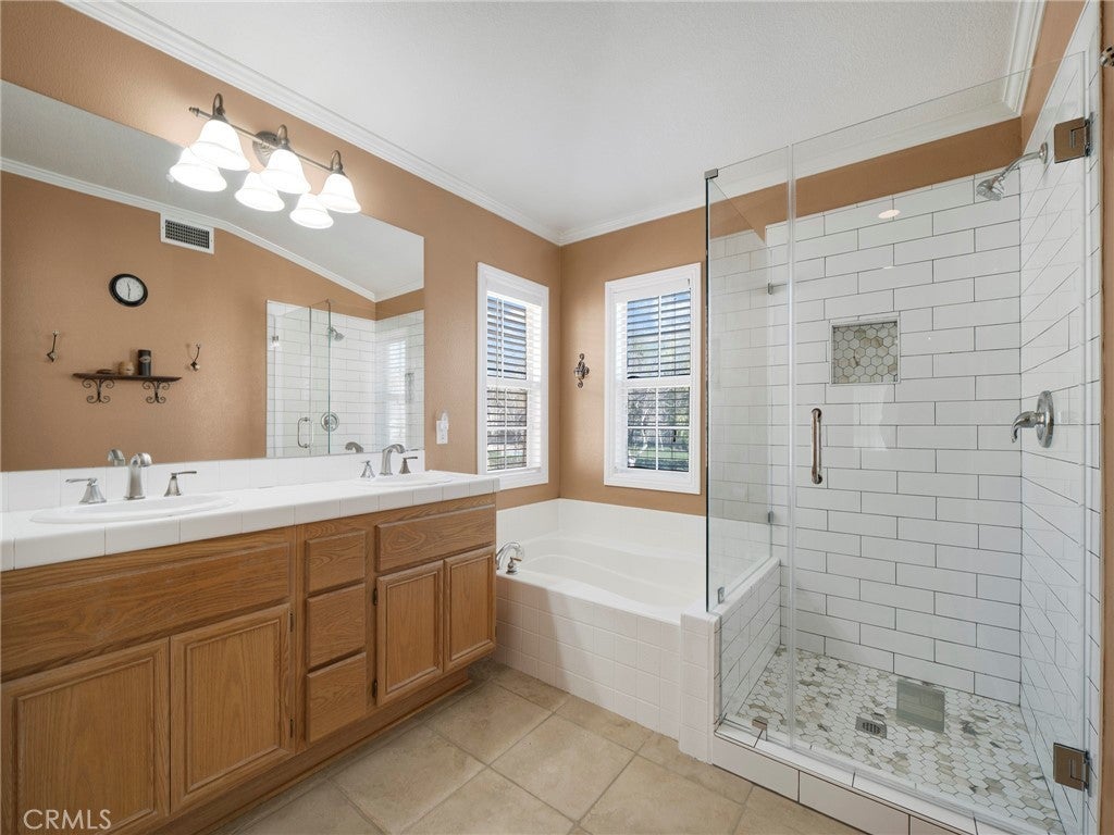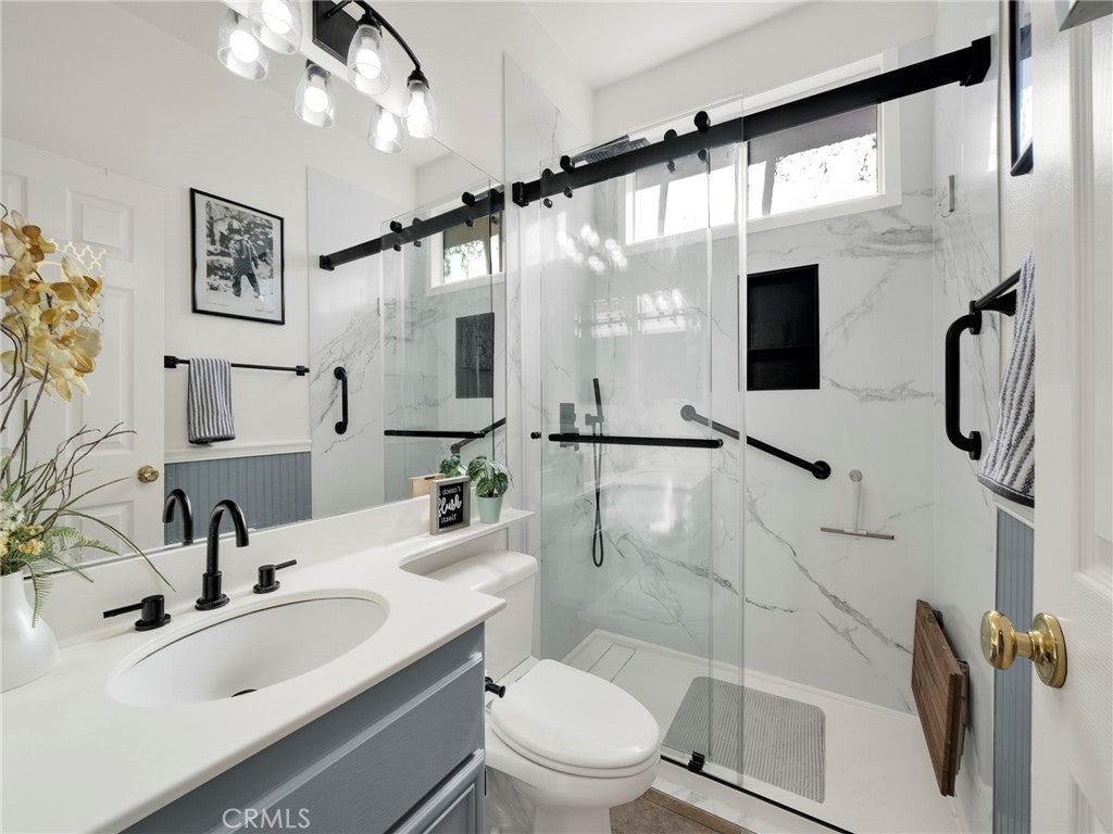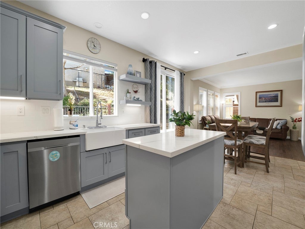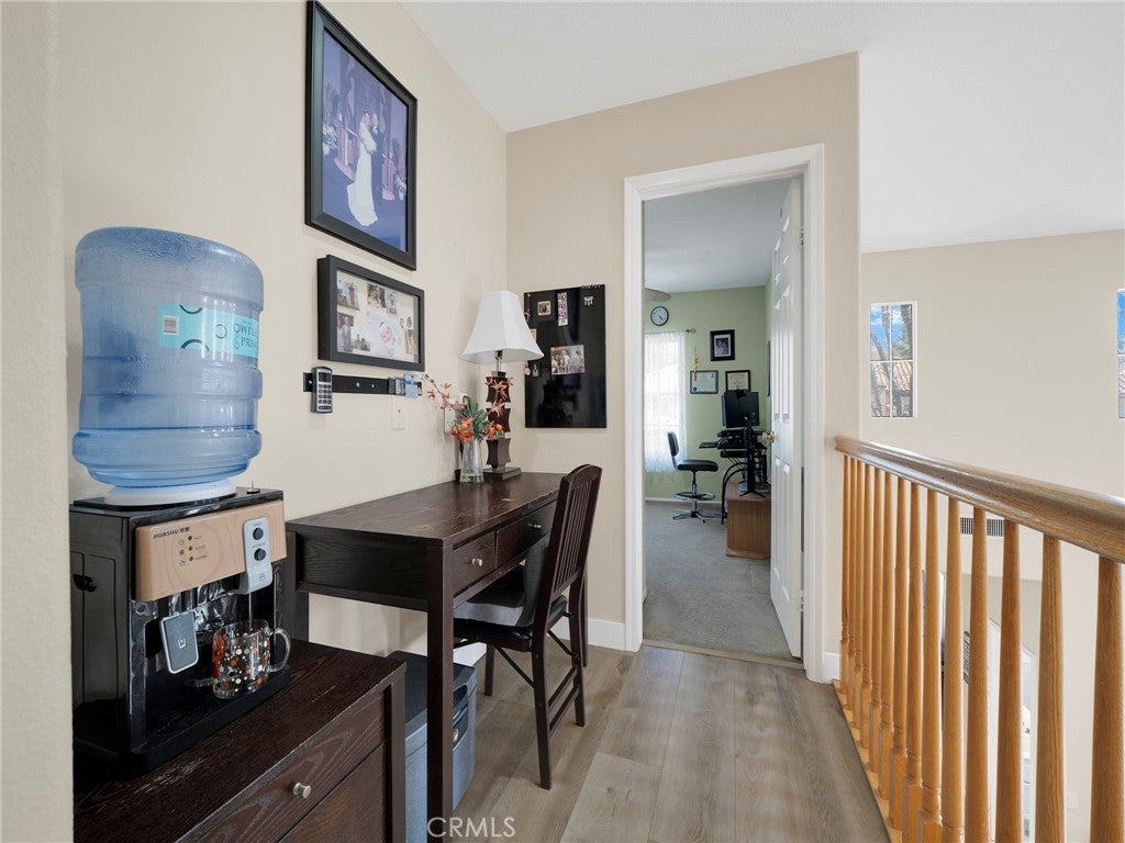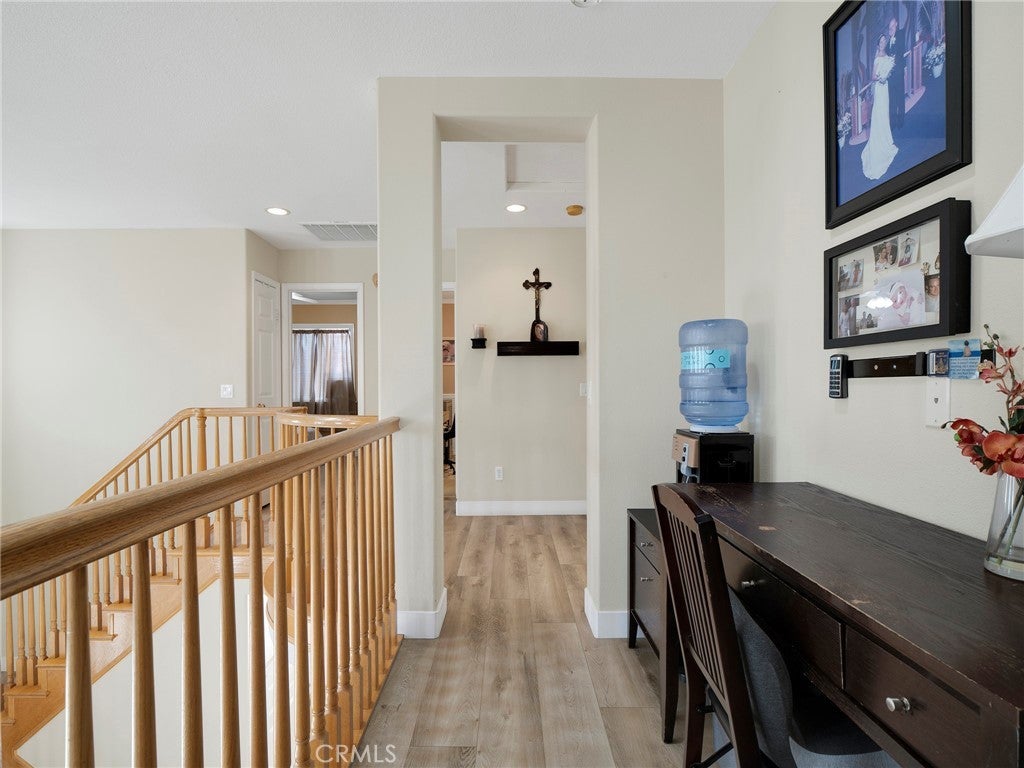Step into this beautifully updated 4-bedroom, 3-bath home in Santa Clarita, where comfort and style come together effortlessly. The formal living room welcomes you with soaring ceilings and abundant natural light, creating an inviting space that flows seamlessly into the dining area. A versatile downstairs room, ideal for a home office or guest space is complemented by a remodeled bathroom with walk-in shower, offering exceptional flexibility and convenience. The heart of the home is the remodeled kitchen, featuring quartz countertops, a center island with built-in wine refrigerator, and an open connection to the cozy family room, perfect for everyday living and entertaining. Upstairs, all four bedrooms provide privacy and comfort, including a spacious primary suite with an en-suite bathroom featuring a separate soaking tub and walk-in shower. Enjoy the private backyard designed for both relaxation and fun, complete with a putting green and space to unwind or host gatherings. Additional highlights include solar panels for energy efficiency and long-term savings. Community amenities such as a pool, spa, and park complete the lifestyle in this desirable neighborhood.