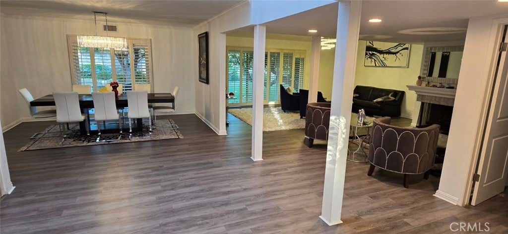 Remodeled Scottish Terrace estate built by Bob Chisholm, offering approximately 3,200 sq. ft. of single-story living on a 16,000 sq. ft. lot adorned with numerous mature orange trees. This spacious 4-bedroom, 3-bath home features a 3-car oversized garage with built-ins and extensive upgrades throughout. The house will be rented without any furniture! Recent improvements include a new kitchen and three remodeled bathrooms, dual-pane windows and doors, updated flooring, and elegant crown moldings. Enter through double doors into a welcoming atrium, opening to the formal living and dining rooms with plantation shutters. The home also offers a cozy conversation area with fireplace, and a kitchen with a breakfast area ideal for everyday living. The primary suite boasts a large walk-in closet and a spa-style bath with separate tub and shower. Two Jack-and-Jill bedrooms share a second bathroom, while the fourth bedroom, located at the opposite end of the home, has access to the third bath—perfect for guests or multigenerational living. An expanded den features a wet bar and fireplace, ideal for entertaining. Excellent schools within this area include Topeka Drive Elementary School, Nobel Middle School, and Granada Hills Charter High School